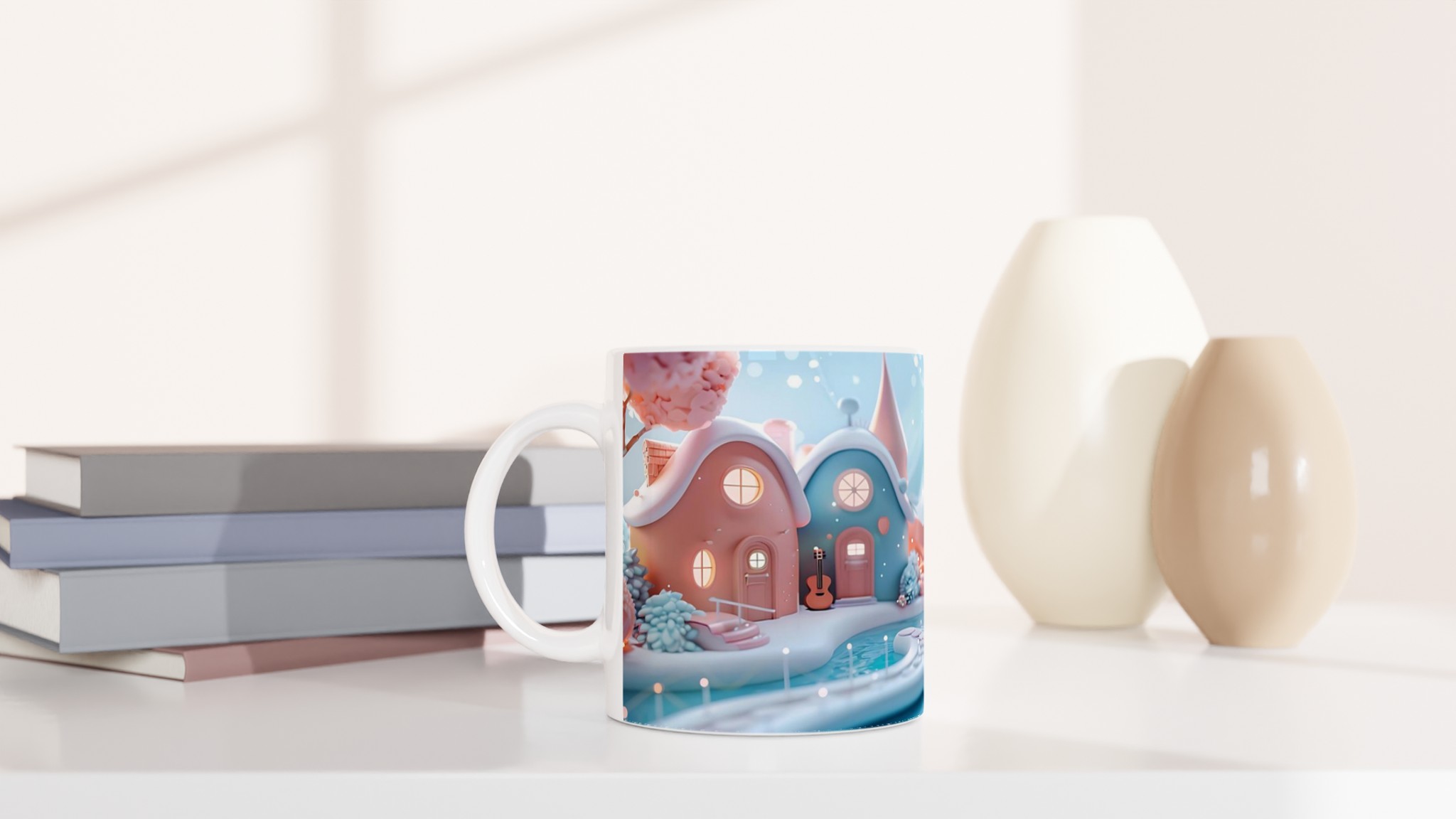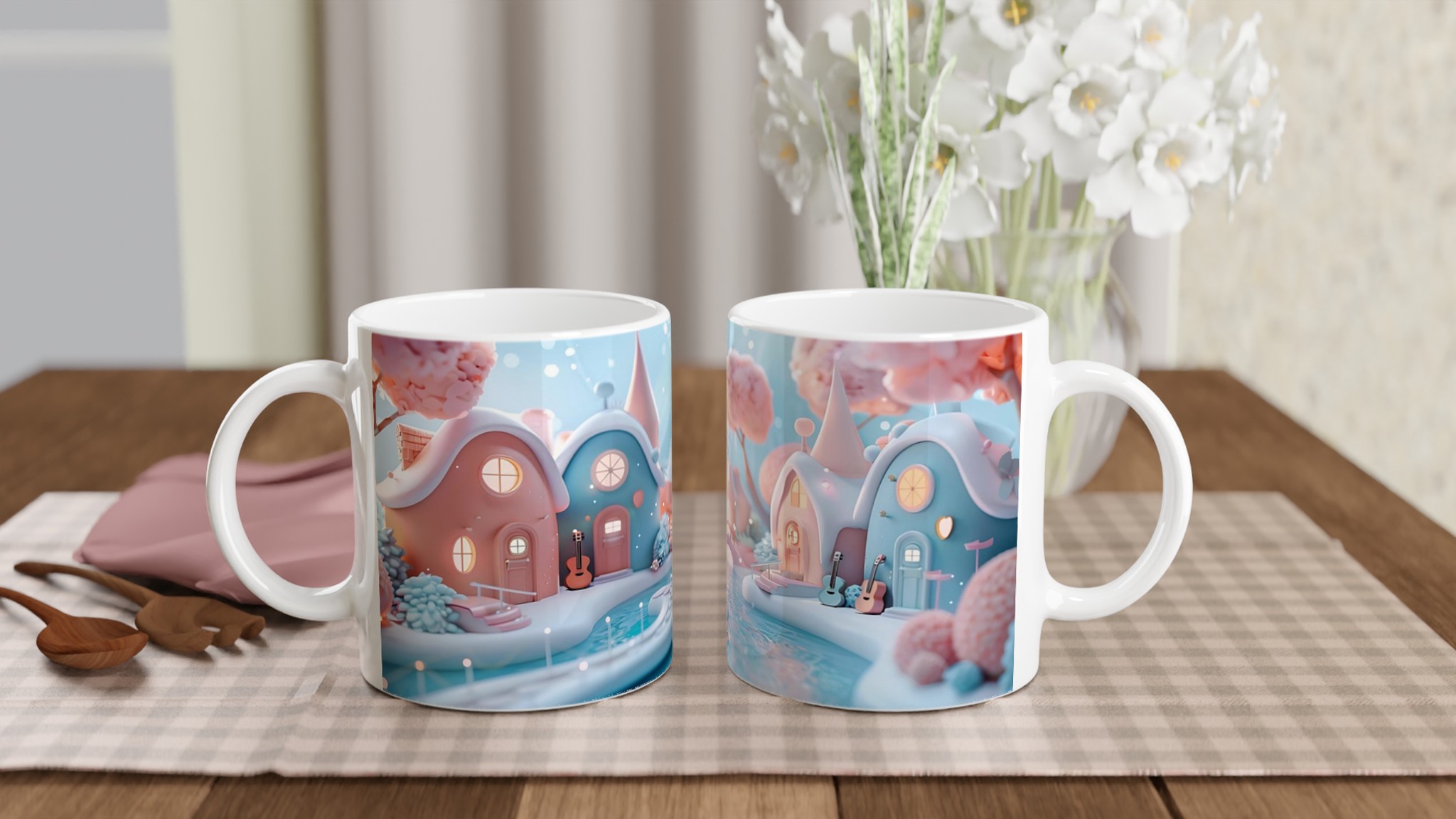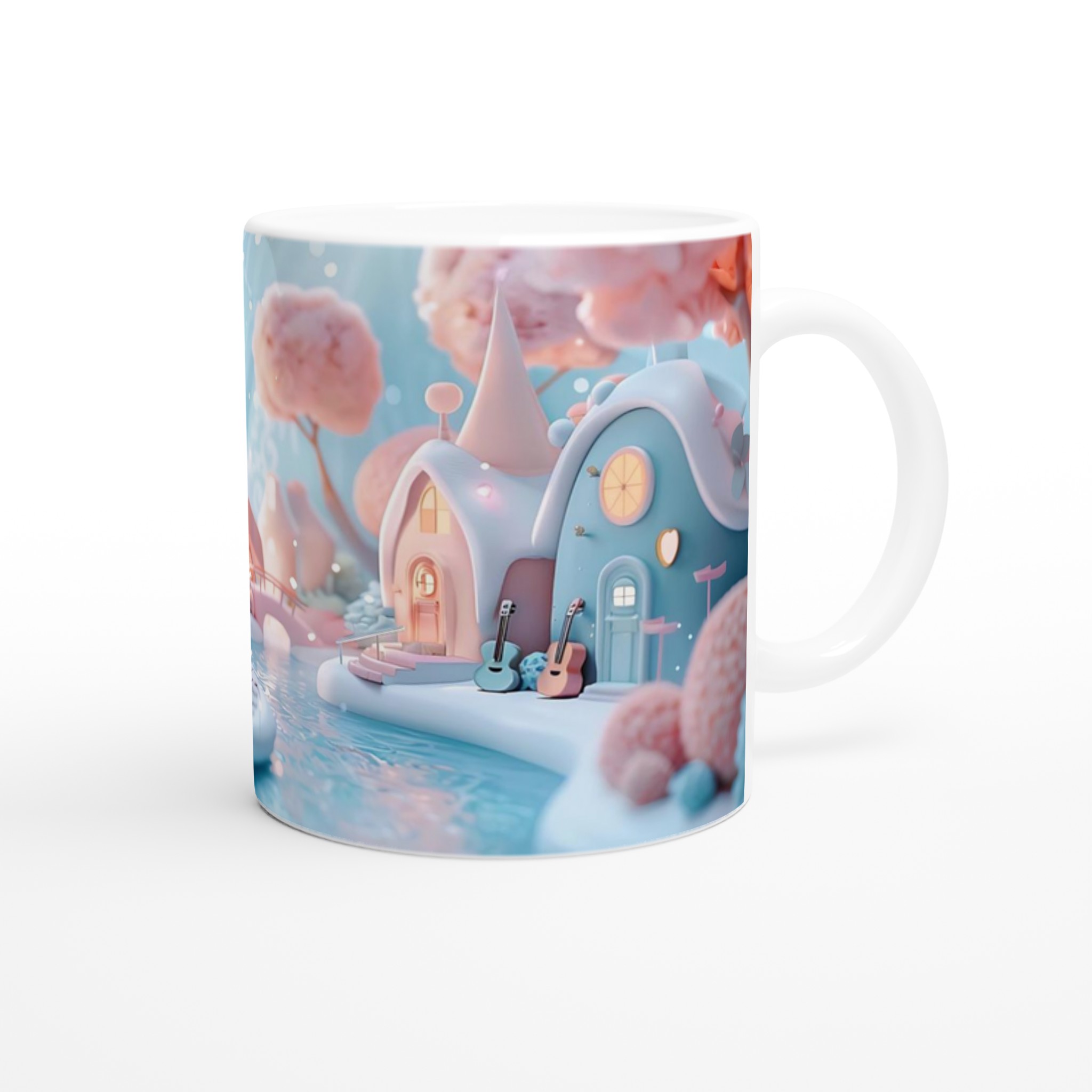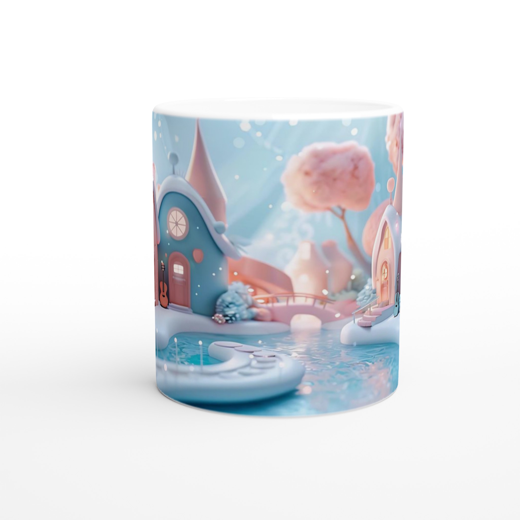 Stig in i en förtrollande drömvärld varje gång du tar en klunk med denna charmiga keramiska mugg. Inspirerad av bilden, med dess milda pastelltoner och fantasifulla landskap, blir denna mugg en daglig påminnelse om magi och lugn. Perfekt för morgonkaffet, kvällens varma choklad eller när du bara vill njuta av en kopp te. Den blanka vita ytan gör att trycken framhävs med klara och levande färger, som håller sig fina även efter många turer i mikron och diskmaskinen.