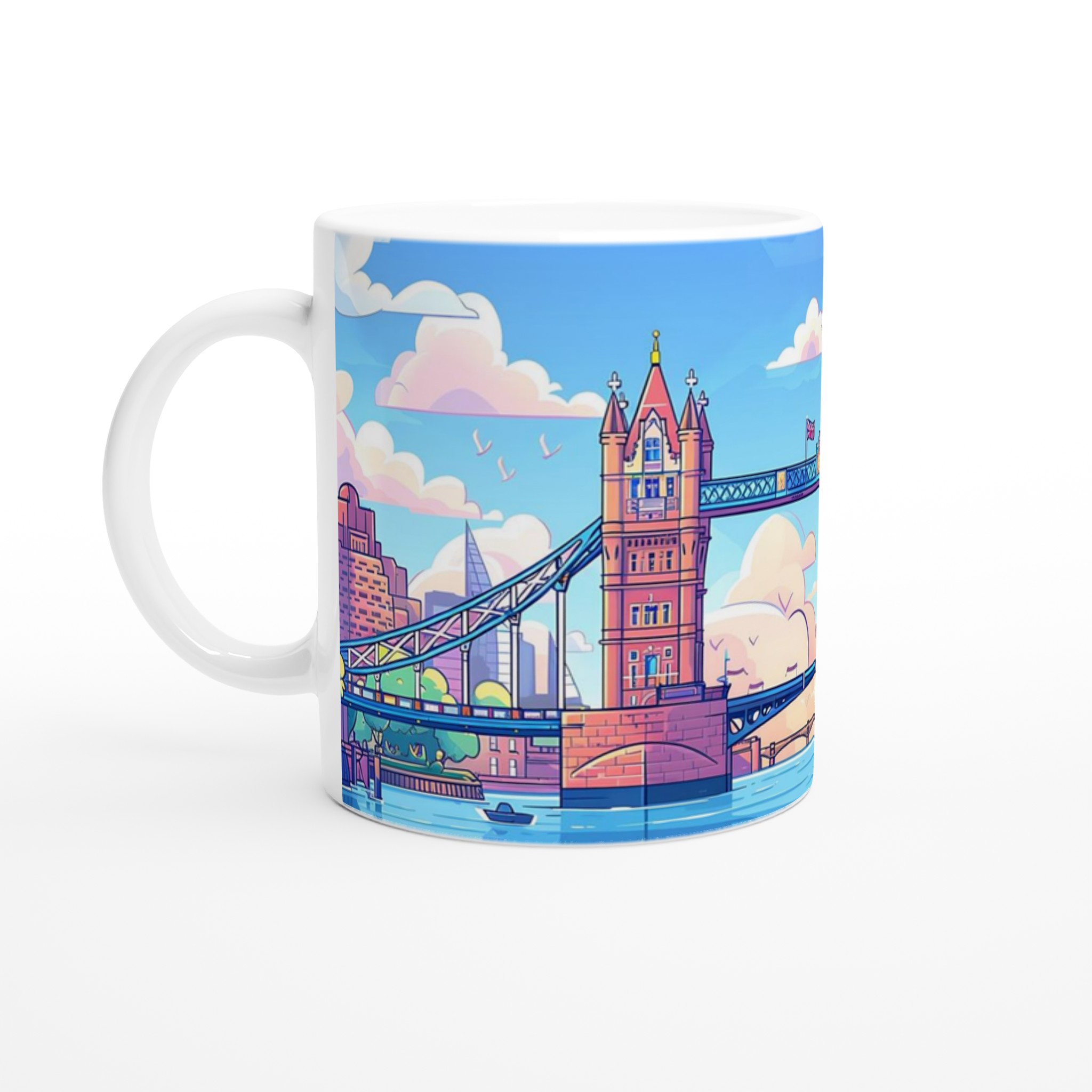 Inspirerad av den drömska och pastellfärgade återgivningen av Londons ikoniska Tower Bridge, blir denna mugg en daglig påminnelse om lugna stadsvyer och pittoreska detaljer. Den blanka vita ytan ger ett skarpt och levande tryck som verkligen sticker ut, oavsett om det är en personlig design, ett roligt citat eller en present till någon du tycker om.