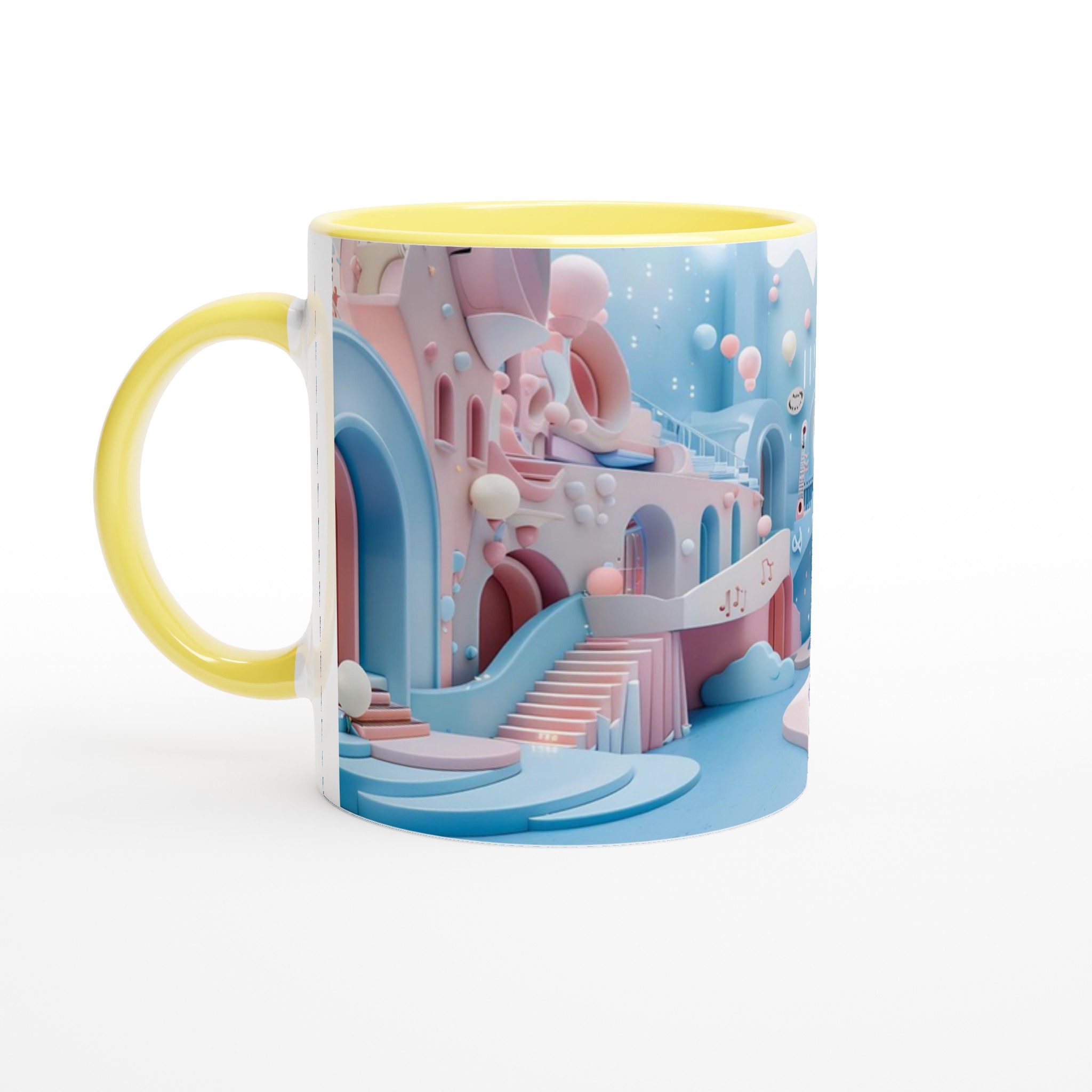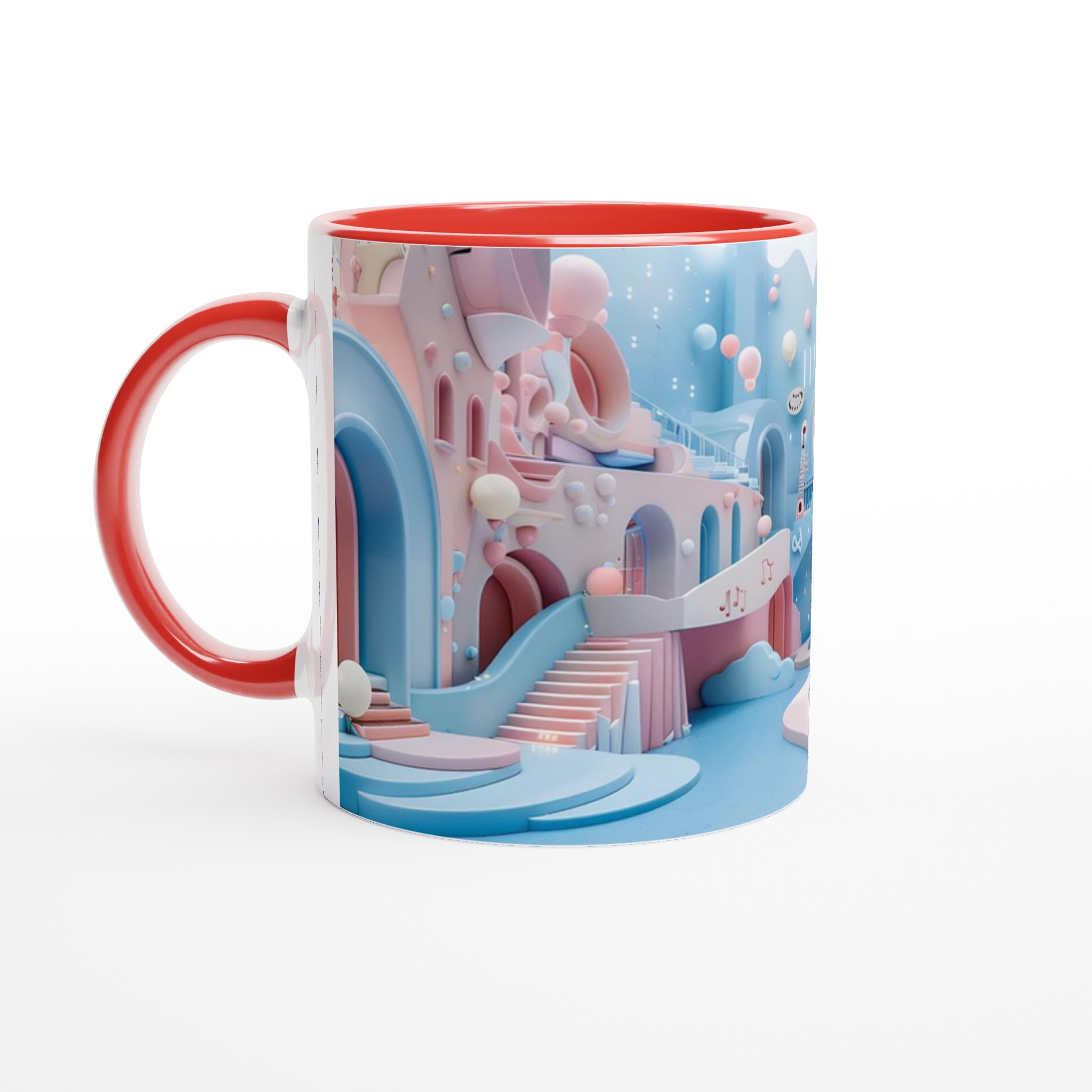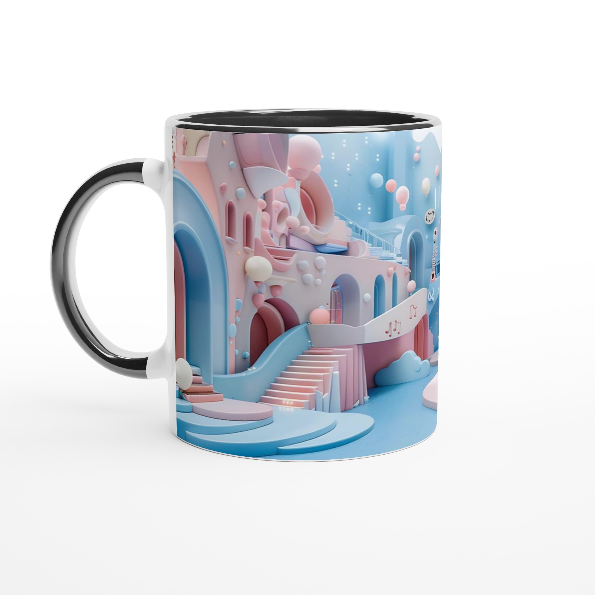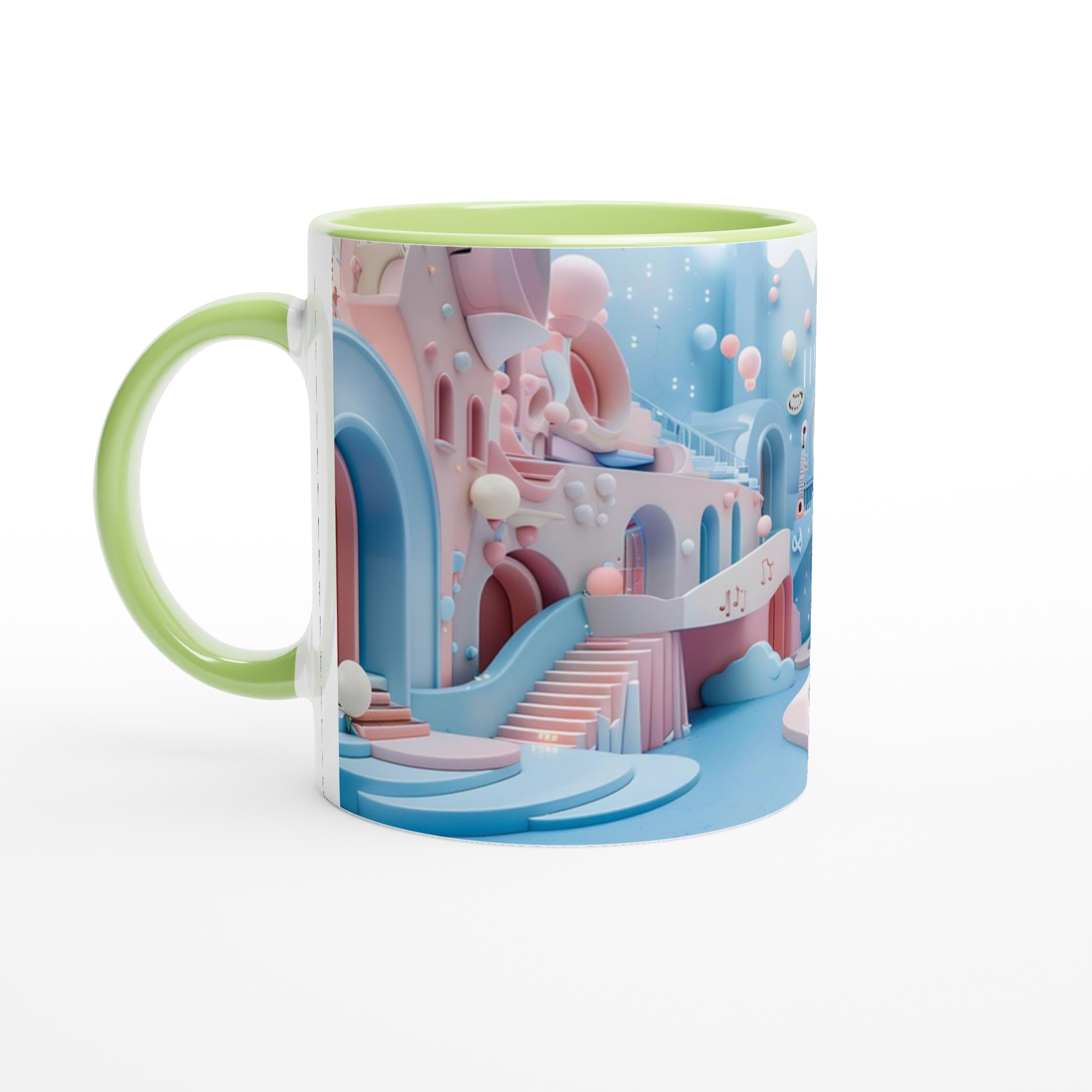 Stig in i en drömvärld varje gång du tar en klunk med denna förtrollande keramiska mugg. Med inspiration från sagolika landskap i mjuka pastelltoner av rosa och blått, förvandlar denna mugg din fikastund till en magisk upplevelse. Perfekt för morgonkaffet, kvällens varma choklad eller när du bara vill njuta av en kopp te och låta tankarna vandra till en lekfull och harmonisk plats. Den blanka ytan framhäver trycken med klara och levande färger, som håller sig fina även efter många turer i mikron och diskmaskinen.