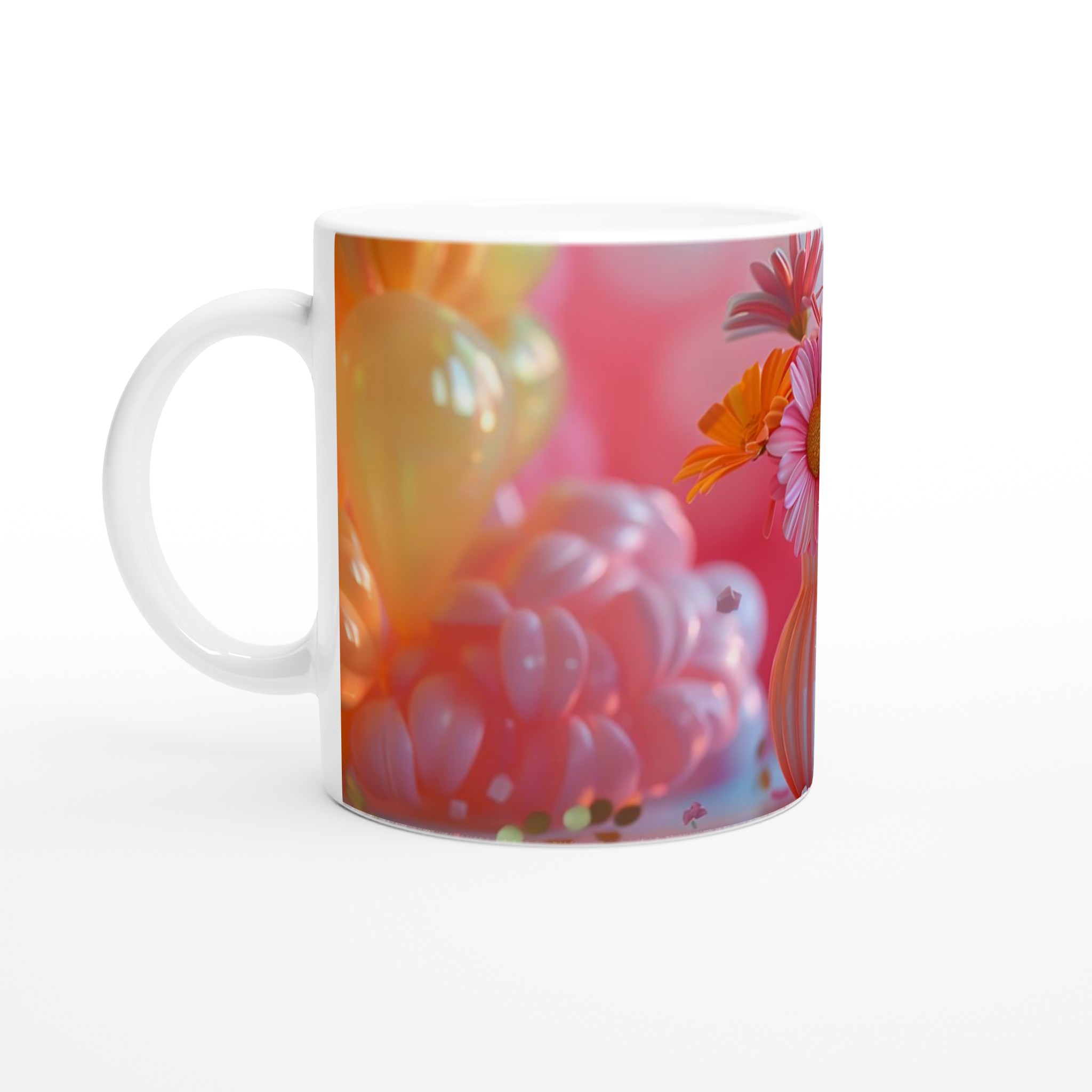 Lyft varje kaffestund med vår premium keramikmugg – stilren, hållbar och skapad för att låta ditt motiv glänsa. Inspirerad av bilden, där mjuka pasteller och livfulla blommor möts, erbjuder denna mugg en touch av glädje och färg till din dag. Den blanka vita ytan ger ett skarpt och levande tryck som verkligen sticker ut, oavsett om det är en personlig design, ett roligt citat eller en present till någon du tycker om.