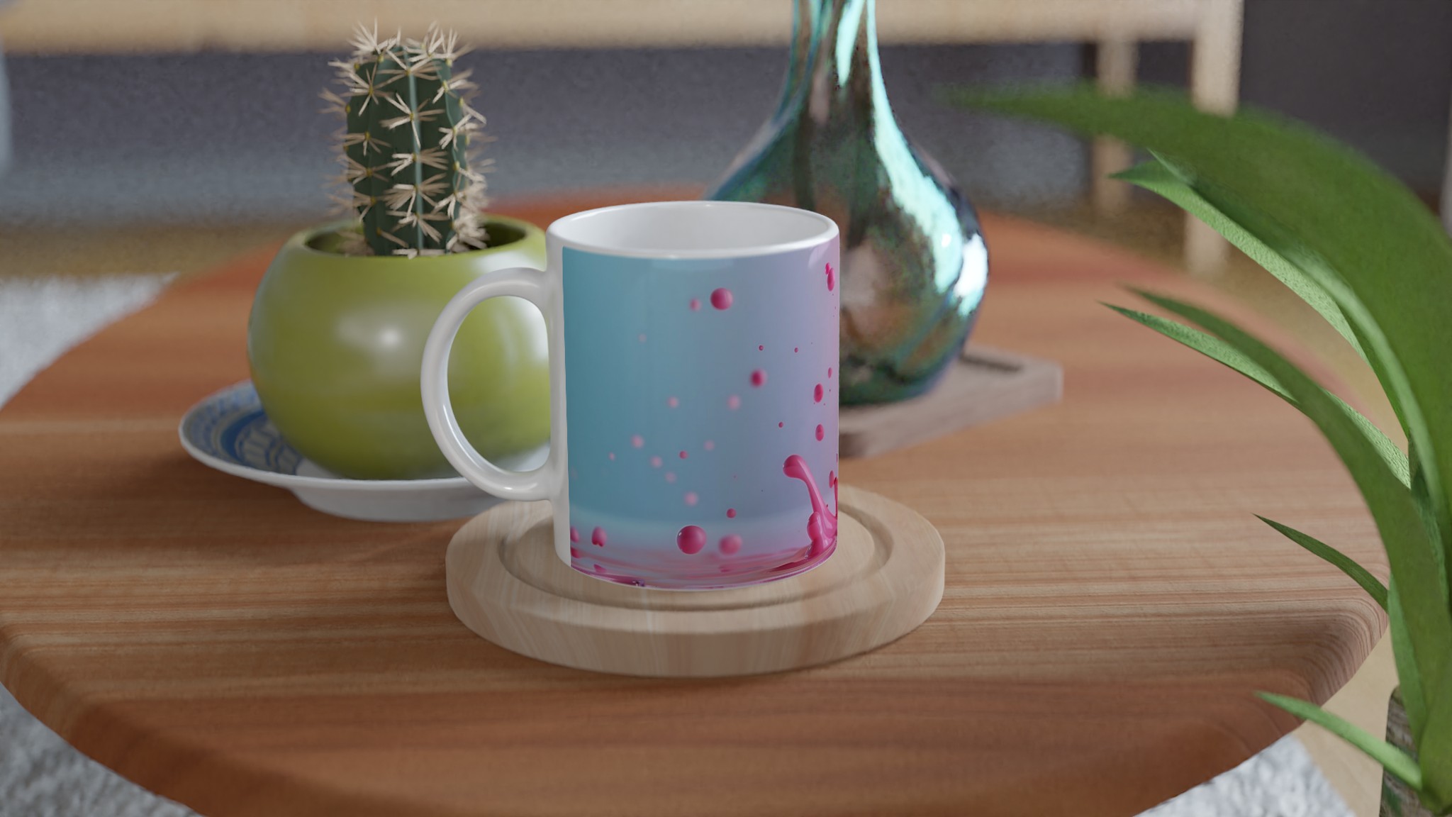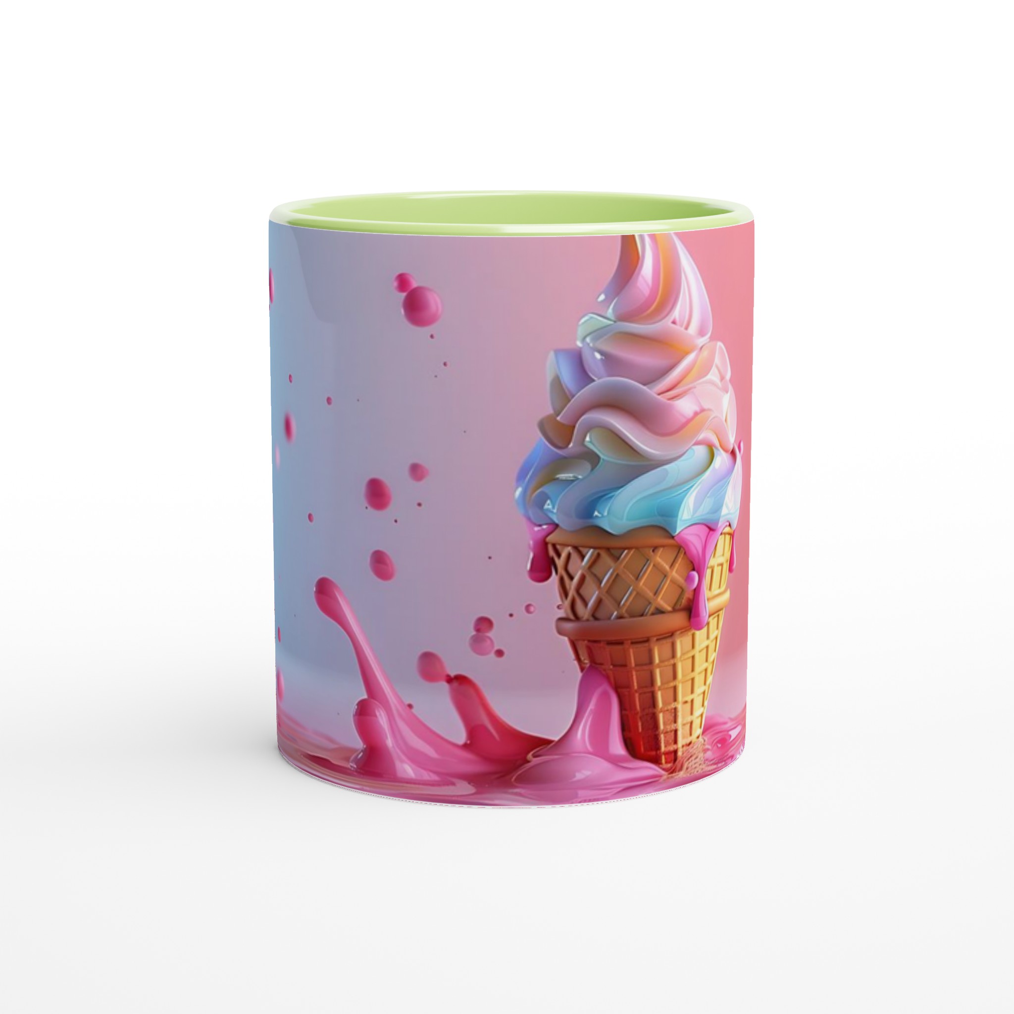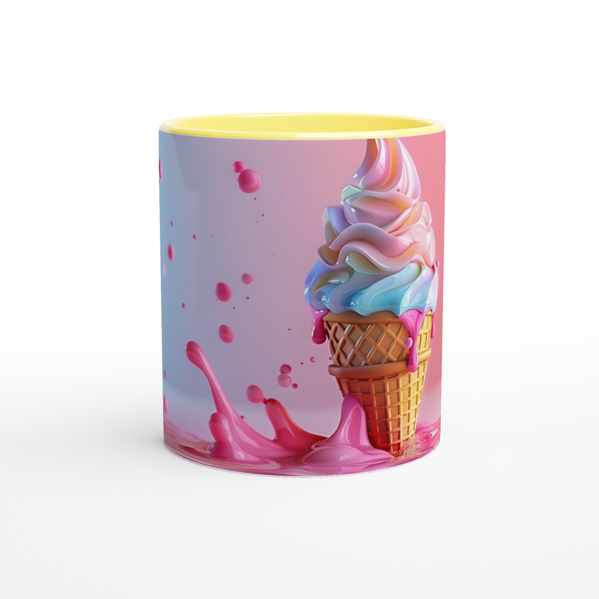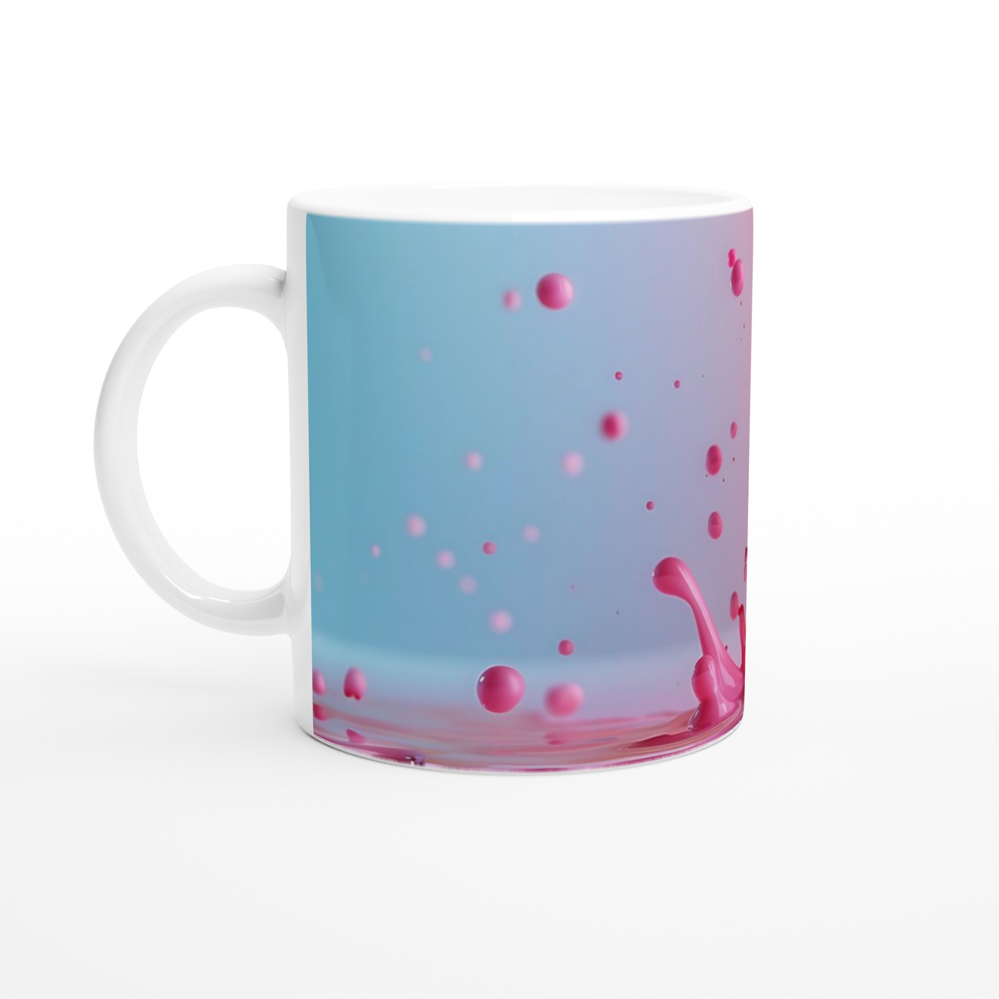 Fånga den lekfulla magin från pastellfärgad glass och en skvätt av sommarglädje med denna charmiga keramikmugg. Inspirerad av bilden av mjukglassens ljuva nyanser och den sprudlande energin från rosa stänk, är denna mugg designad för att bringa en känsla av glädje och lätthet till din dag. Den är perfekt för alla dagens stunder – morgonkaffet, en värmande kopp te eller en härlig varm choklad. Den blanka vita ytan gör att trycken framträder klart och färgstarkt, vilket gör muggen till en riktig favorit i vardagen.