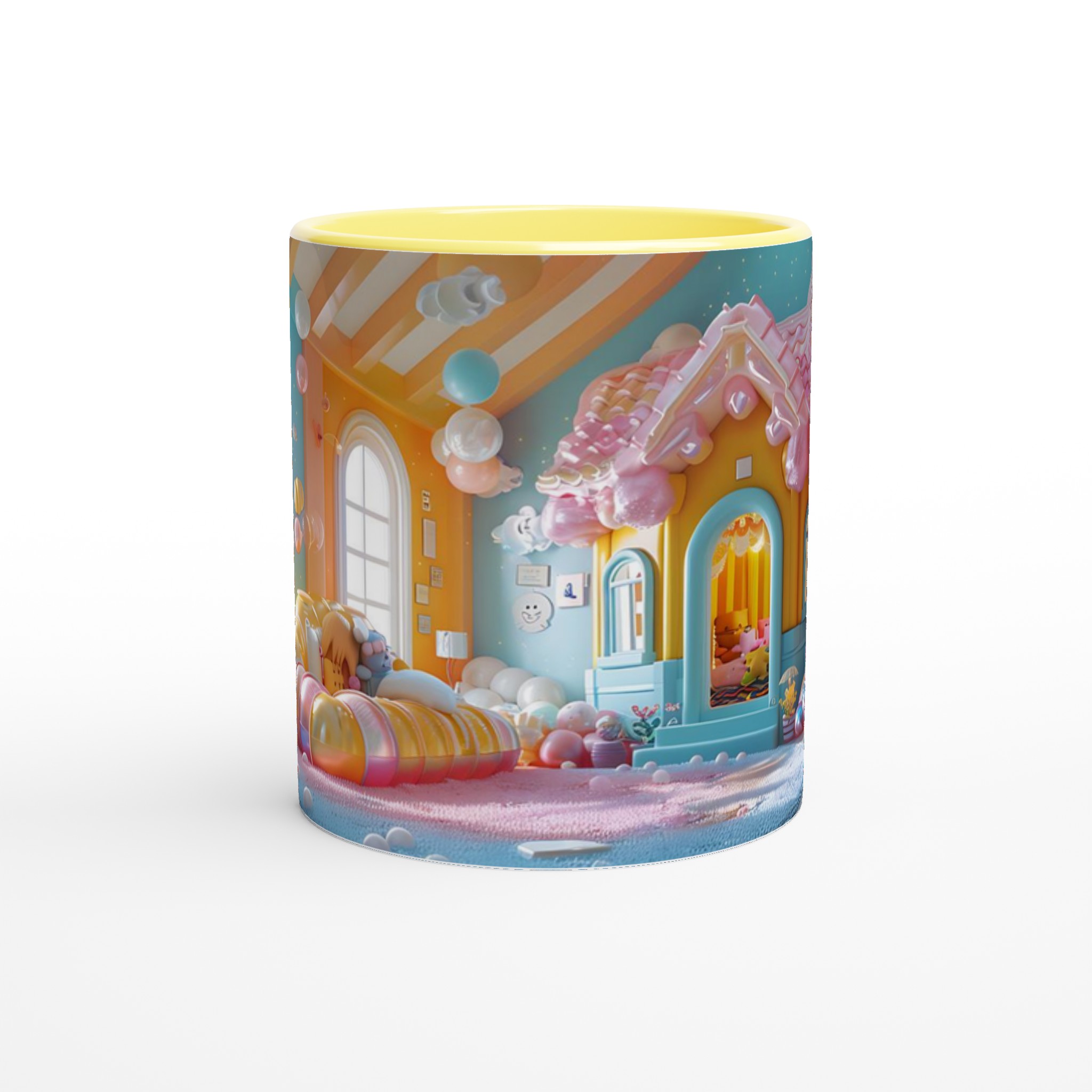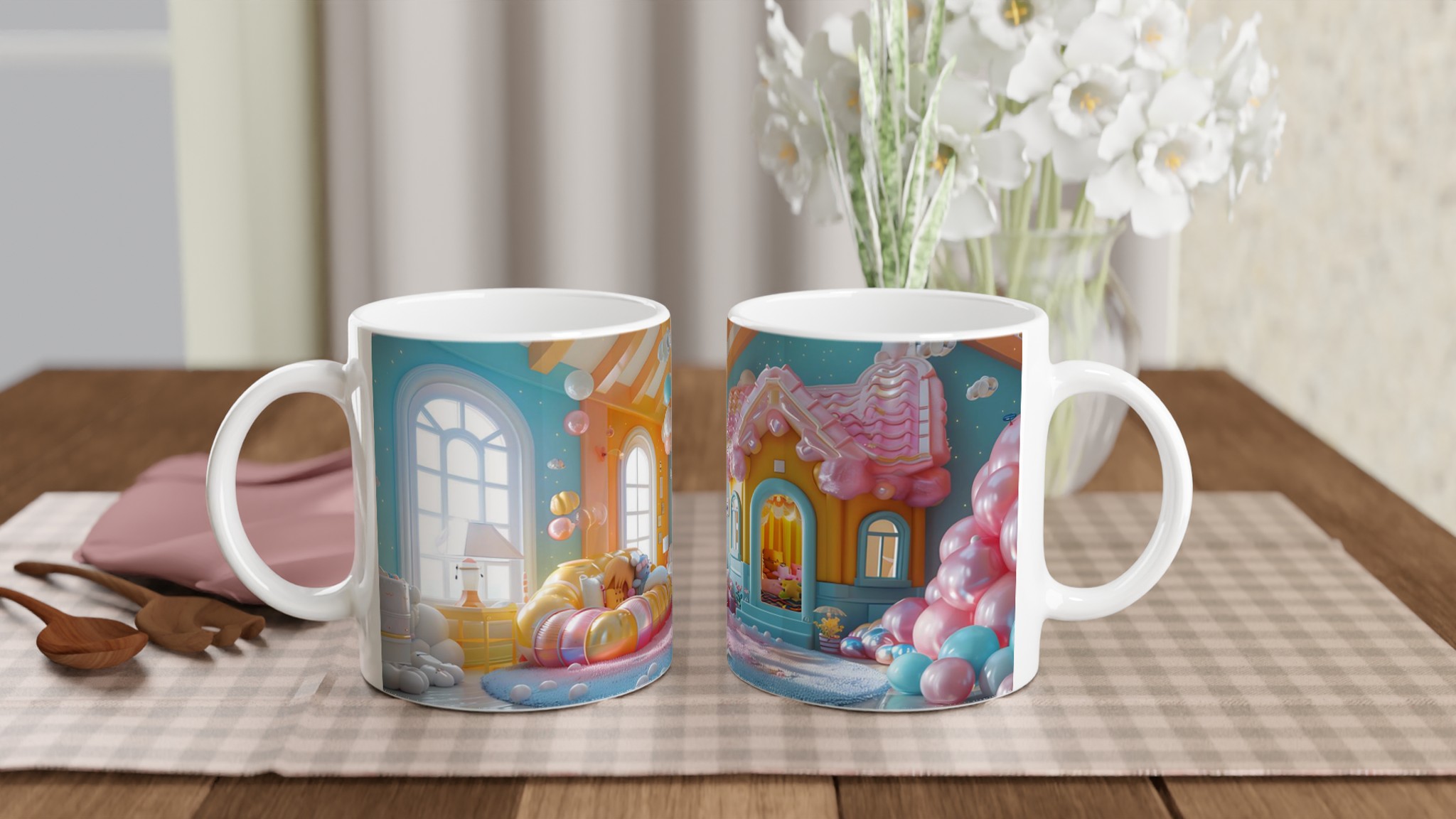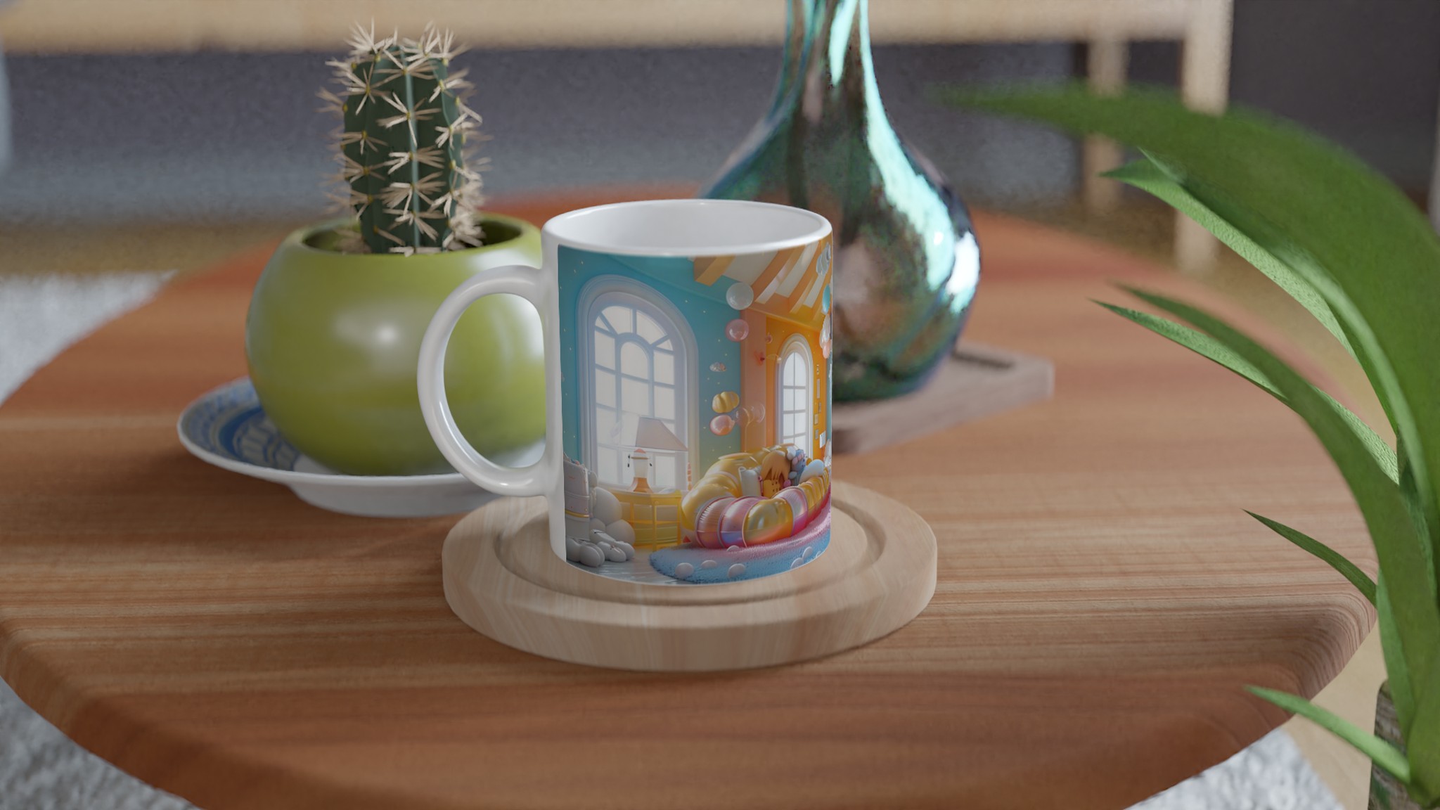 Stig in i en värld av pastellfärgad magi med vår charmiga 11oz keramiska mugg, inspirerad av fantasifulla lekrum och drömmiga färger. Denna stilrena och vackra keramikmugg är perfekt för alla dagens stunder – morgonkaffet, en värmande kopp te eller en härlig varm choklad. Den blanka ytan gör att trycken framträder klart och färgstarkt, vilket gör muggen till en riktig favorit i vardagen. Varje klunk blir en liten flykt till en värld av lugn och glädje, precis som att vistas i ett rum fyllt av mjuka ballonger och fluffiga moln.