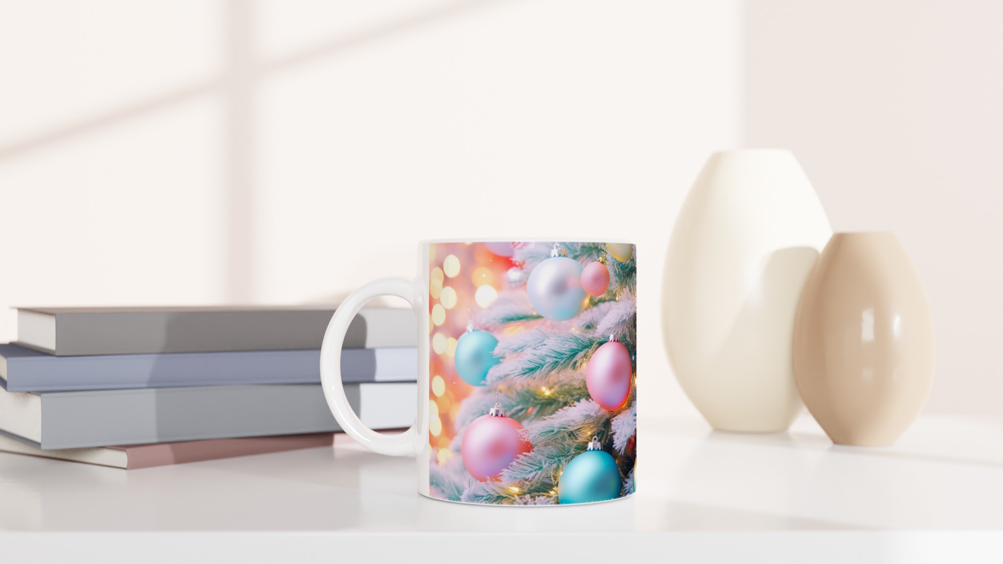 Fånga julens magi varje dag med vår pastellfärgade Keramiska Mugg, en vardagsfavorit som förgyller alla tillfällen. Inspirerad av de drömska färgerna från en snötäckt gran prydd med glittrande dekorationer, ger denna mugg en touch av festlig elegans till din fikastund.