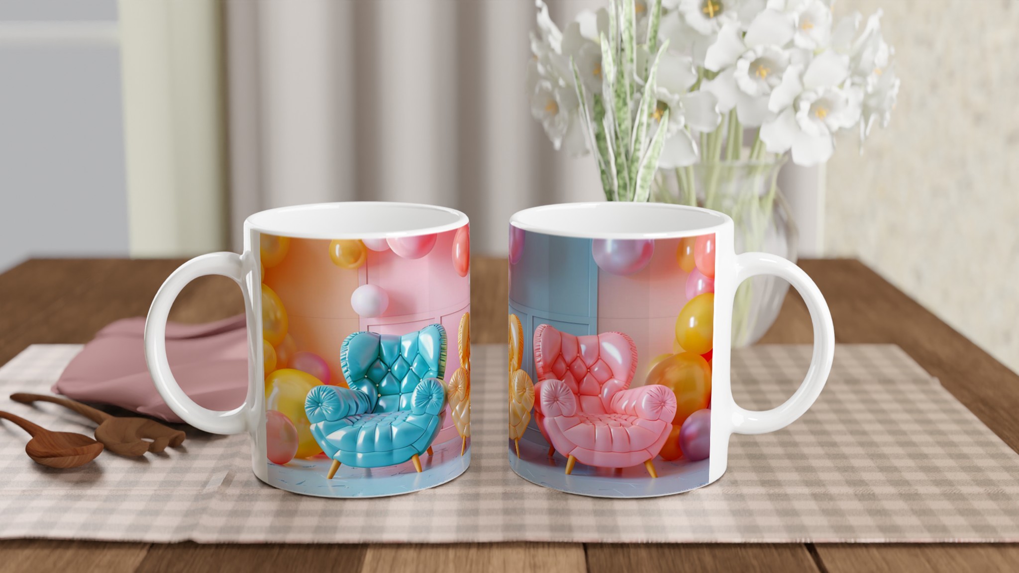 Lyft din vardagsrutin med vår Pastellfärgade Keramikmugg, en sann glädjespridare inspirerad av de drömska färgerna från en magisk ballongfest! Oavsett om du föredrar en lugn morgon med kaffe, en mysig kväll med varm choklad, eller bara en avkopplande stund med ditt favoritte, blir denna mugg snabbt din nya vardagsfavorit.