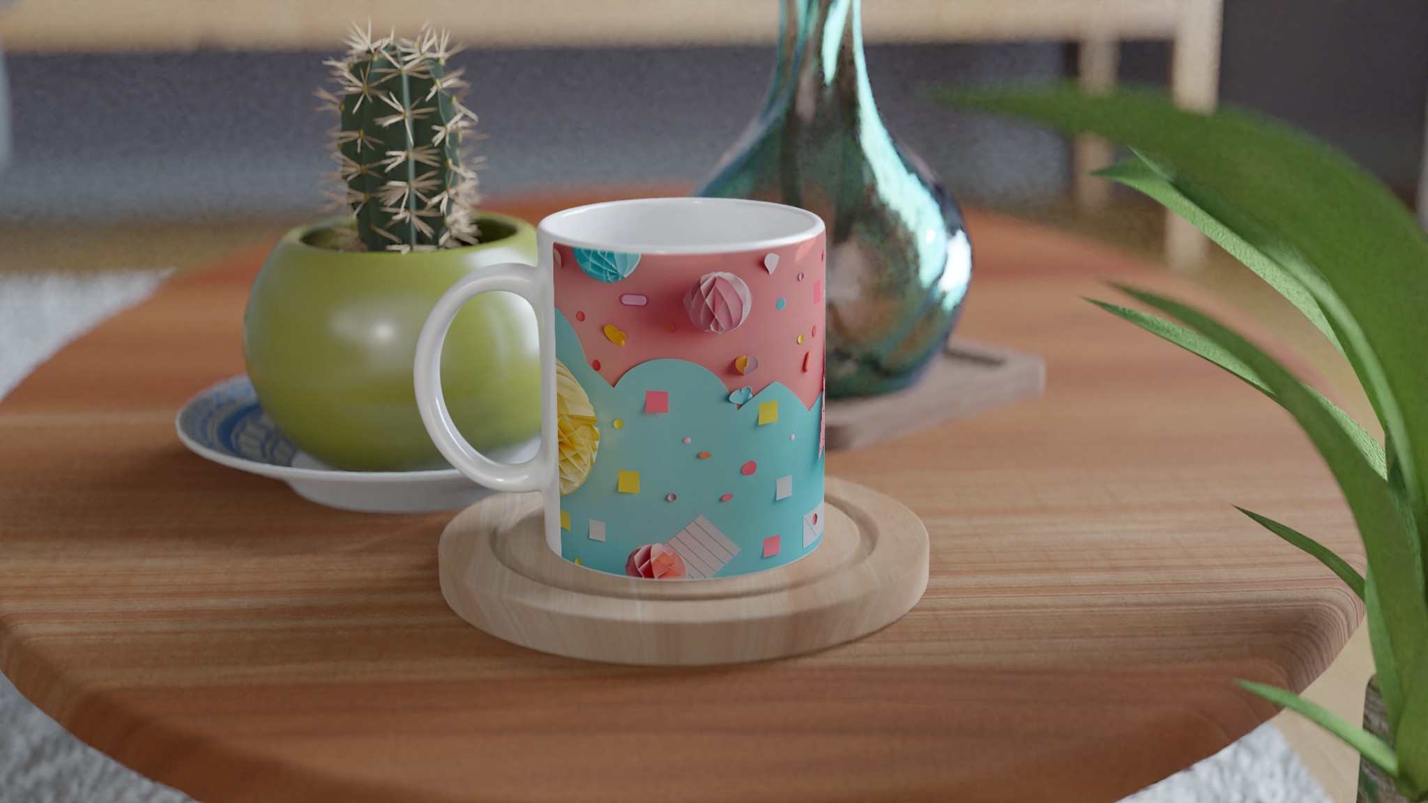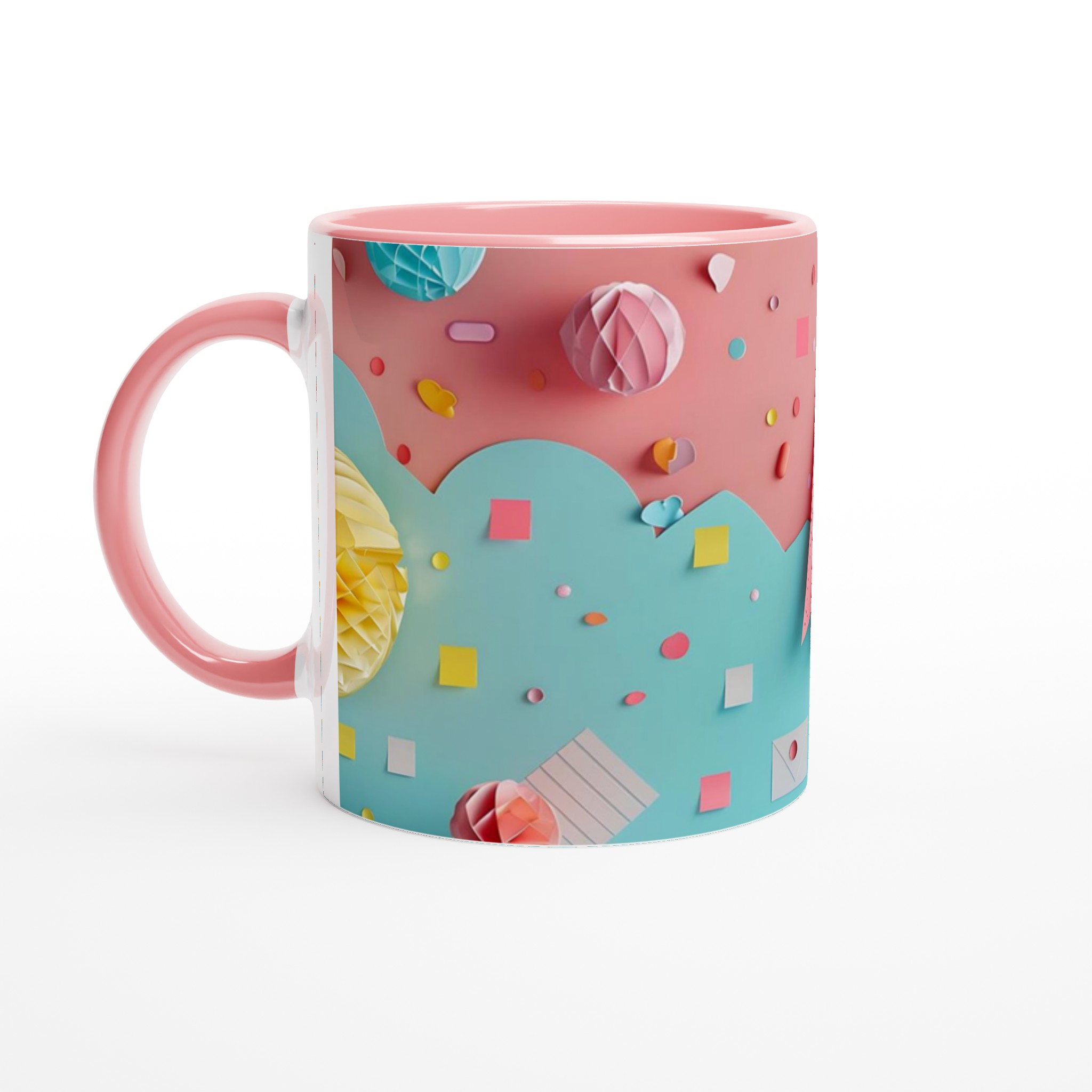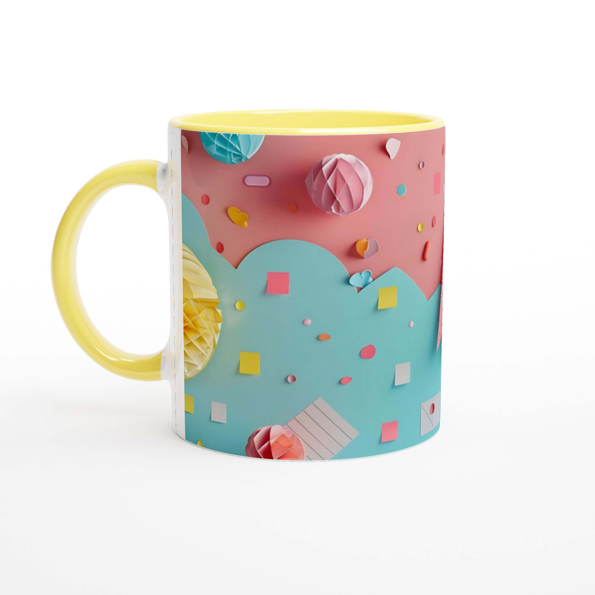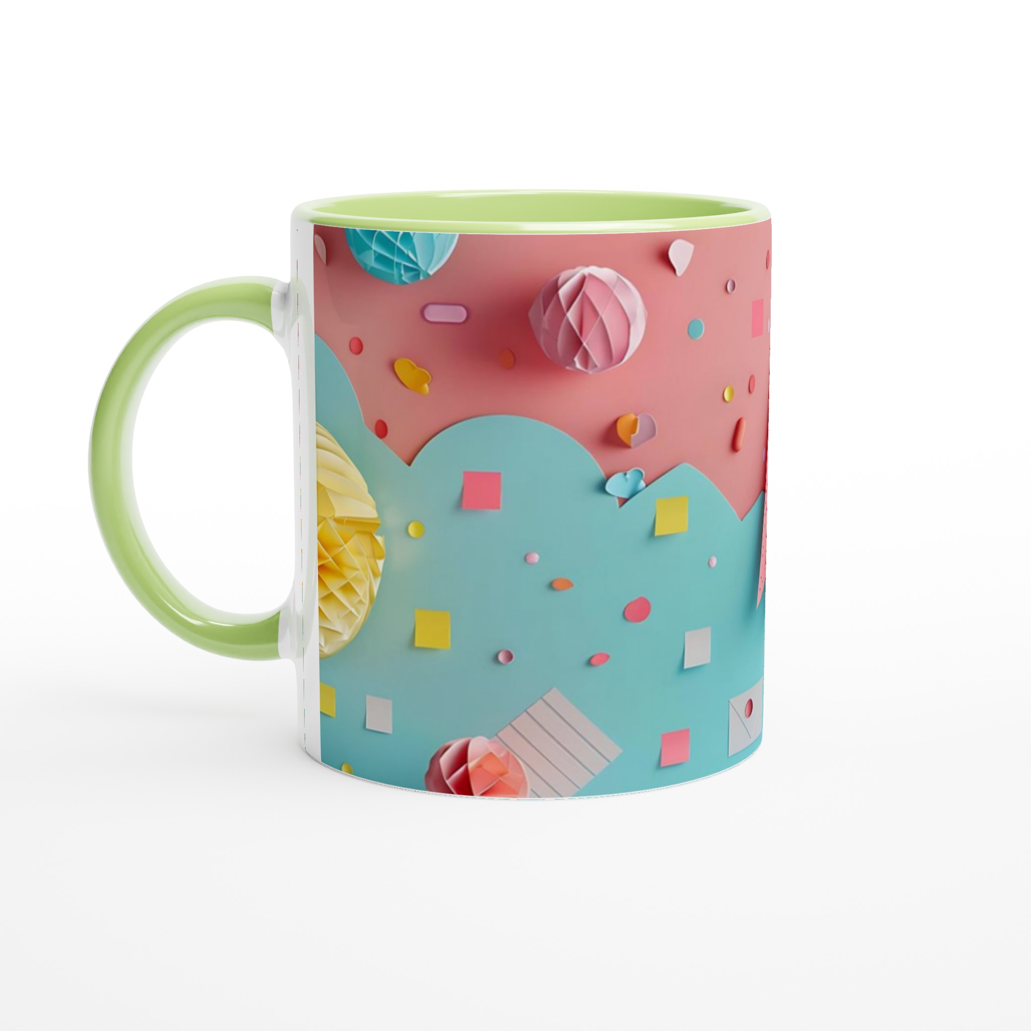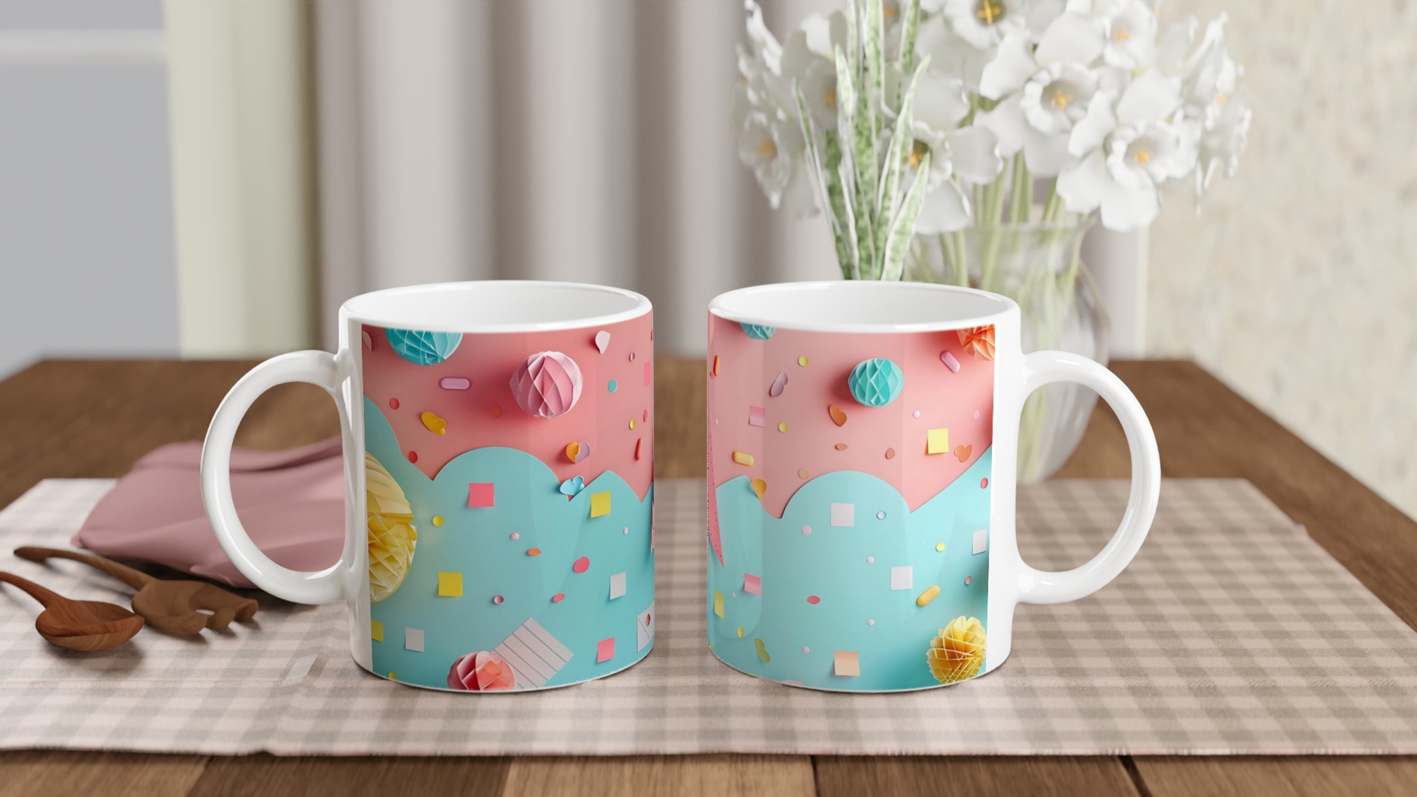 Lyft din fikastund med denna underbara keramiska mugg, inspirerad av lekfulla pastellfärger och glada former. Denna mugg är mer än bara en kopp – den är en daglig påminnelse om glädje och lättsamhet, perfekt för ditt morgonkaffe, en mysig kvälls-choklad eller när du bara vill njuta av en kopp te i en glad förpackning. Den blanka vita ytan gör att trycken framhävs med klara och levande färger, som håller sig fina även efter många turer i mikron och diskmaskinen.