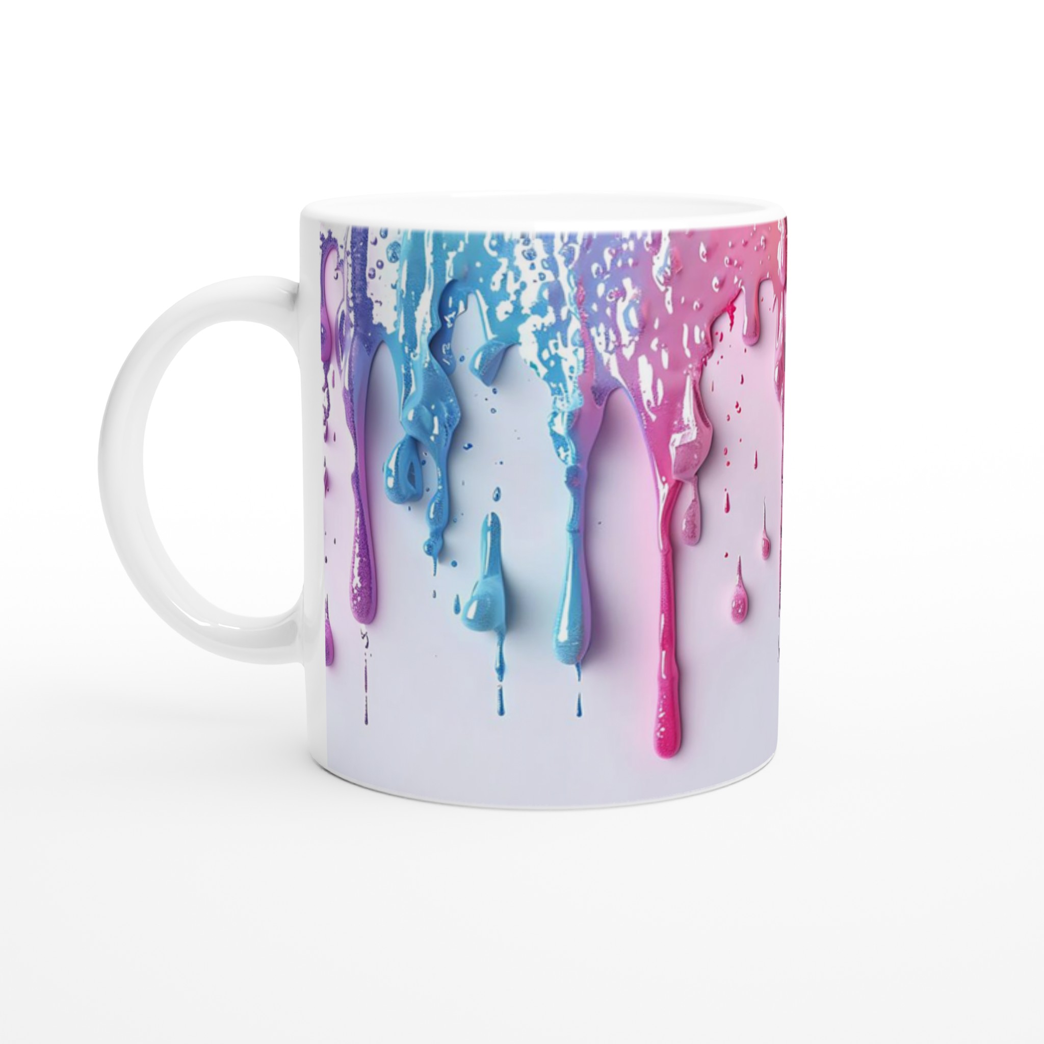 Inspirerad av mjuka, smältande pastellfärger som flyter samman, fångar denna mugg ögat med sin lekfulla charm och eleganta design. Den blanka ytan ger ett skarpt och levande tryck som verkligen sticker ut, oavsett om det är en personlig design, ett roligt citat eller en present till någon du tycker om. Välj bland en palett av lugnande pastelltoner som förvandlar din dryckesupplevelse till ren magi.