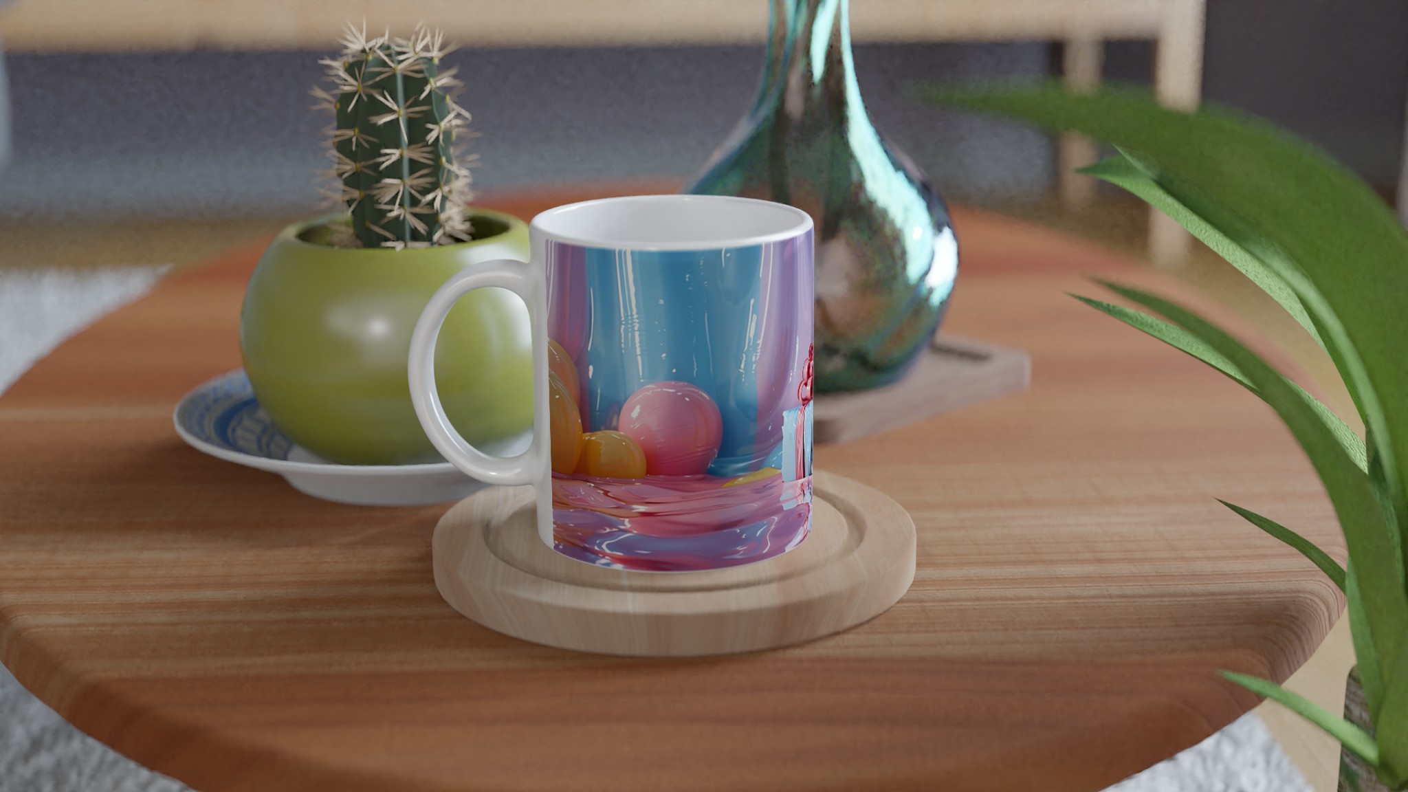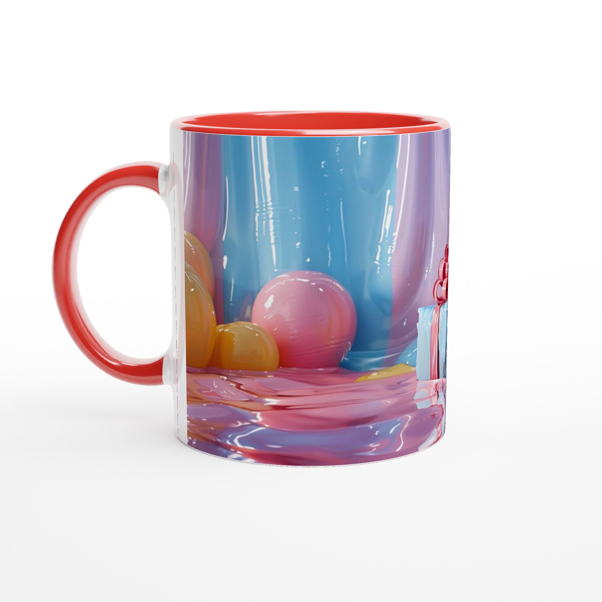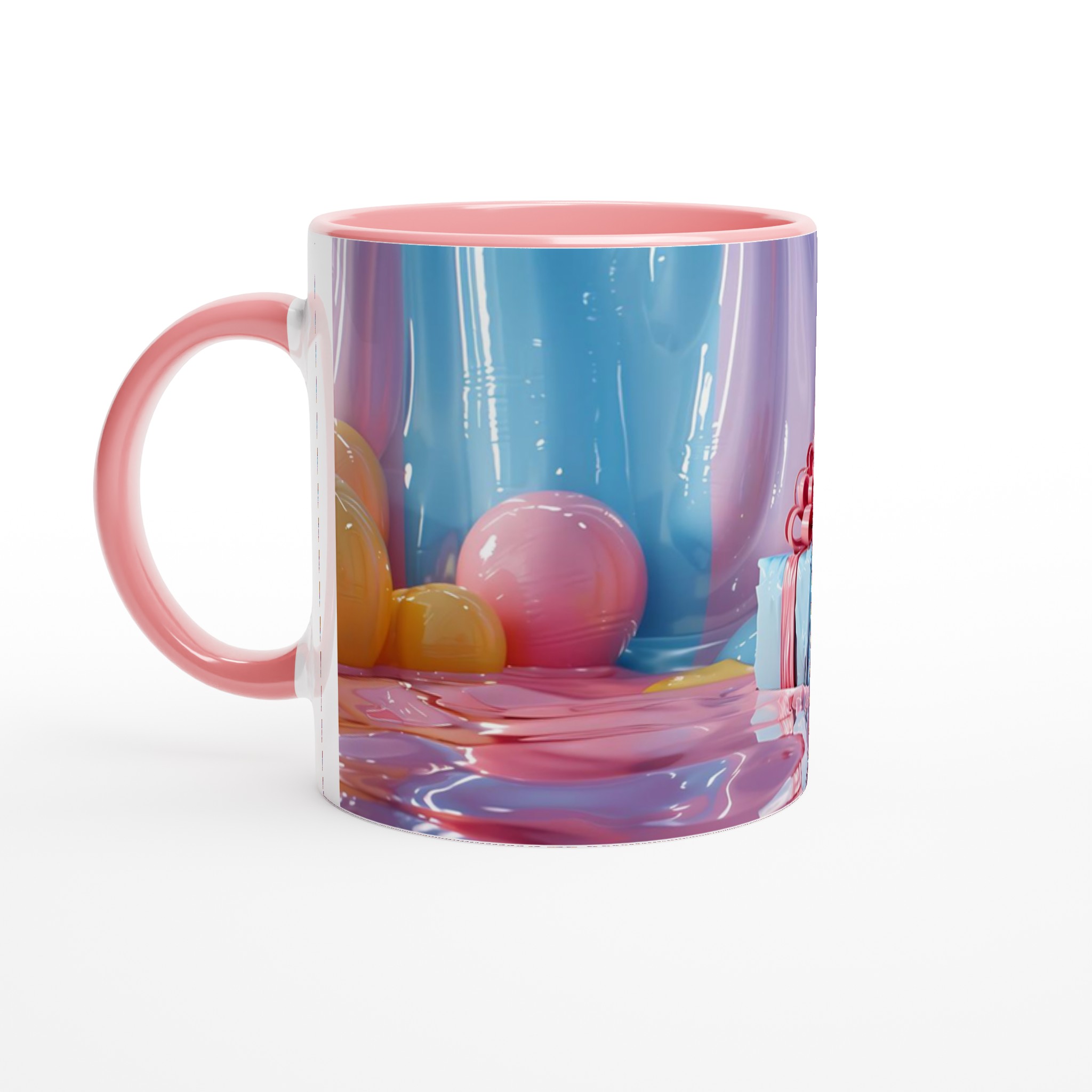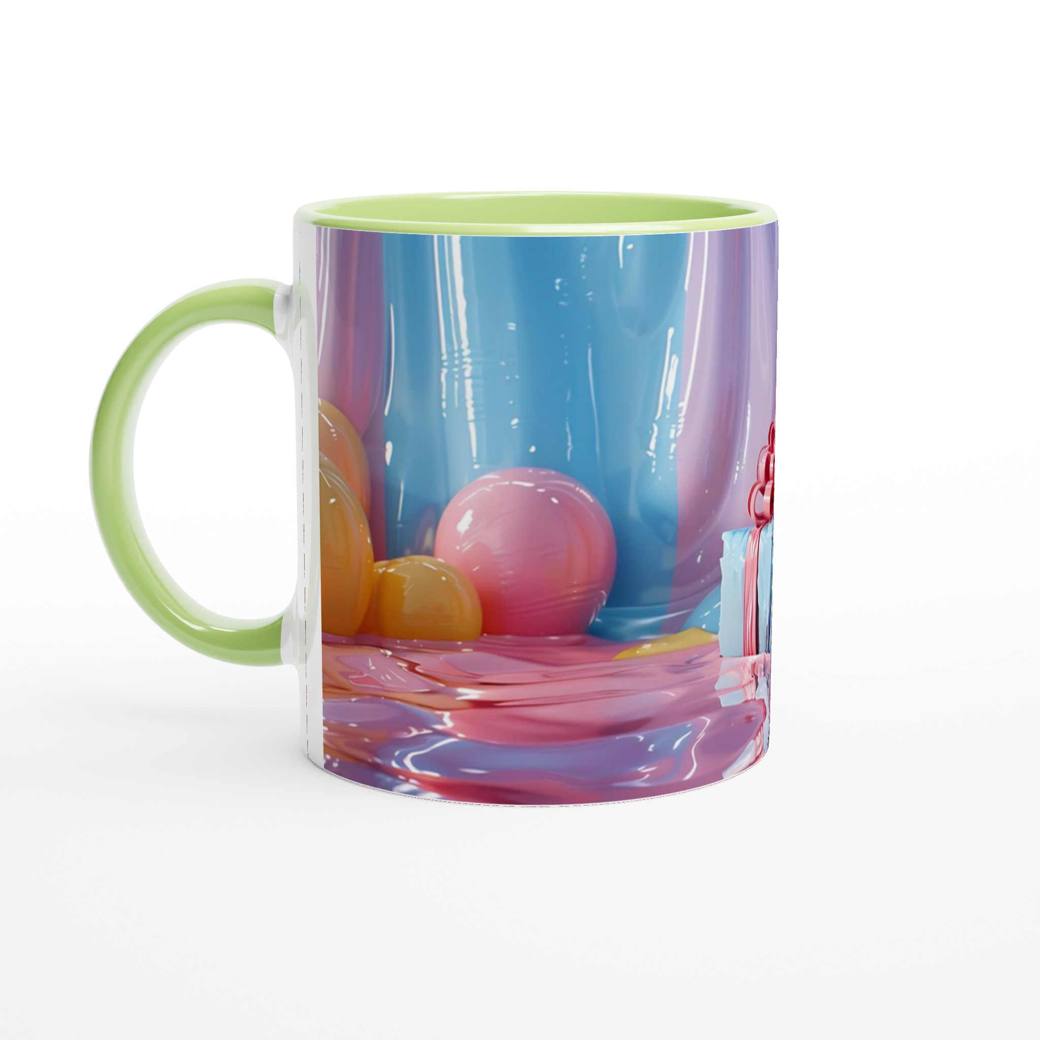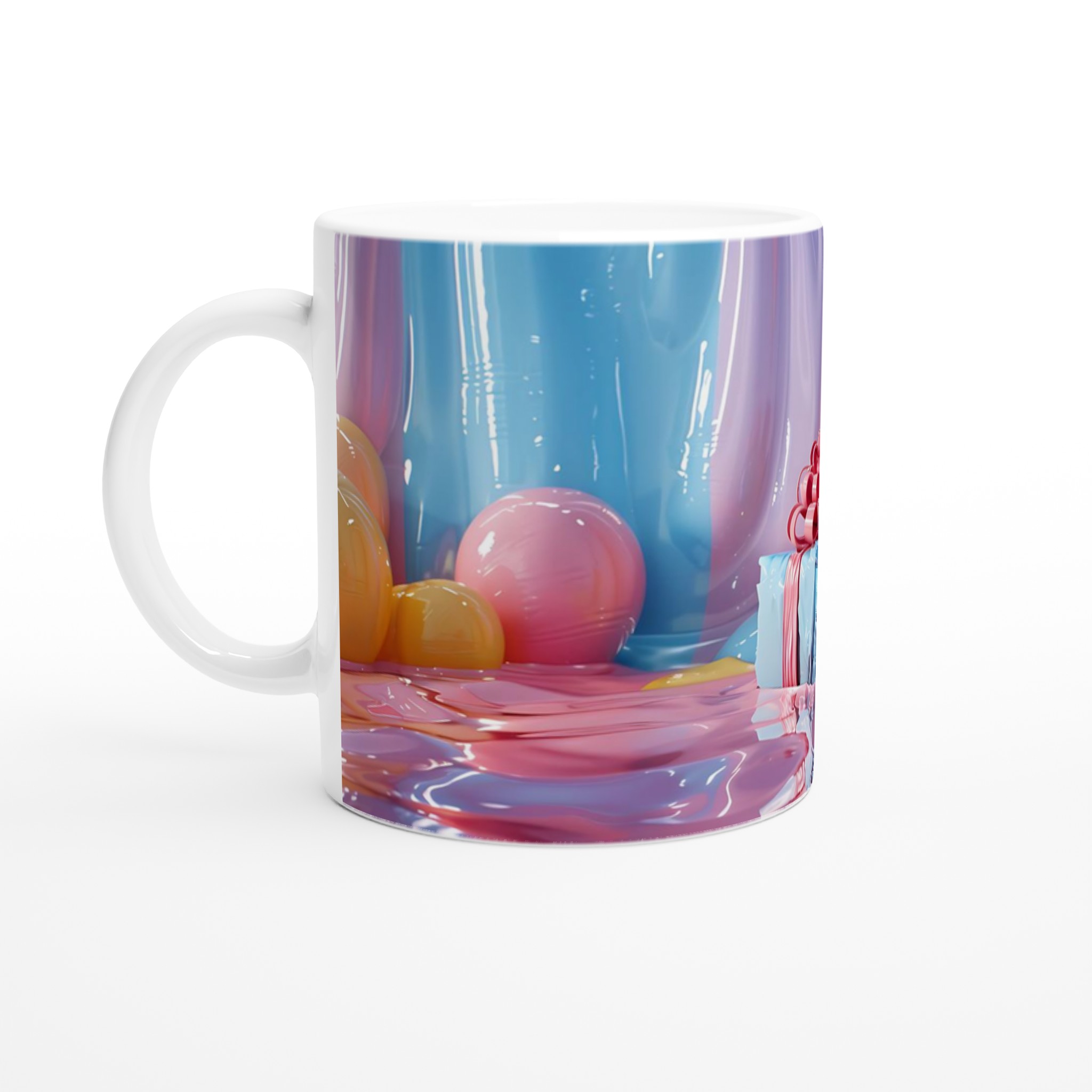 Fånga dagens ljusaste stunder med denna förtrollande keramiska mugg, inspirerad av bildens drömska pastellpalett. Den blir snabbt en vardagsfavorit, perfekt för morgonkaffet, kvällens varma choklad eller när du bara vill njuta av en kopp te. Den blanka ytan får dina tryck att framhävas med klara och levande färger som håller sig fina även efter många turer i mikron och diskmaskinen, precis som de glänsande godbitarna i bilden.