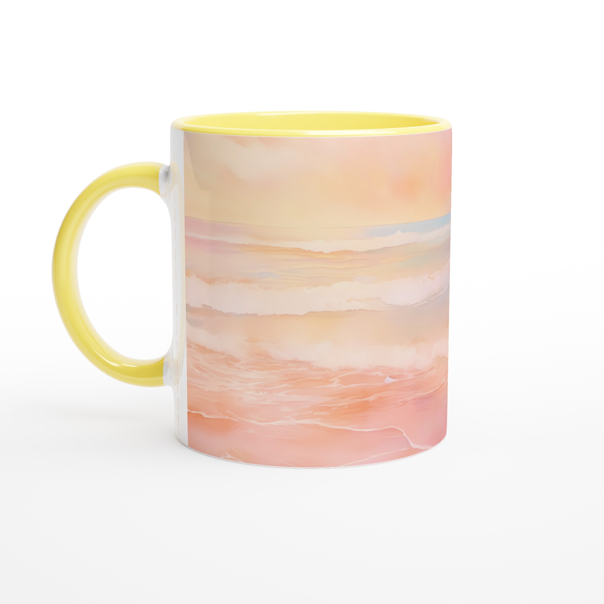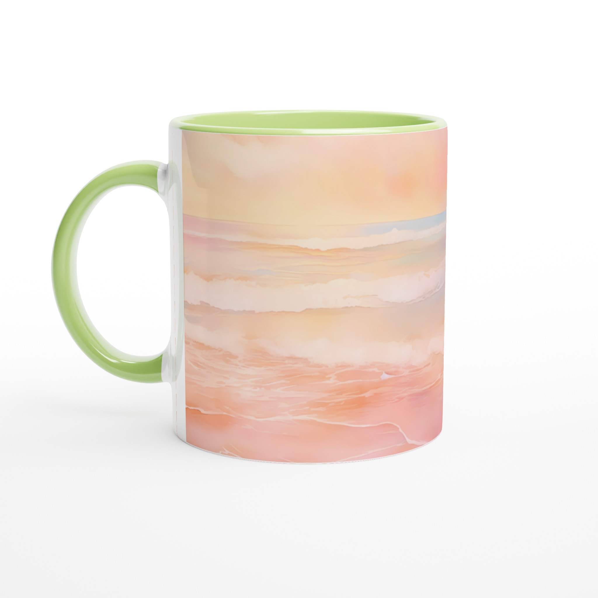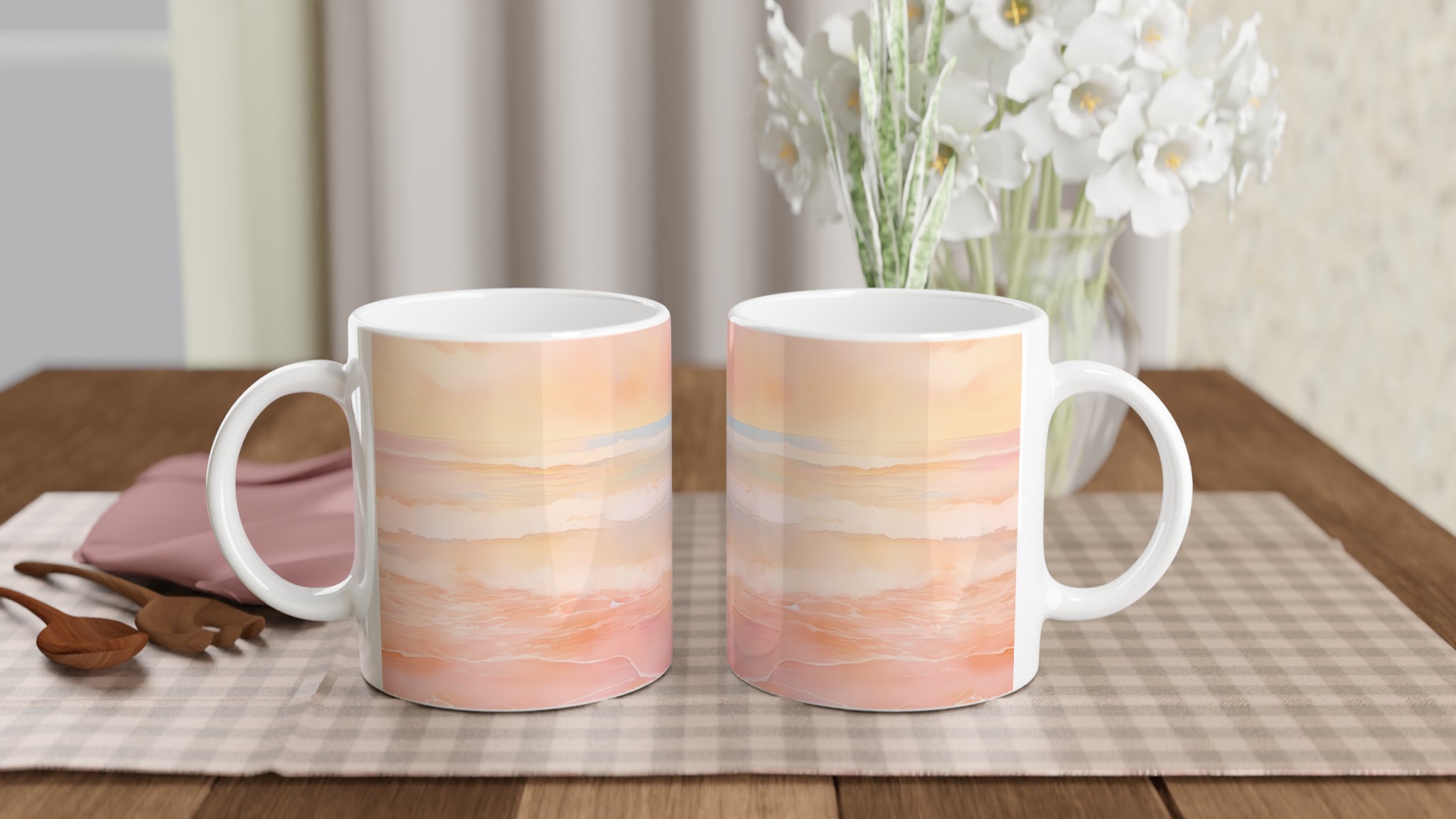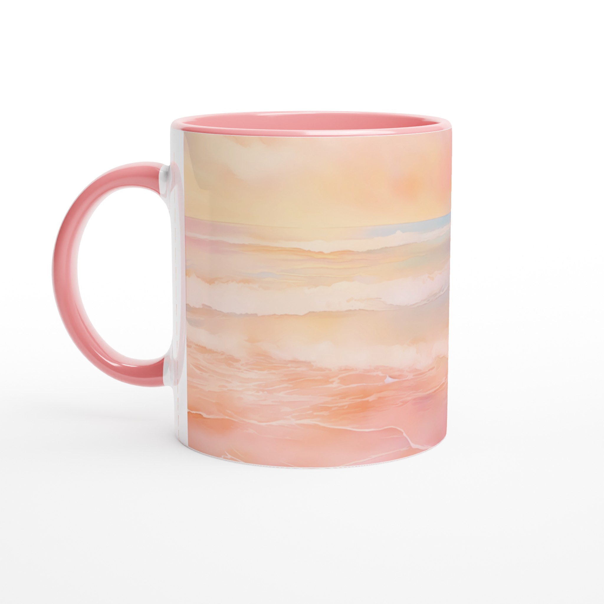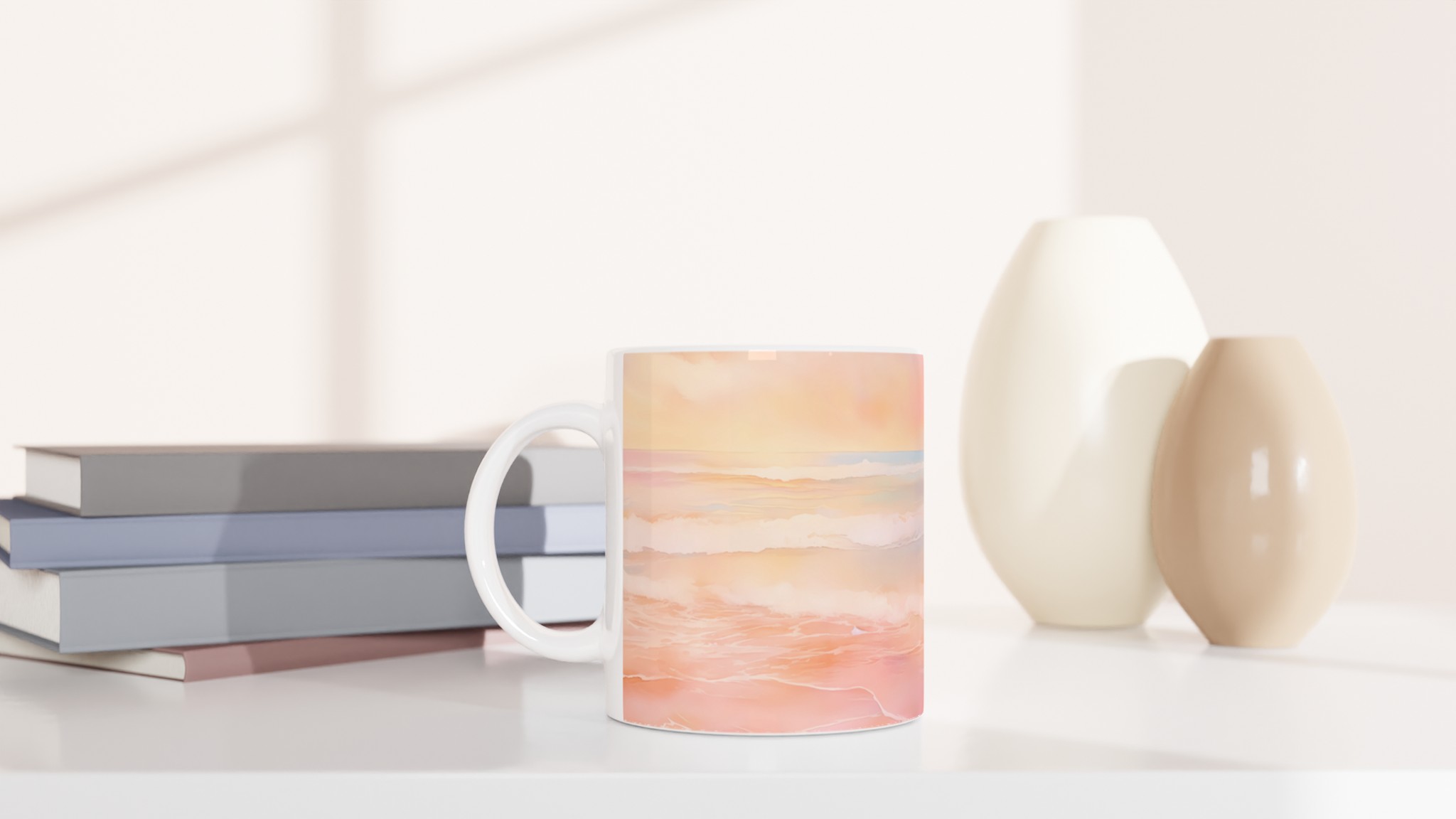 Låt varje klunk transportera dig till en fridfull solnedgång över havet med denna pastellfärgade keramiska mugg. Dess drömska och mjuka färgpalett, inspirerad av himlens och havets mest rofyllda ögonblick, gör den till den perfekta följeslagaren för dina stunder av lugn – vare sig det är med morgonkaffet, en varm choklad på kvällen, eller en värmande kopp te när du behöver en paus.