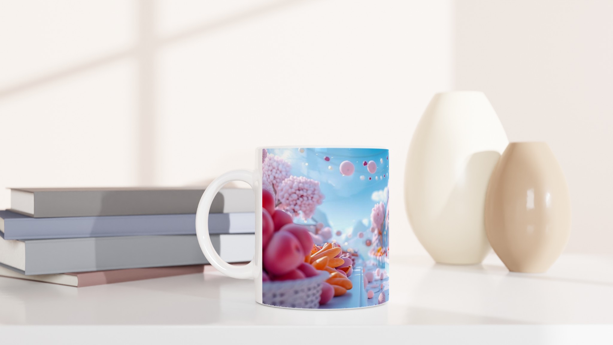 Föreställ dig en promenad genom en sockerrosa drömvärld, fylld med ljusa toner och lekfull charm. Denna keramiska mugg fångar den ljuva magin perfekt, med sin blanka yta som lyfter fram tryckens klara, levande färger. Den är skapad för att bli din nya favoritmugg, oavsett om du drömmer dig bort med morgonkaffet, värmer dig med kvällens varma choklad eller bara vill njuta av en kopp te i en värld av pastell.