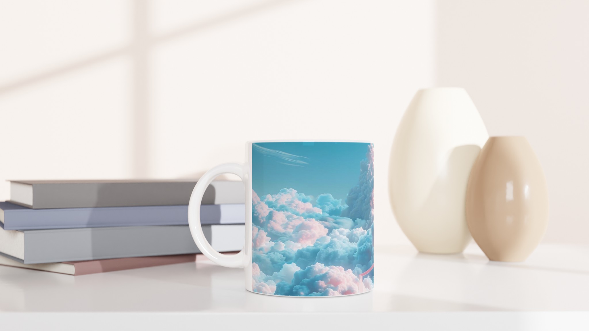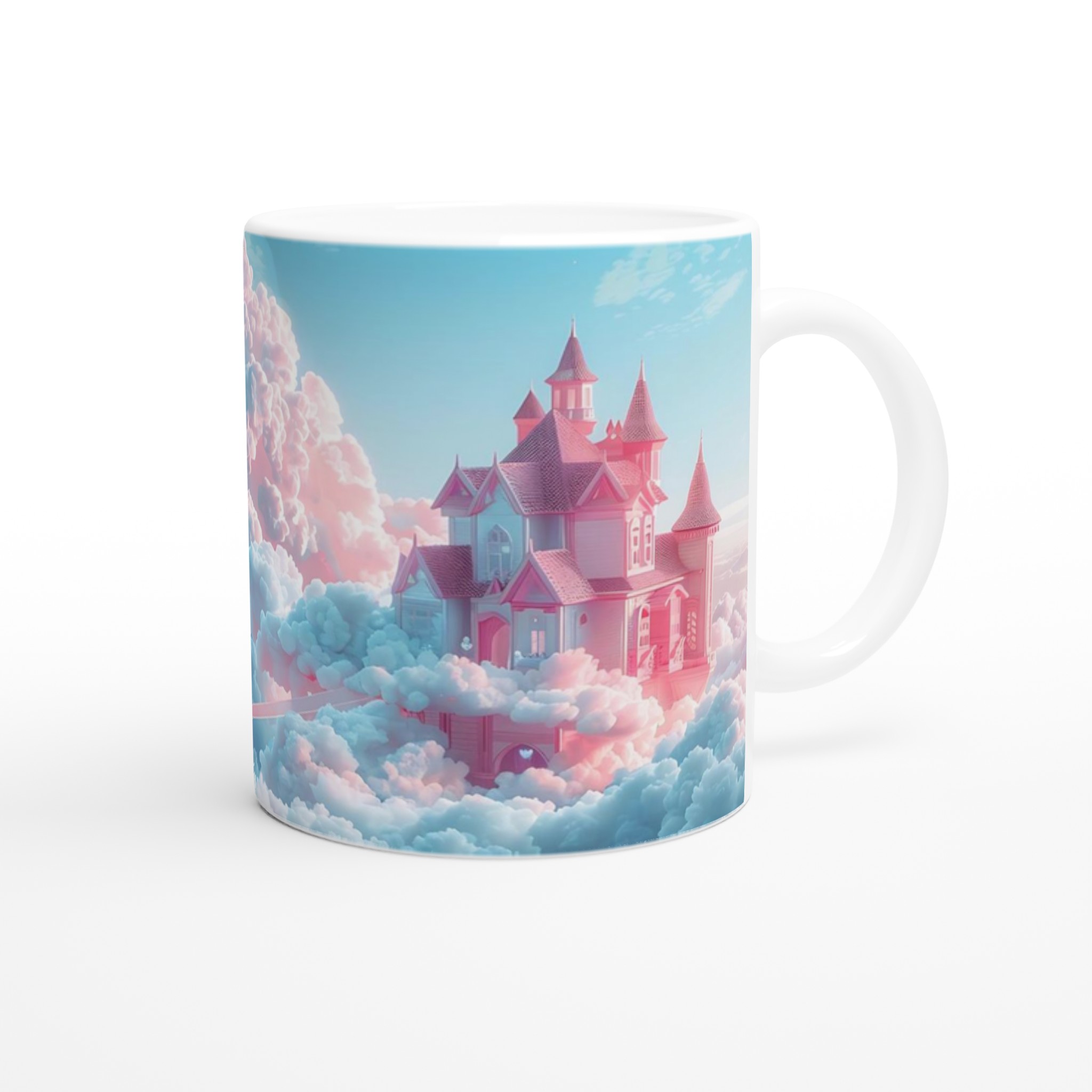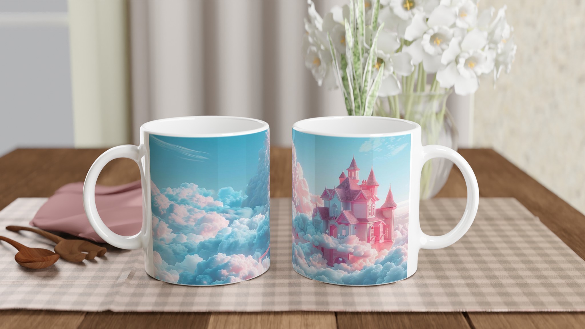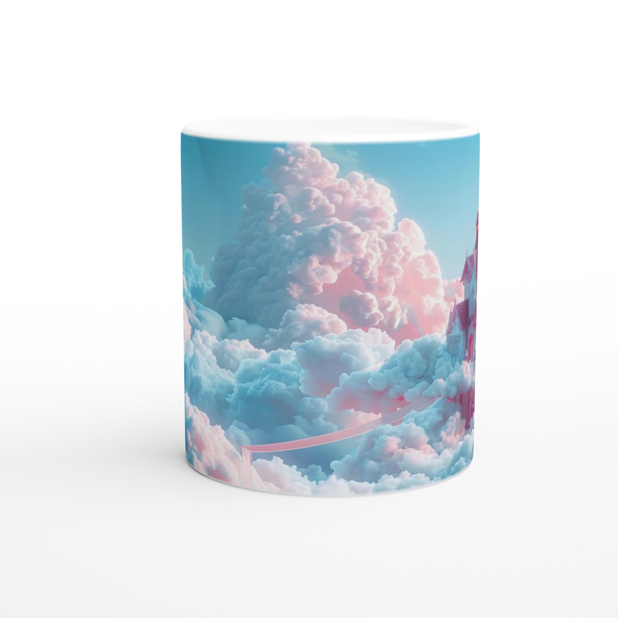 Svep in i en värld av fantasi varje gång du tar en klunk med denna drömska keramiska mugg. Inspirerad av bilden av ett pastellrosa slott som svävar bland fluffiga, sockervaddsfärgade moln, blir denna mugg snabbt en vardagsfavorit. Perfekt för morgonkaffet som en flykt till fantasin, kvällens varma choklad för en stunds avkoppling, eller när du bara vill njuta av en kopp te och drömma dig bort. Den blanka ytan får ditt tryck att framhävas med klara och levande färger, som håller sig fina även efter många turer i mikron och diskmaskinen.