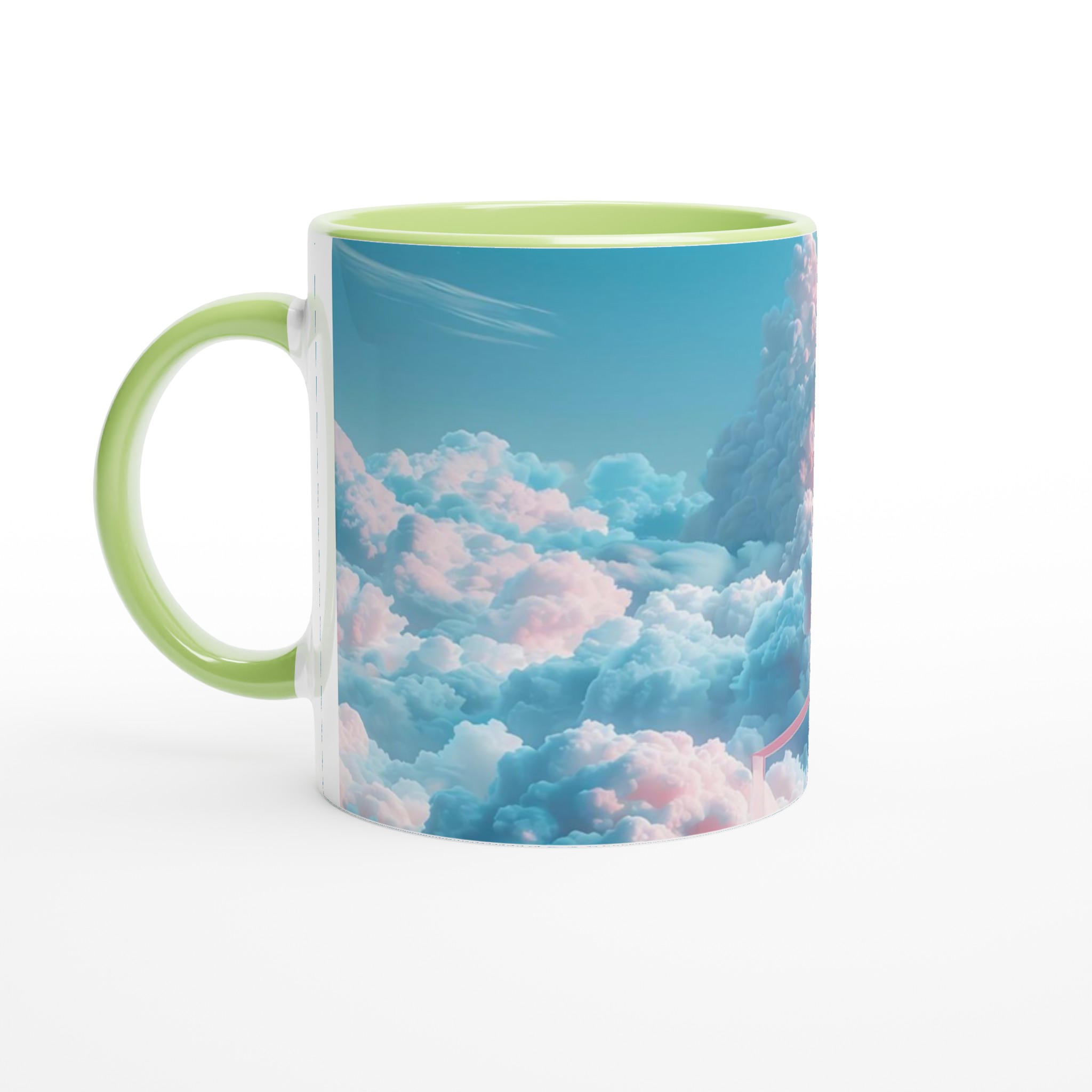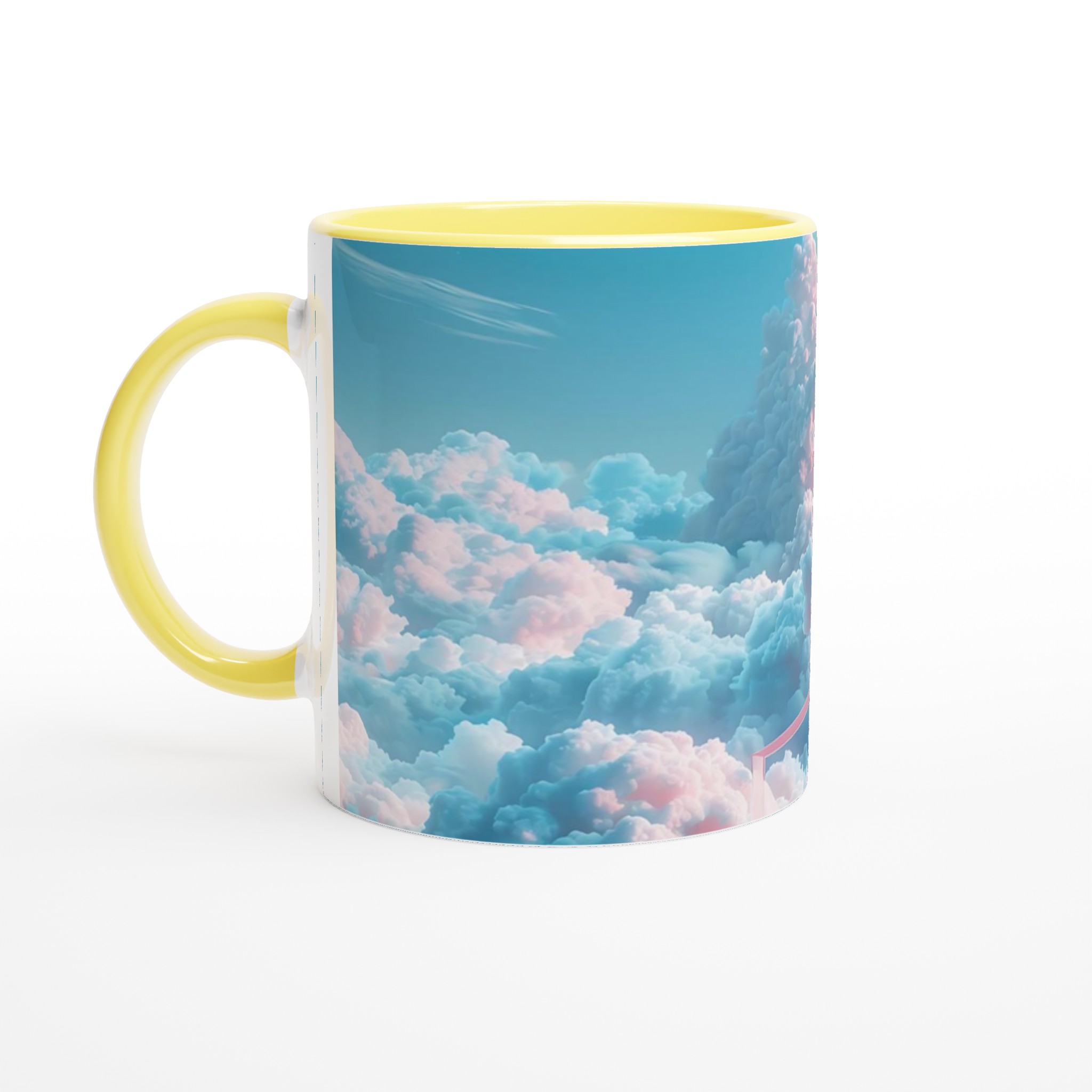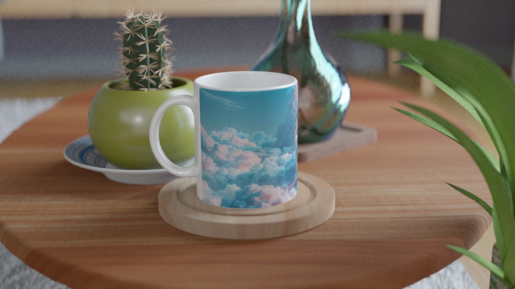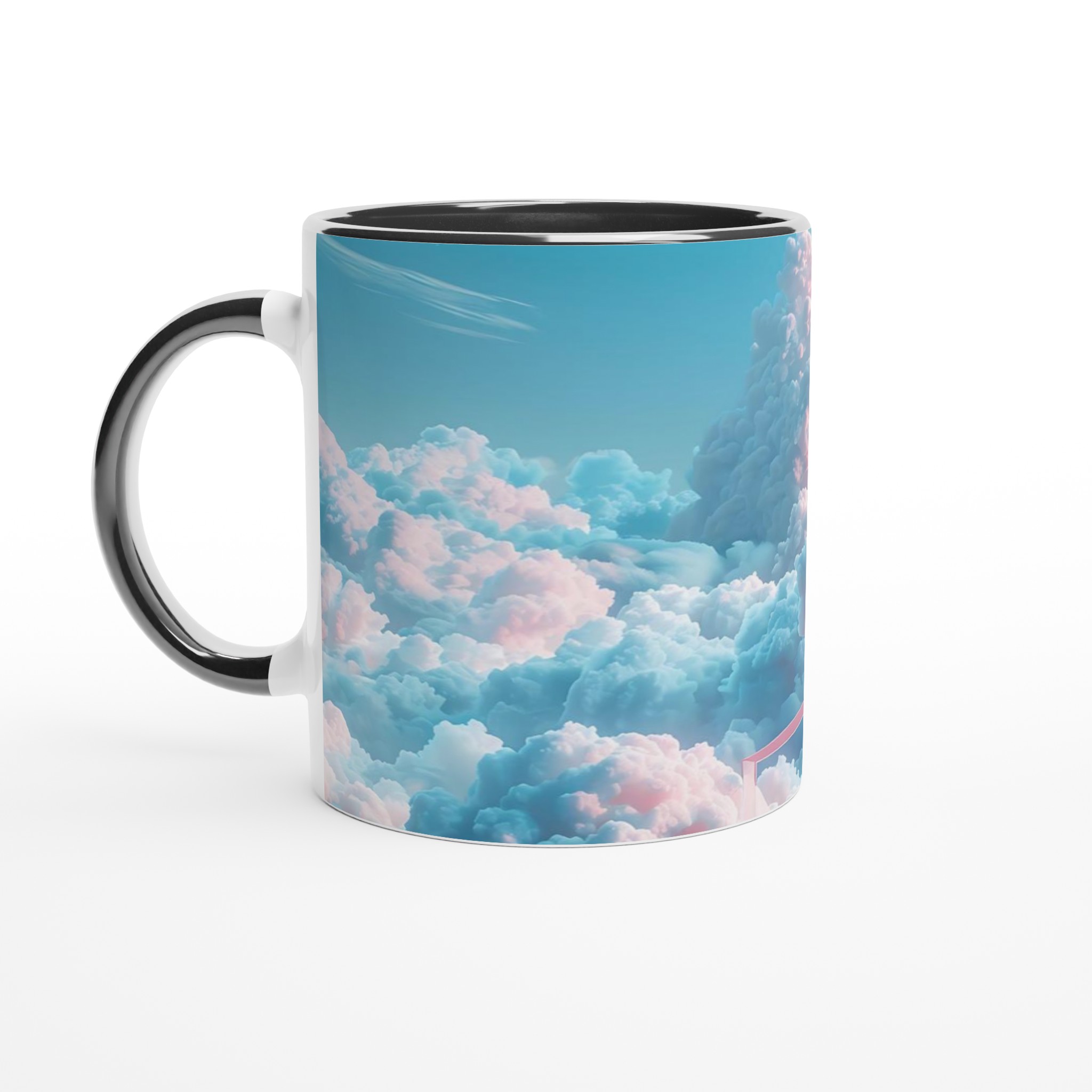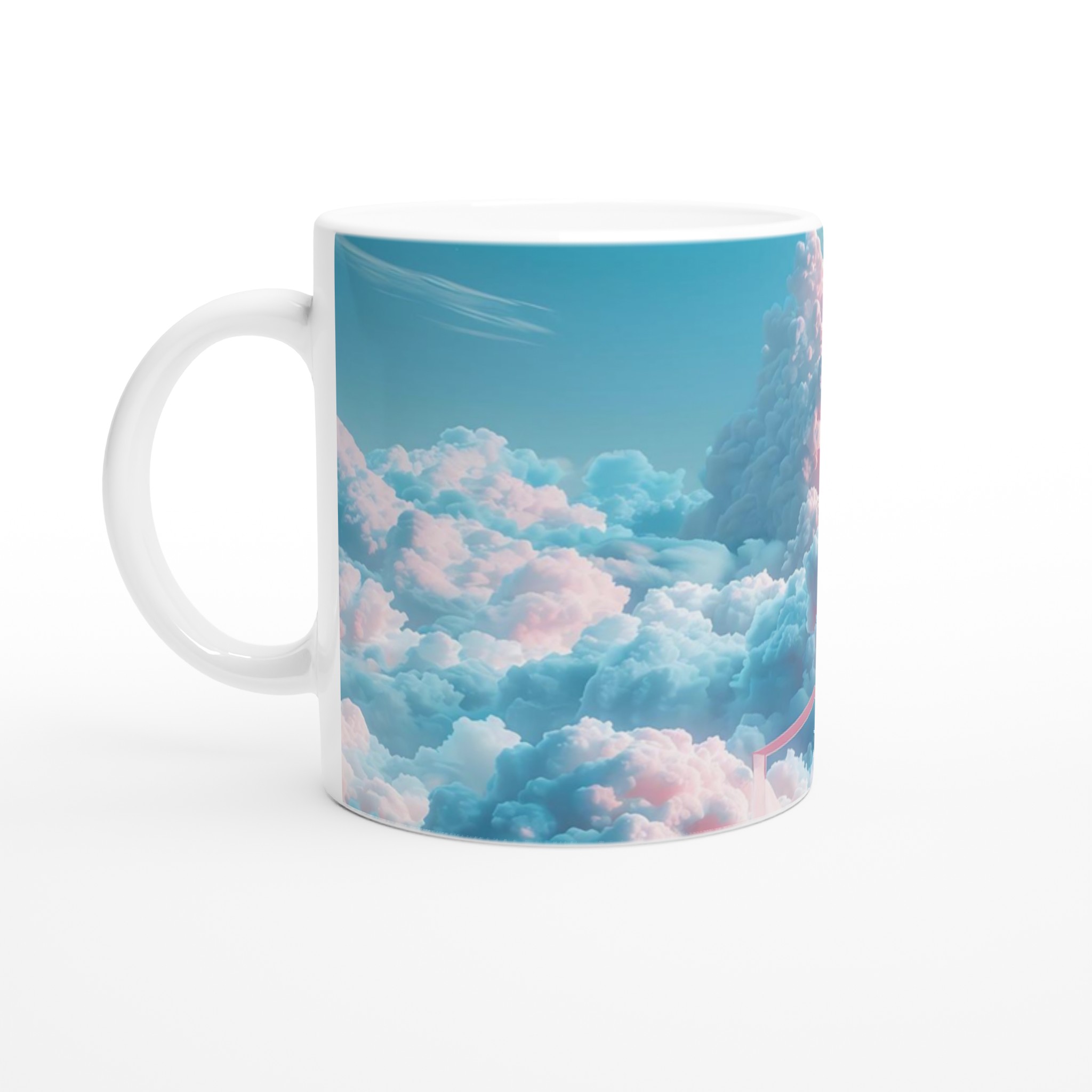 Svep in i en värld av fantasi varje gång du tar en klunk med denna drömska keramiska mugg. Inspirerad av bilden av ett pastellrosa slott som svävar bland fluffiga, sockervaddsfärgade moln, blir denna mugg snabbt en vardagsfavorit. Perfekt för morgonkaffet som en flykt till fantasin, kvällens varma choklad för en stunds avkoppling, eller när du bara vill njuta av en kopp te och drömma dig bort. Den blanka ytan får ditt tryck att framhävas med klara och levande färger, som håller sig fina även efter många turer i mikron och diskmaskinen.