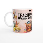 Fira världens mest tålmodiga hjältar med denna charmiga keramiska mugg, en färgglad hyllning till varje lärares otroliga engagemang och energi. Perfekt för morgonkaffet, kvällens varma choklad eller när du bara vill njuta av en kopp te. Den blanka vita ytan framhäver det lekfulla trycket med klara och levande färger, som håller sig fina även efter många turer i mikron och diskmaskinen.