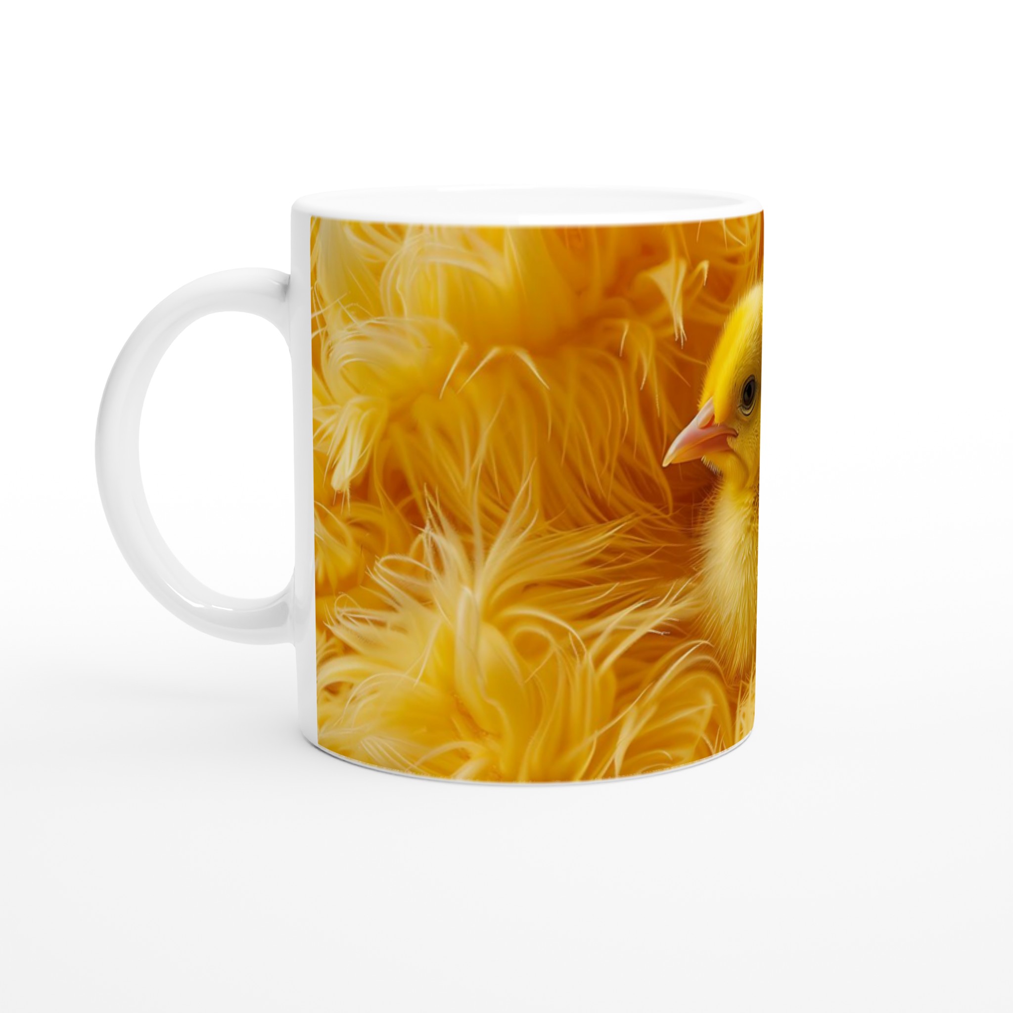 Inspirerad av den bedårande värmen från en liten kyckling som myser i mjuka fjädrar, kommer denna mugg att fylla varje ögonblick med glädje. Den blanka vita ytan ger ett skarpt och levande tryck som verkligen sticker ut, oavsett om det är en personlig design, ett roligt citat eller en present till någon du tycker om.