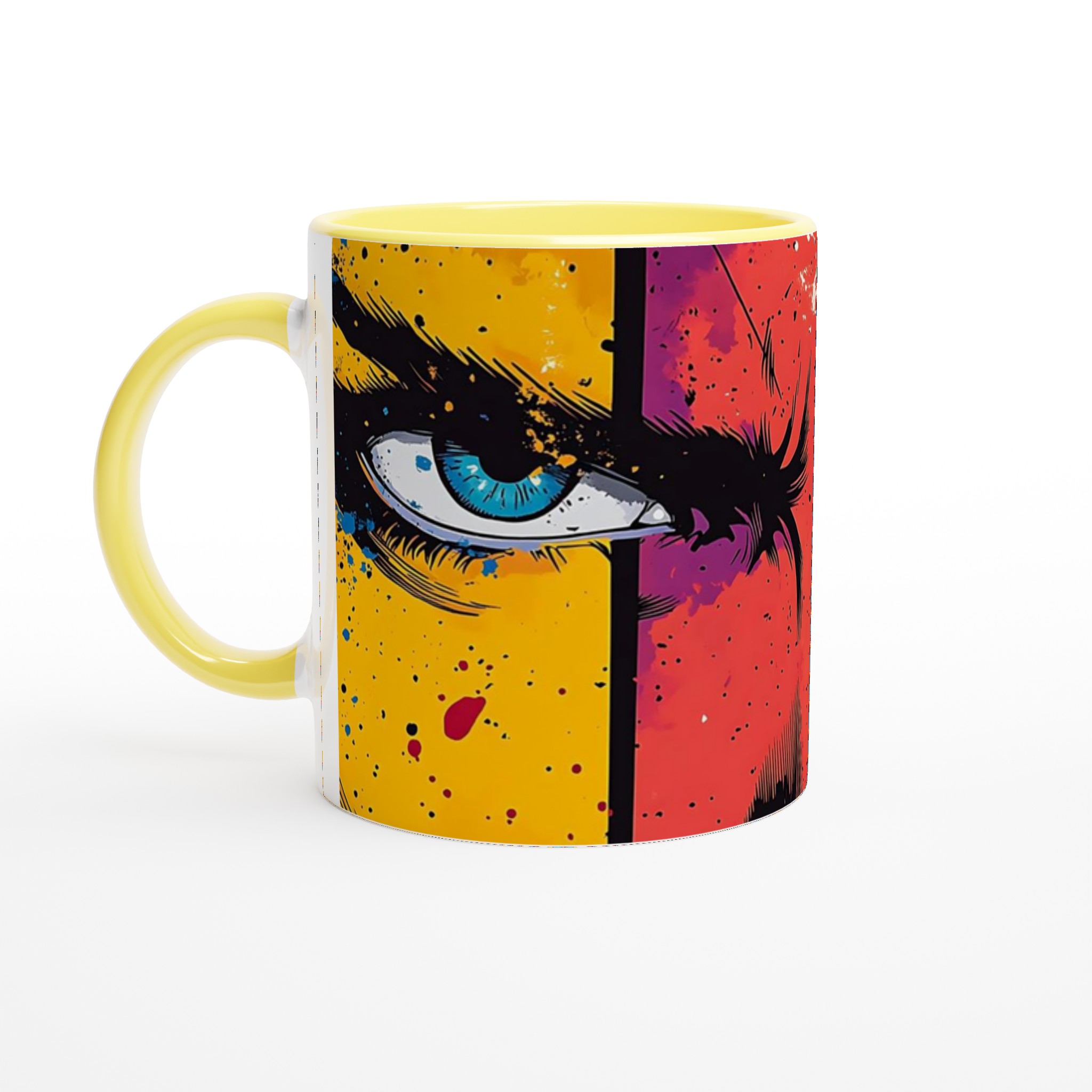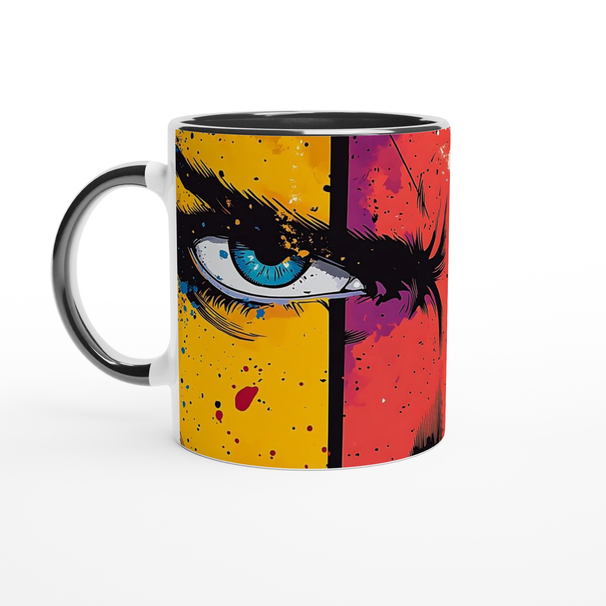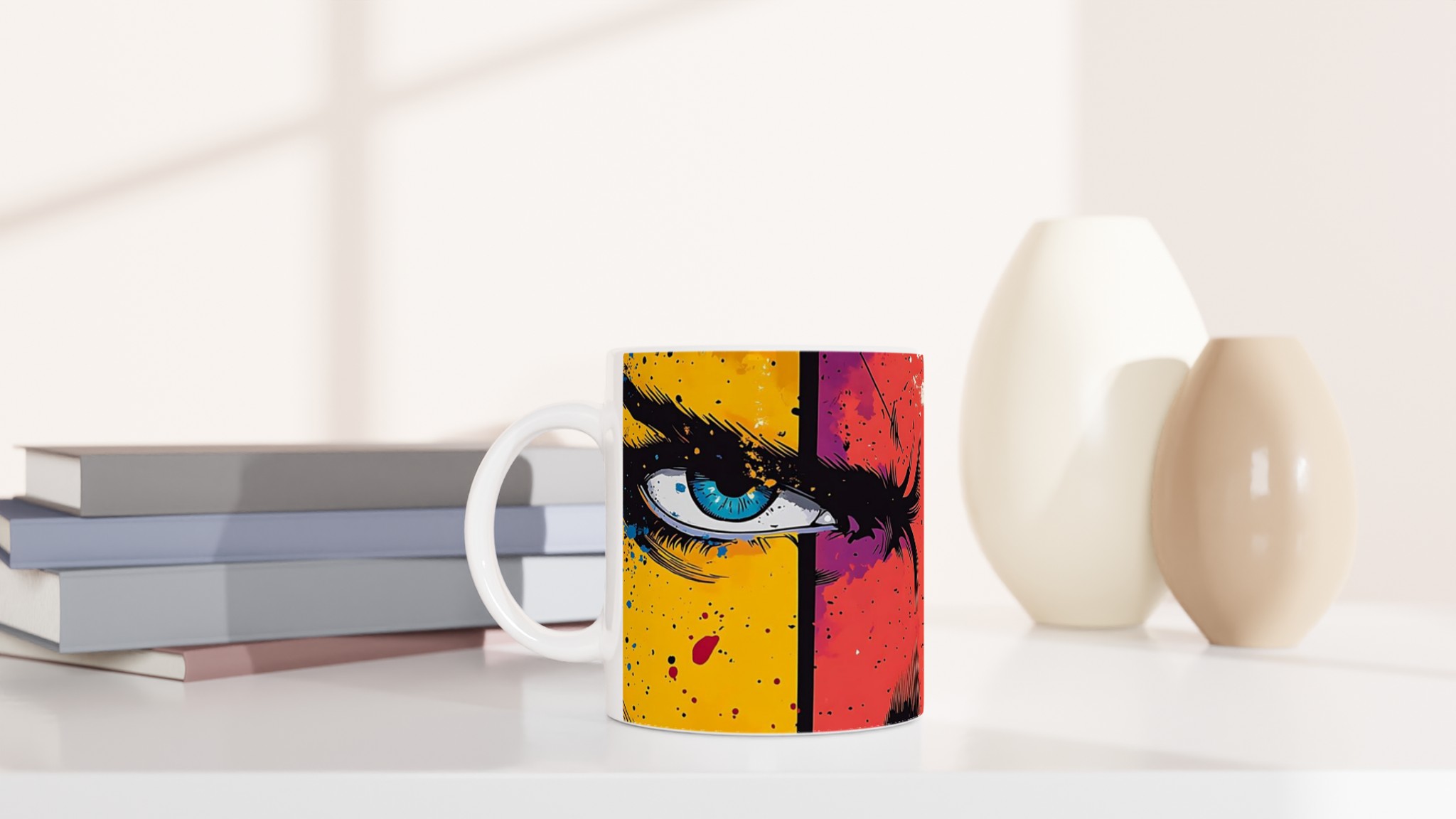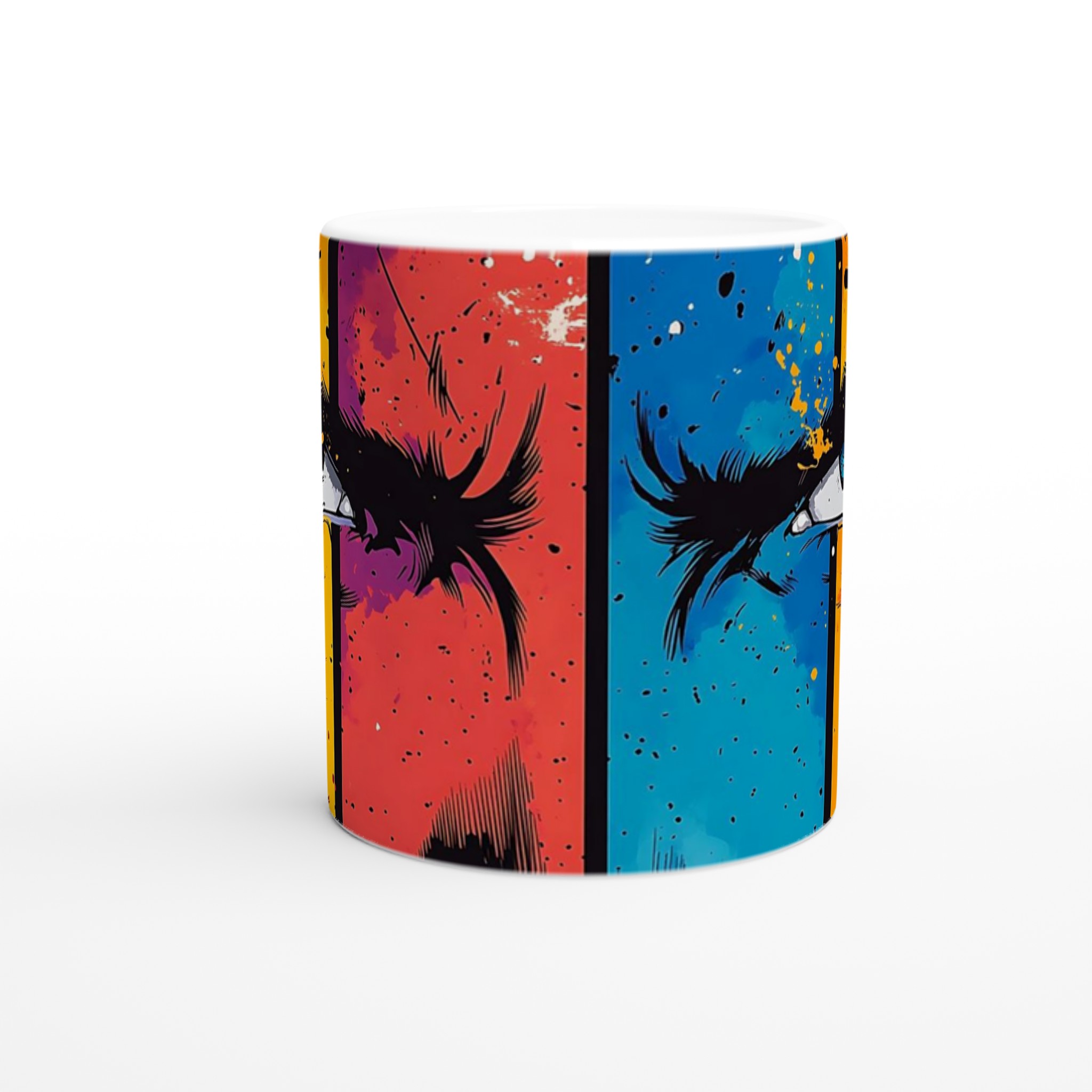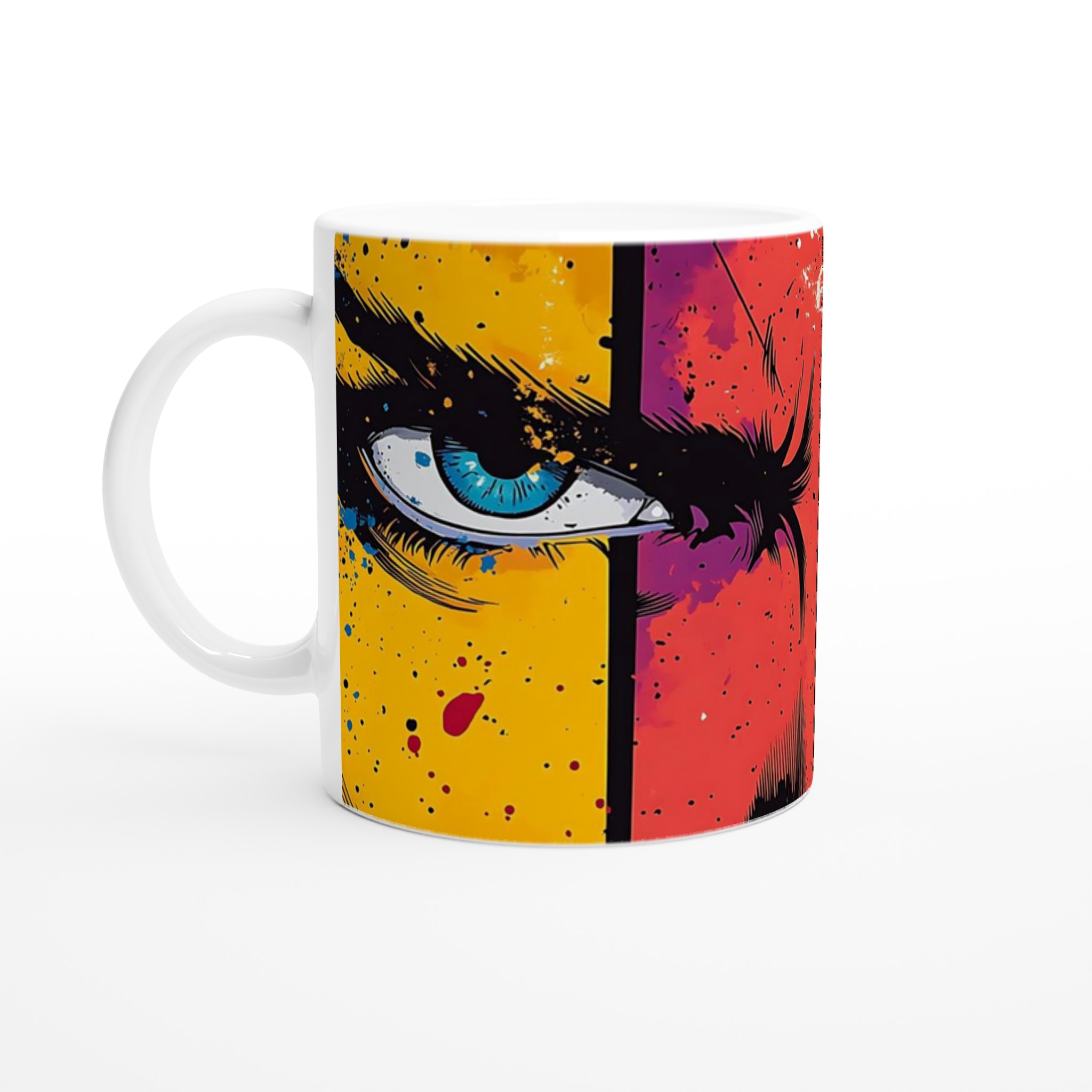 Inspirerad av den dynamiska energin från popkonst och seriekonstens råa uttryck, är denna mugg en hyllning till djärva färger och orädd individualitet. Den blanka vita ytan ger ett skarpt och levande tryck som verkligen sticker ut, oavsett om det är en personlig design, ett roligt citat eller en present till någon du tycker om.