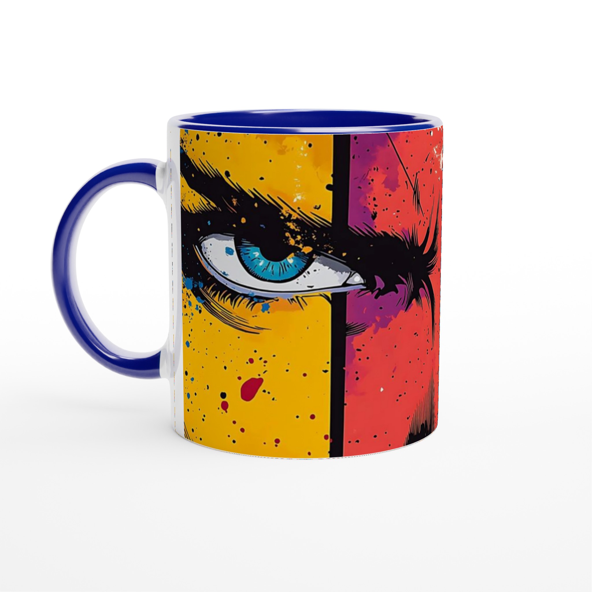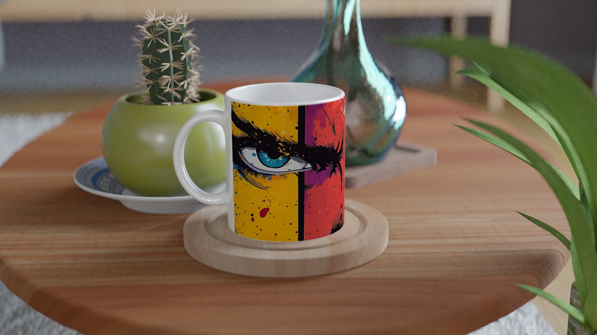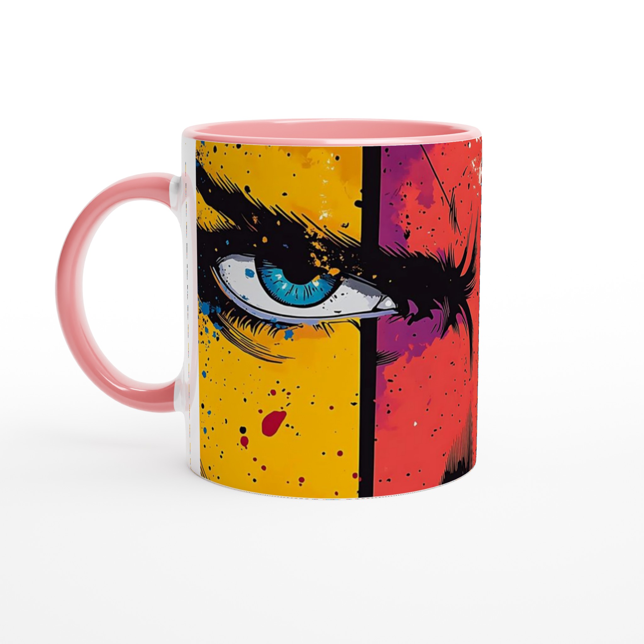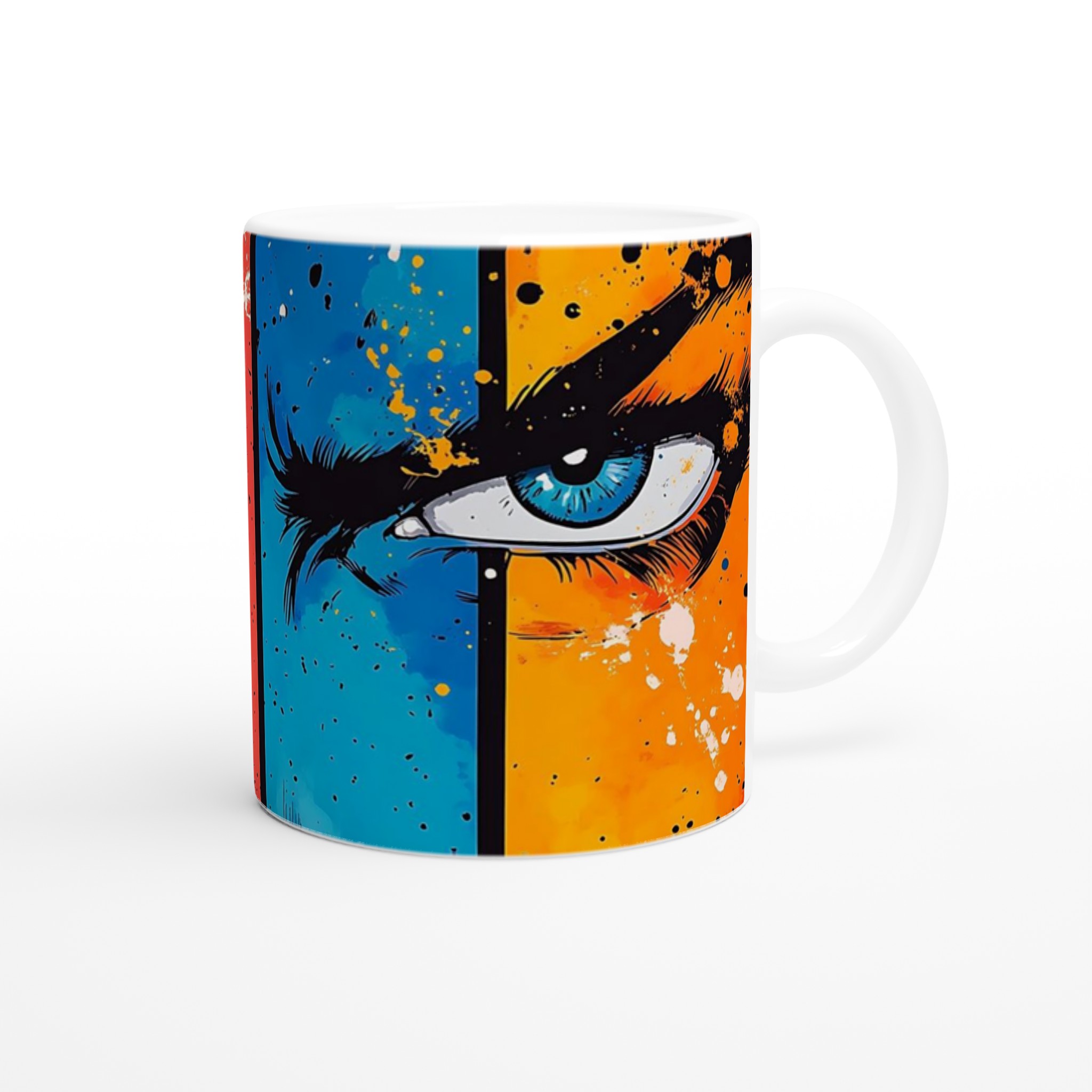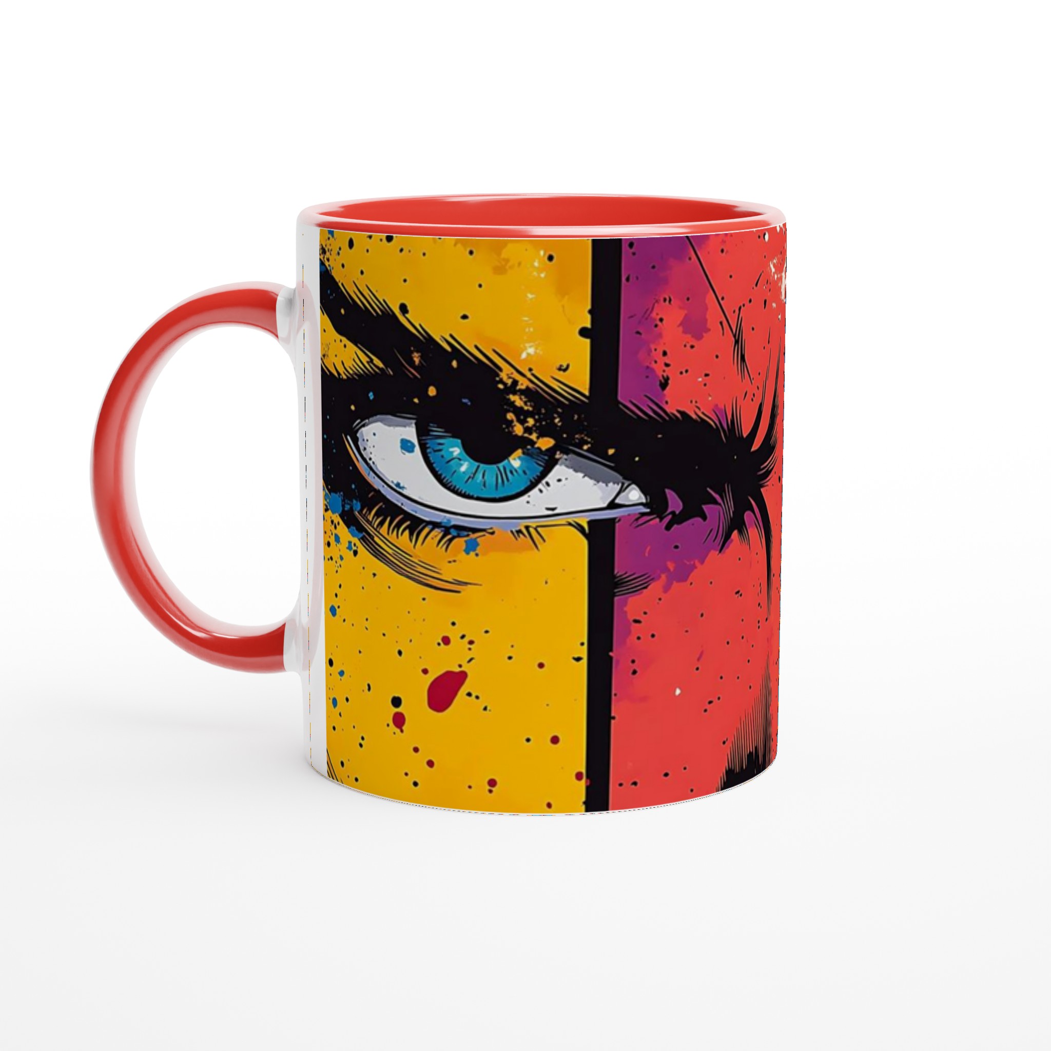 Inspirerad av den dynamiska energin från popkonst och seriekonstens råa uttryck, är denna mugg en hyllning till djärva färger och orädd individualitet. Den blanka vita ytan ger ett skarpt och levande tryck som verkligen sticker ut, oavsett om det är en personlig design, ett roligt citat eller en present till någon du tycker om.