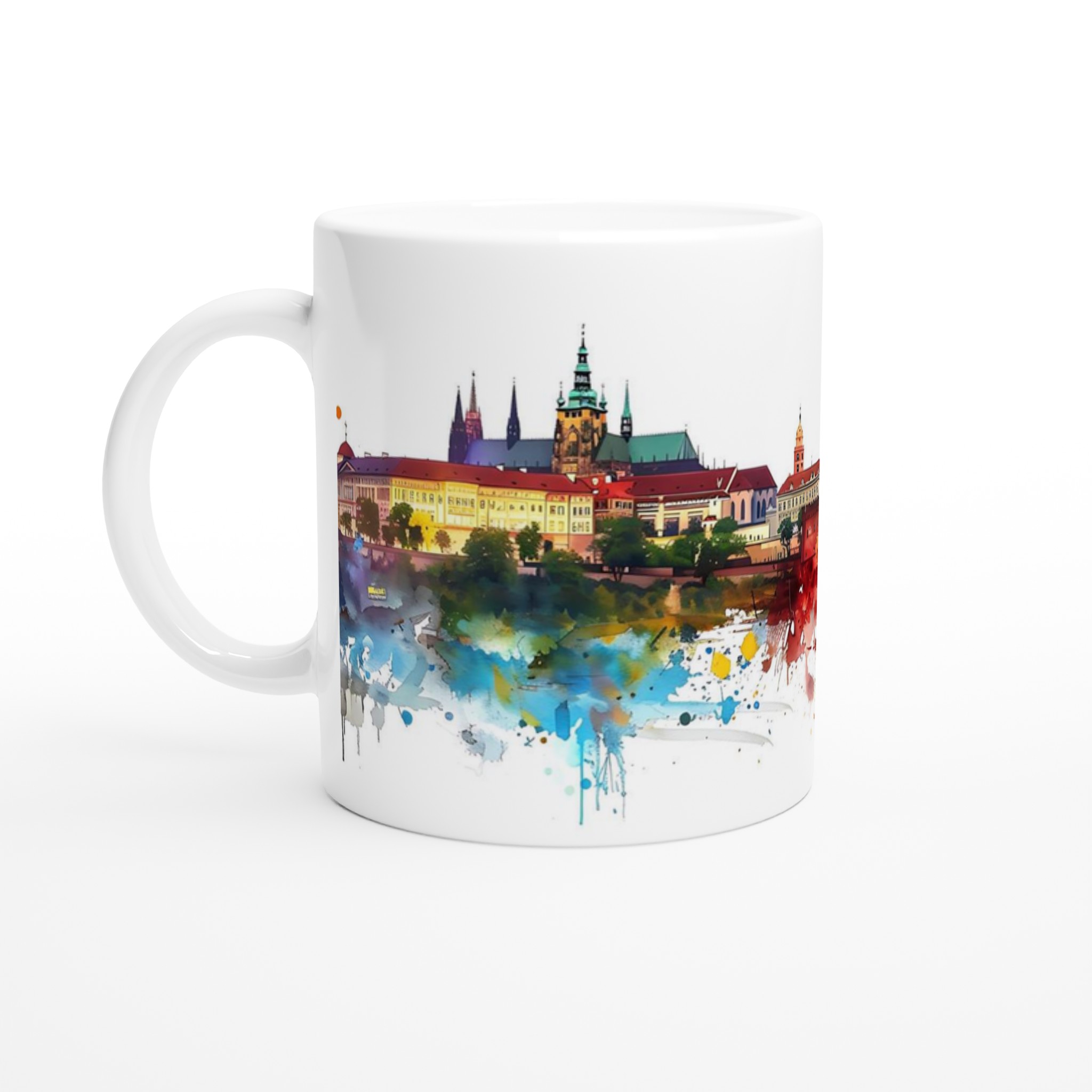 Prag Skyline Akvarellmugg – Levande Stadsmotiv på 11 oz Keramikmugg