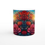 Väck dina sinnen med denna unika keramiska mugg, prydd med ett hypnotiskt och färgstarkt solrosmotiv som tar dig med till en annan dimension. Perfekt för alla som älskar psykedelisk konst och vill injicera lite extra magi i sin vardag – vare sig det är med morgonkaffet, en värmande kopp te eller en härlig varm choklad. De vibrerande färgerna och det intrikata mönstret framträder klart och tydligt på den blanka vita ytan, vilket gör muggen till en riktig favorit och en konversationsstartare.