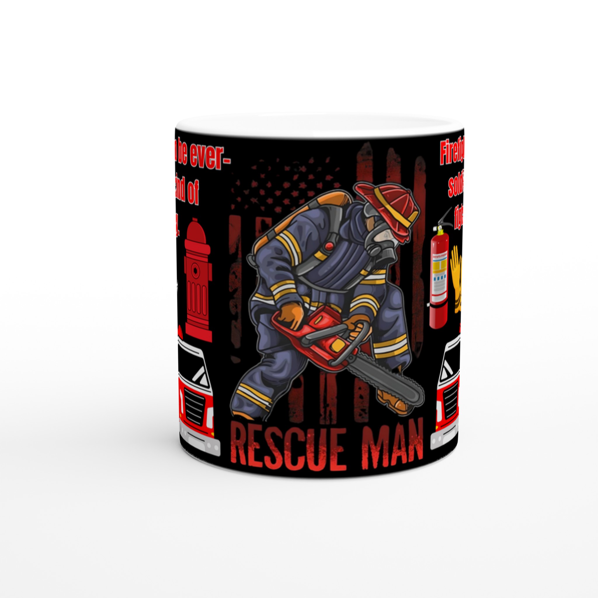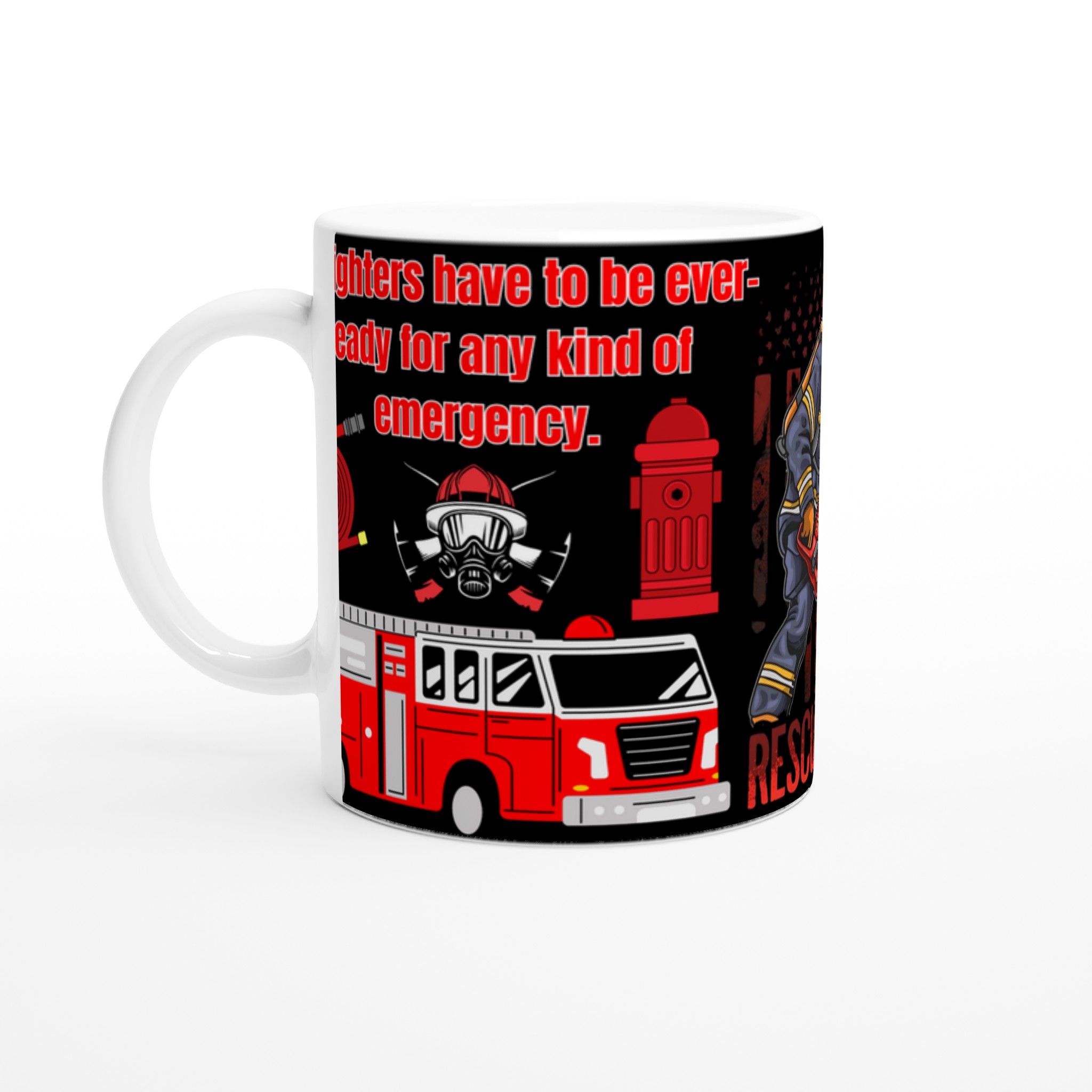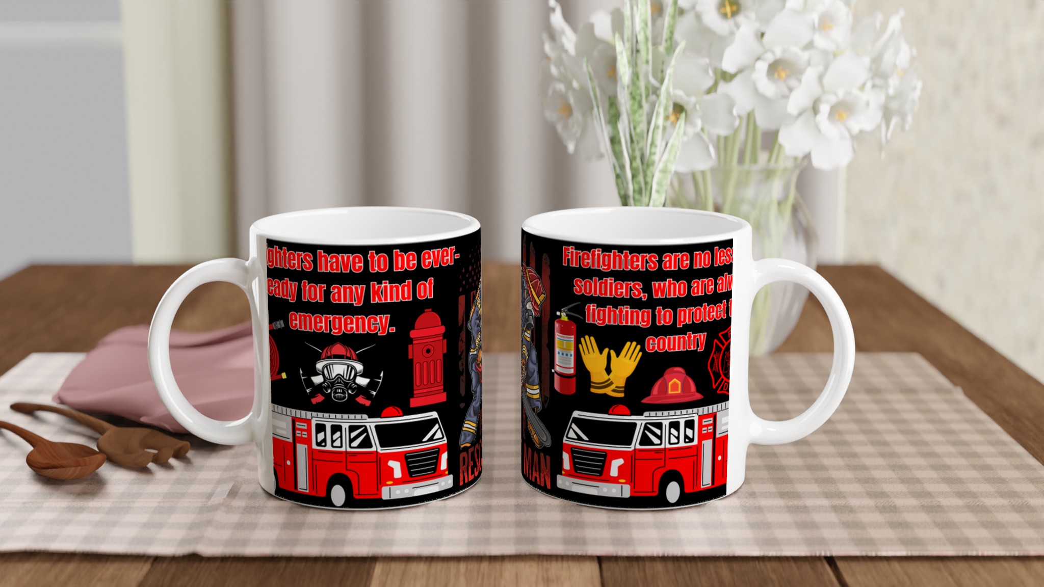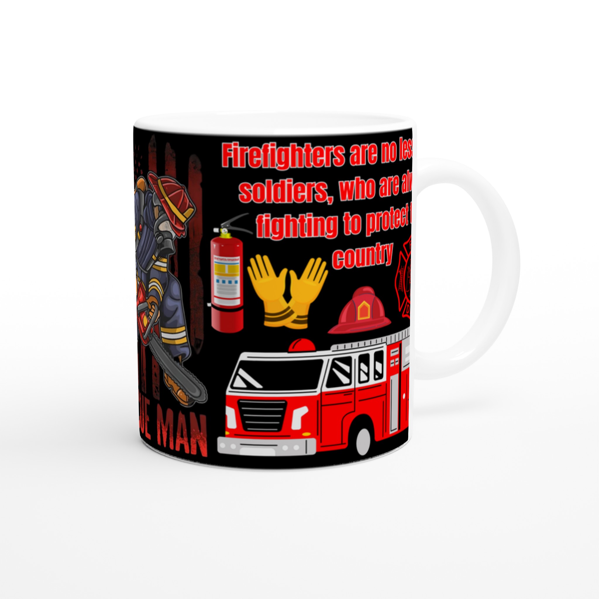 Lyft din morgonrutin eller fira de modiga räddningsmännen med denna inspirerande keramiska mugg. Perfekt för morgonkaffet, kvällens varma choklad eller när du bara vill njuta av en kopp te, den här muggen är en daglig påminnelse om tapperhet och engagemang. Den blanka ytan får det detaljerade brandmansmotivet och de kraftfulla budskapen att framhävas med klara och levande färger, som håller sig fina även efter många turer i mikron och diskmaskinen.