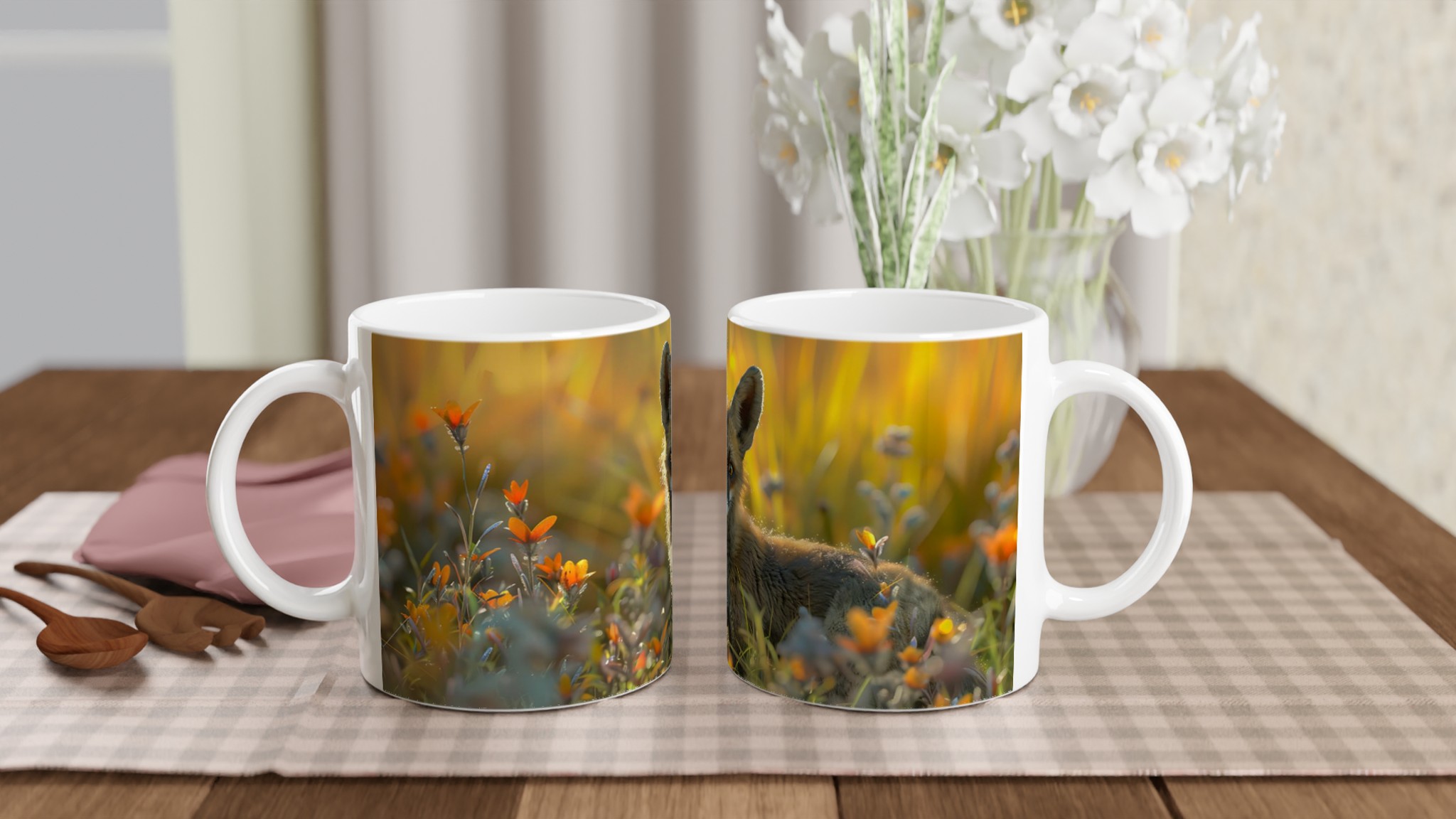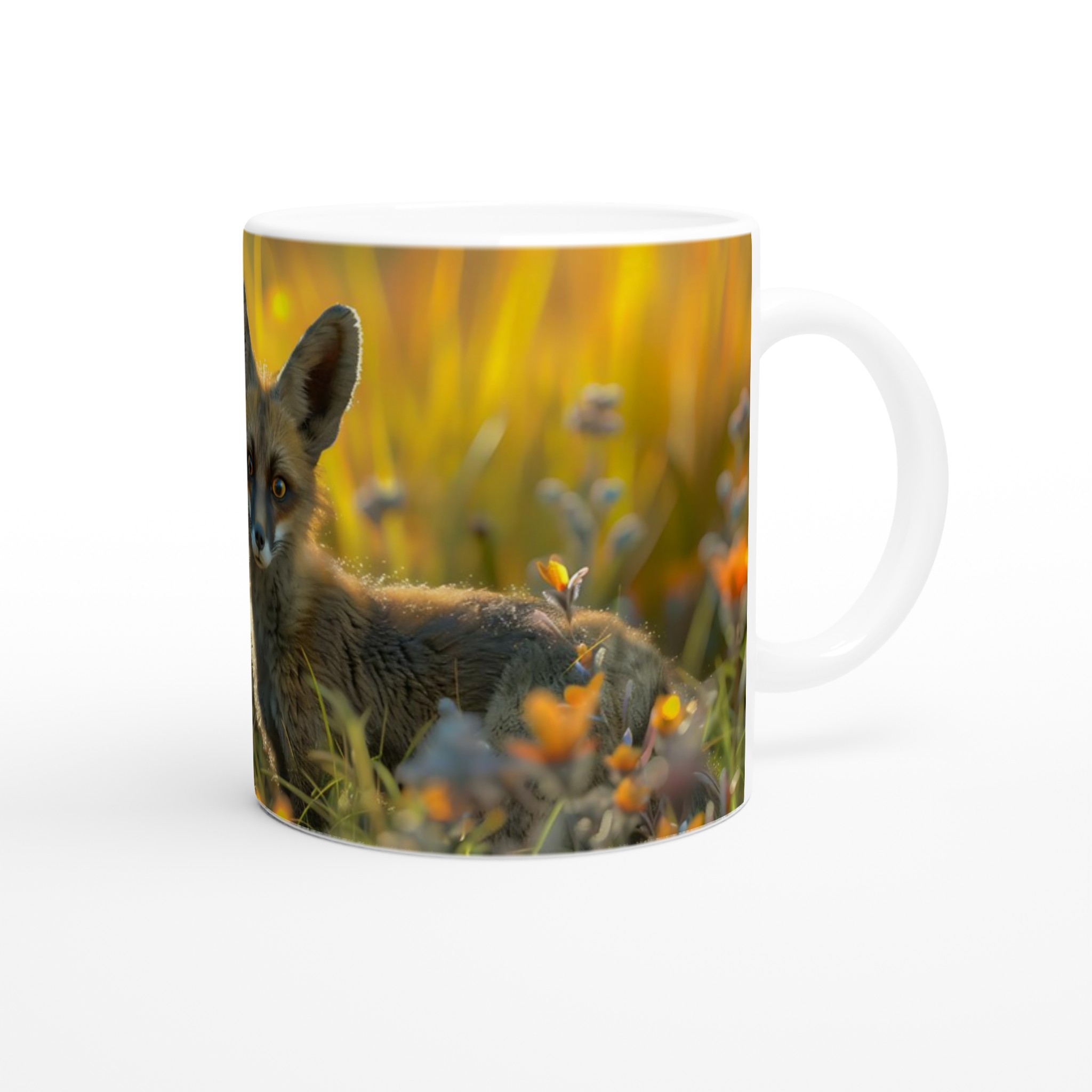 Den blanka vita ytan framhäver trycket med klara och levande färger, där rävungens nyfikna blick och solnedgångens varma toner verkligen kommer till liv. Muggen tål både mikro och diskmaskin, vilket garanterar att den håller sig vacker även efter många användningar. Välj din favorit bland sju livfulla färger som ”Ceramic White” och ”Ceramic Blue” för att matcha din personliga stil eller din inredning.