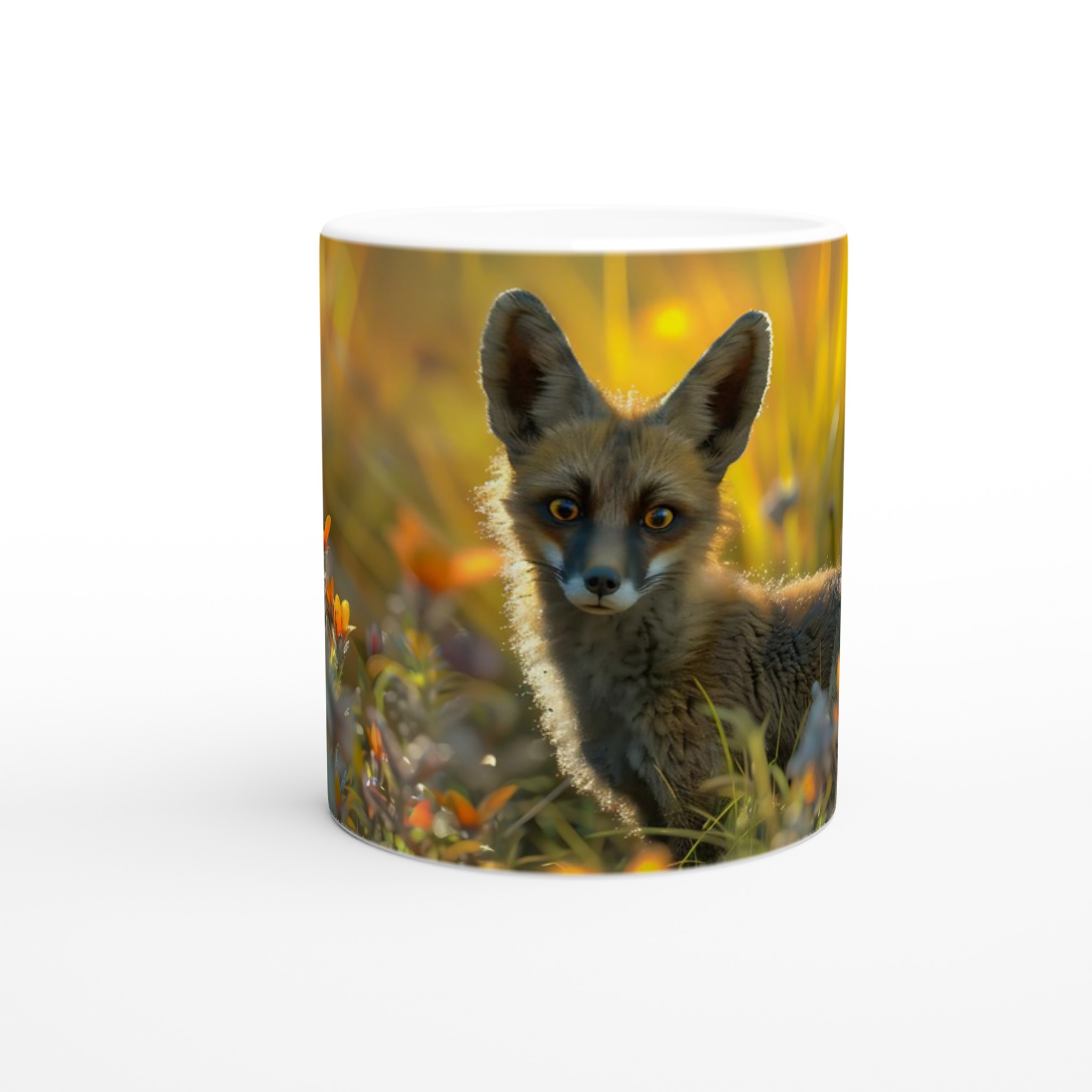 Fånga magin från naturen med denna förtrollande keramiska mugg, prydd med en bedårande rävunge badande i solnedgångens varma, gyllene sken. Denna mugg är inte bara en vardagsfavorit; den är en liten bit konst som lyser upp din dag. Perfekt för morgonkaffet, kvällens varma choklad eller när du bara vill njuta av en kopp te medan du drömmer dig bort till en stilla skogsglänta.