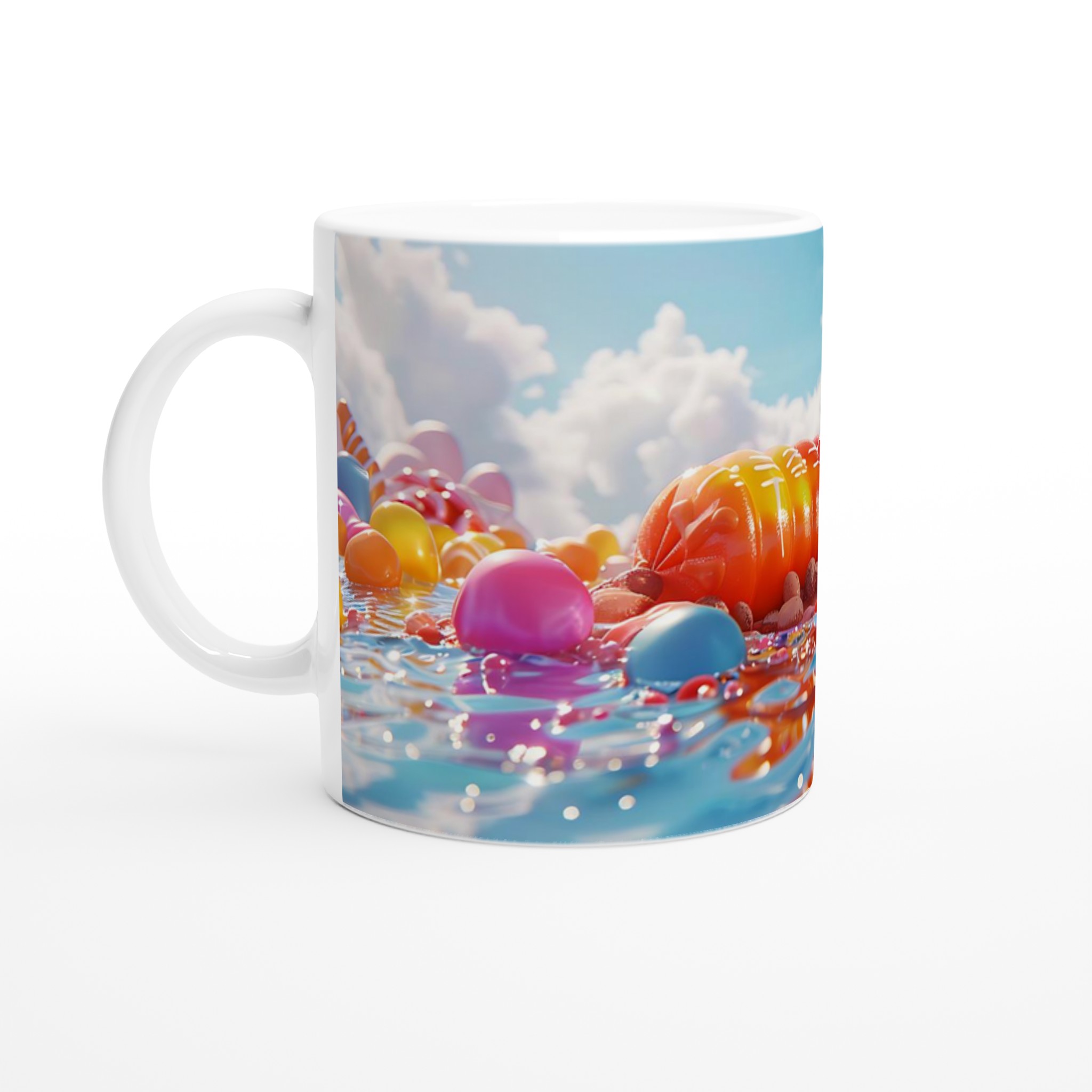 Lyft varje kaffestund med vår premium keramikmugg – stilren, hållbar och skapad för att låta ditt motiv glänsa. Inspirerad av fantasins godislandskap, där varje nyans berättar en historia och varje kurva lockar fram ett leende, är denna mugg den perfekta duken för din kreativitet. Den blanka vita ytan ger ett skarpt och levande tryck som verkligen sticker ut, oavsett om det är en personlig design, ett roligt citat eller en present till någon du tycker om.