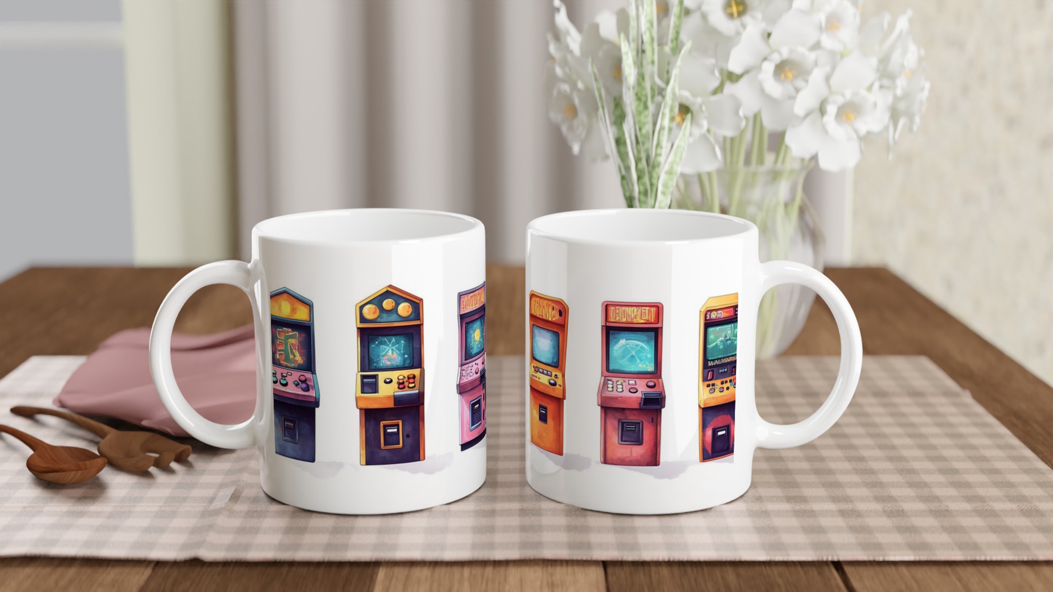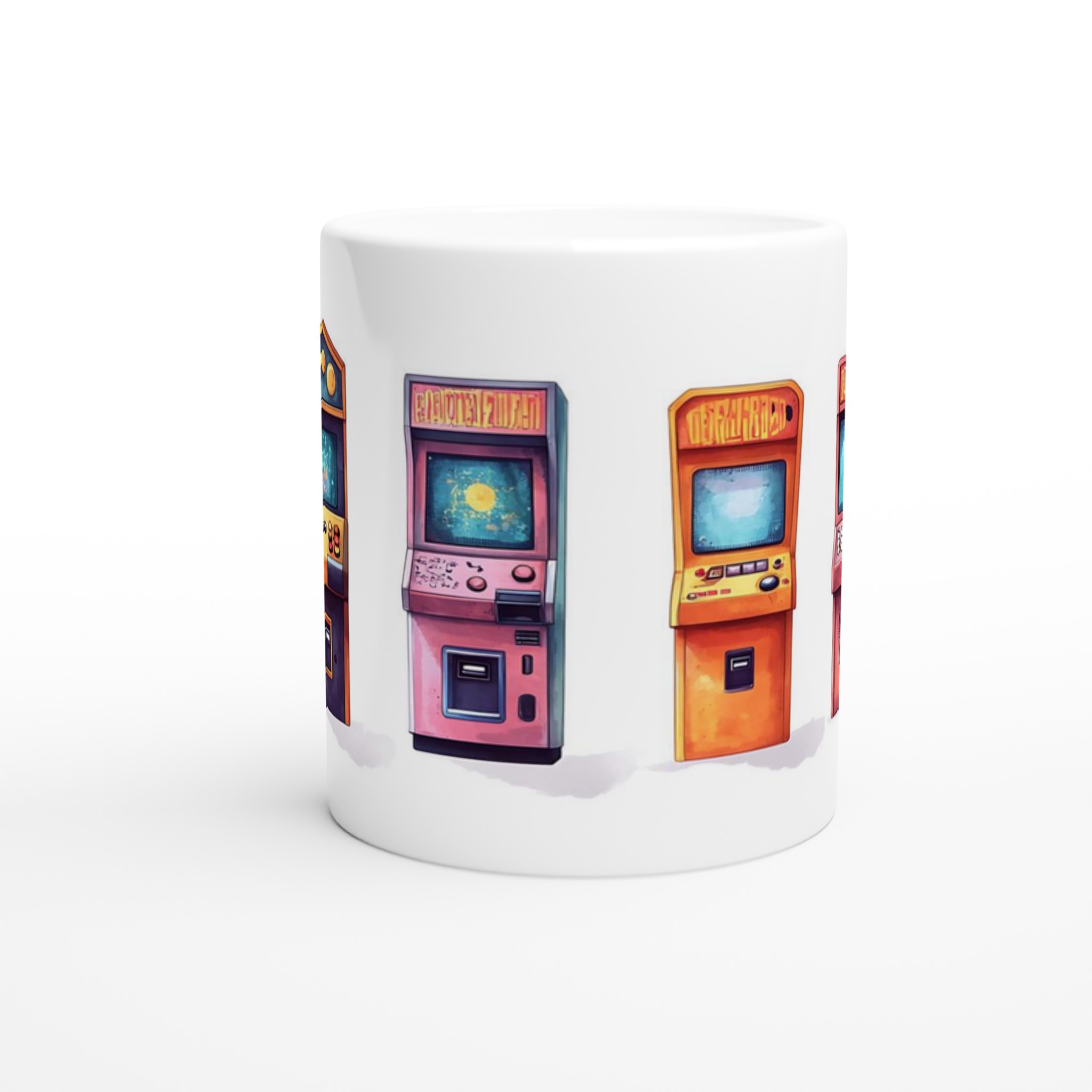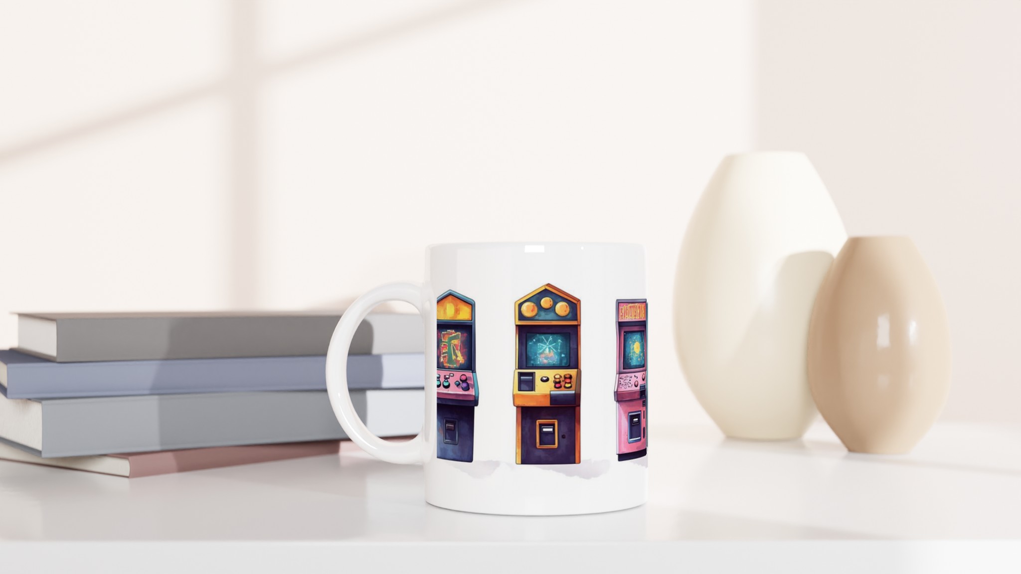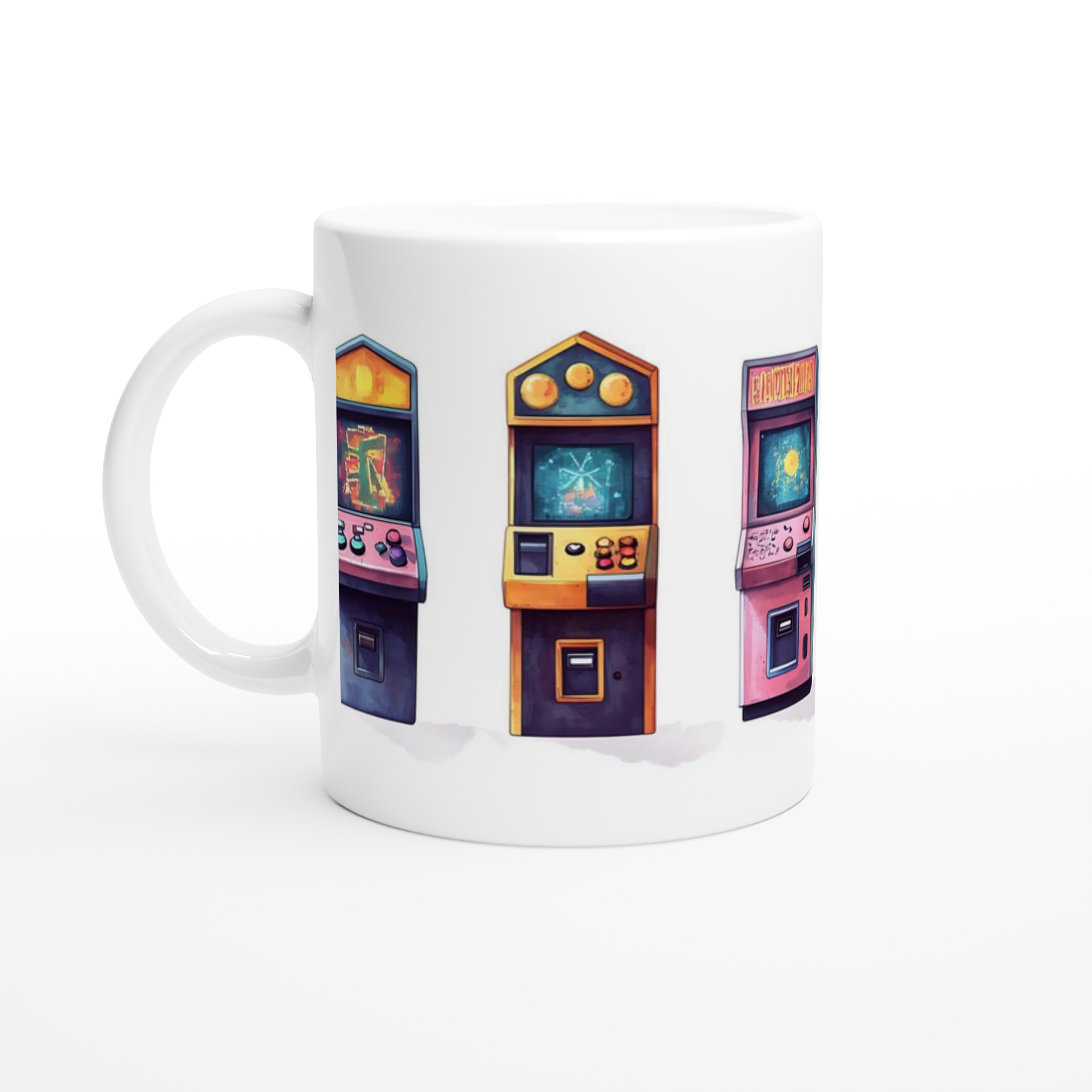 Retro Arcade Gamer Mugg – 11oz Keramisk Mugg med Vintage Arkadmaskiner i ditt färgval