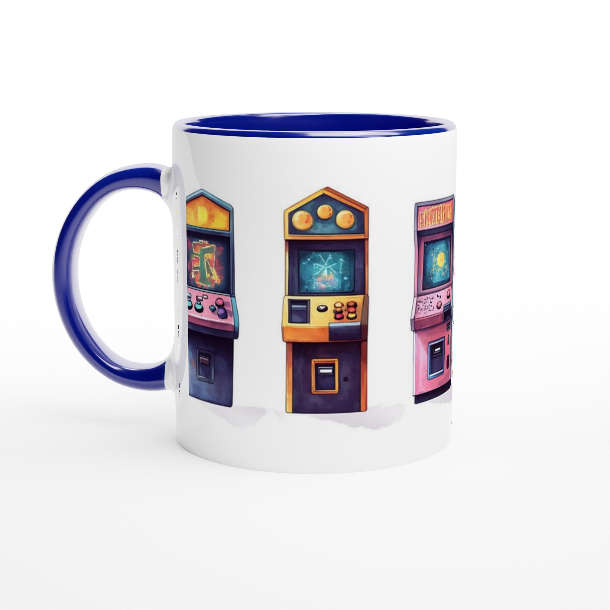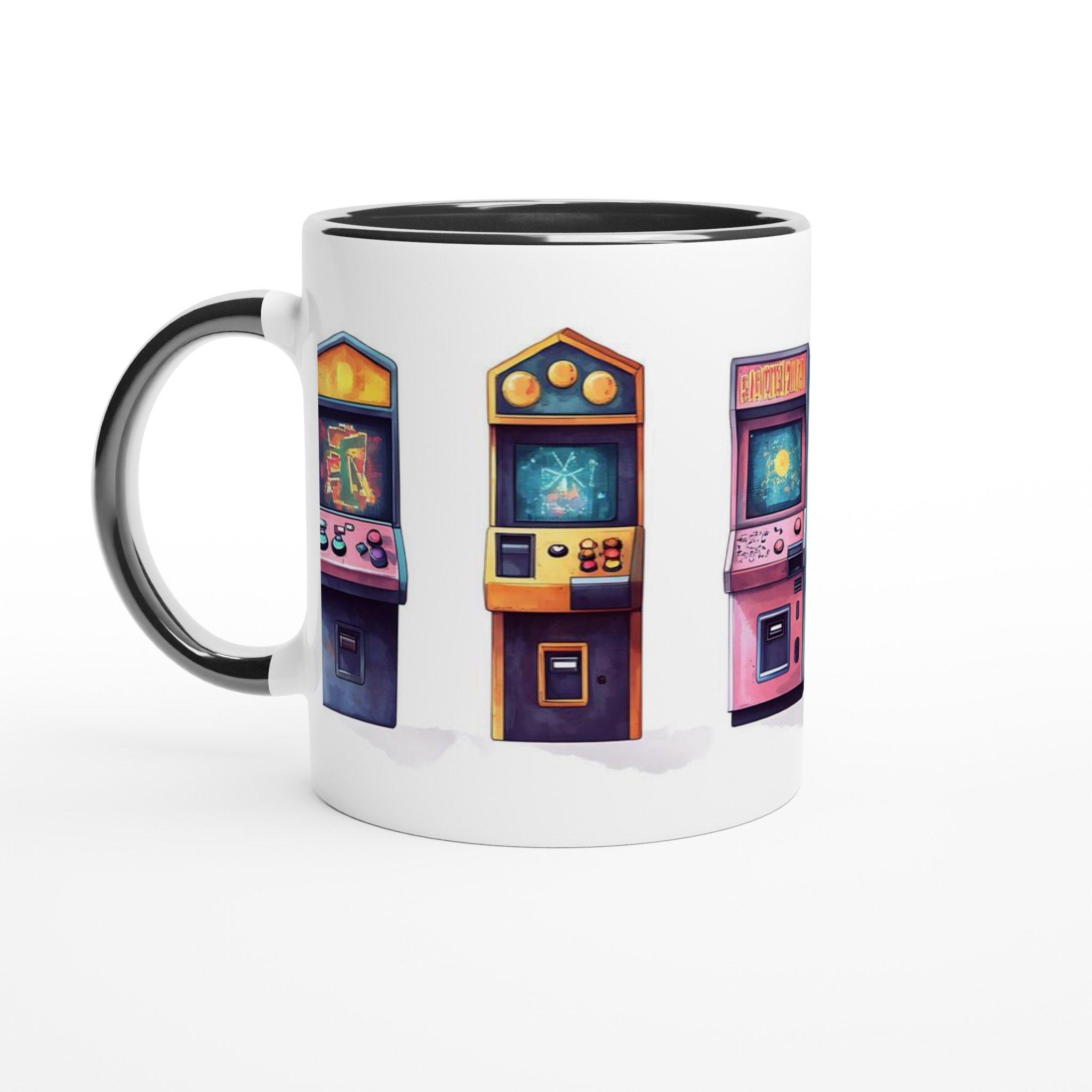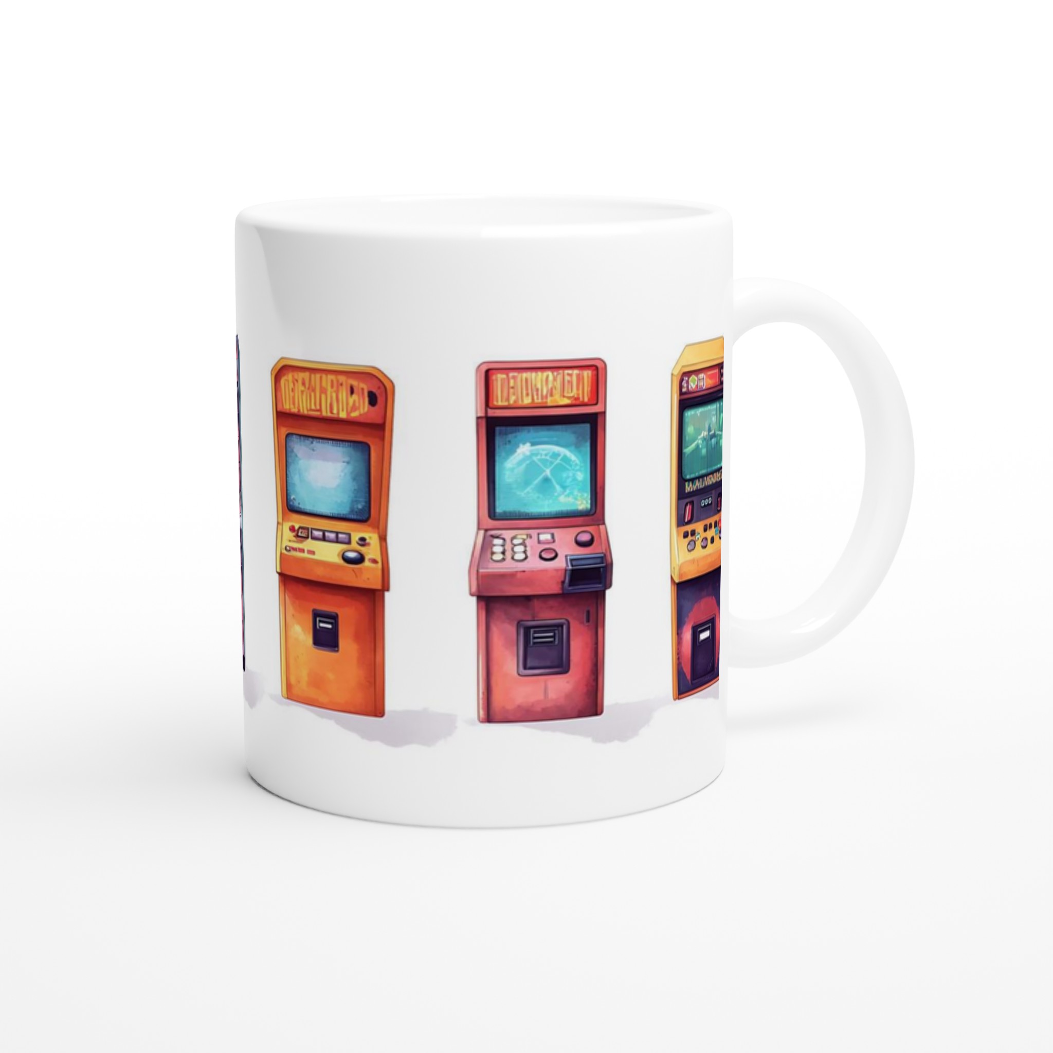 Retro Arcade Gamer Mugg – 11oz Keramisk Mugg med Vintage Arkadmaskiner i ditt färgval