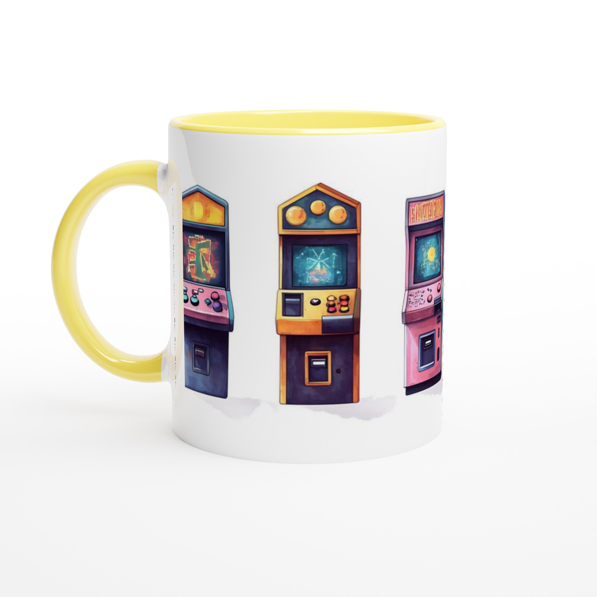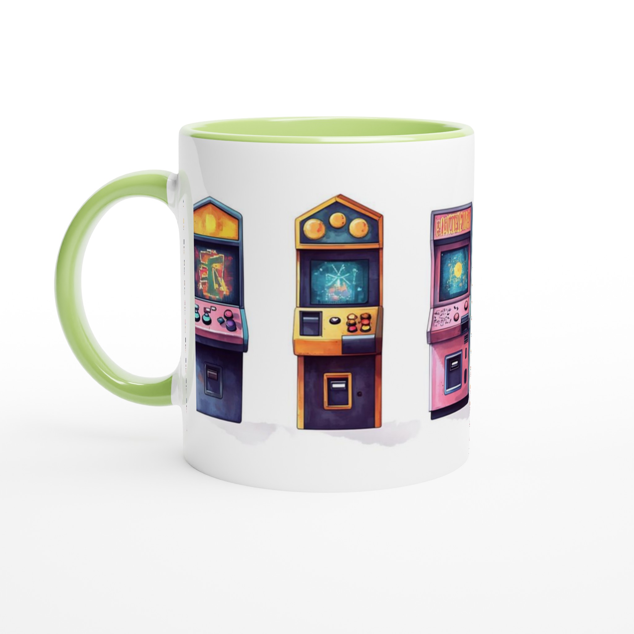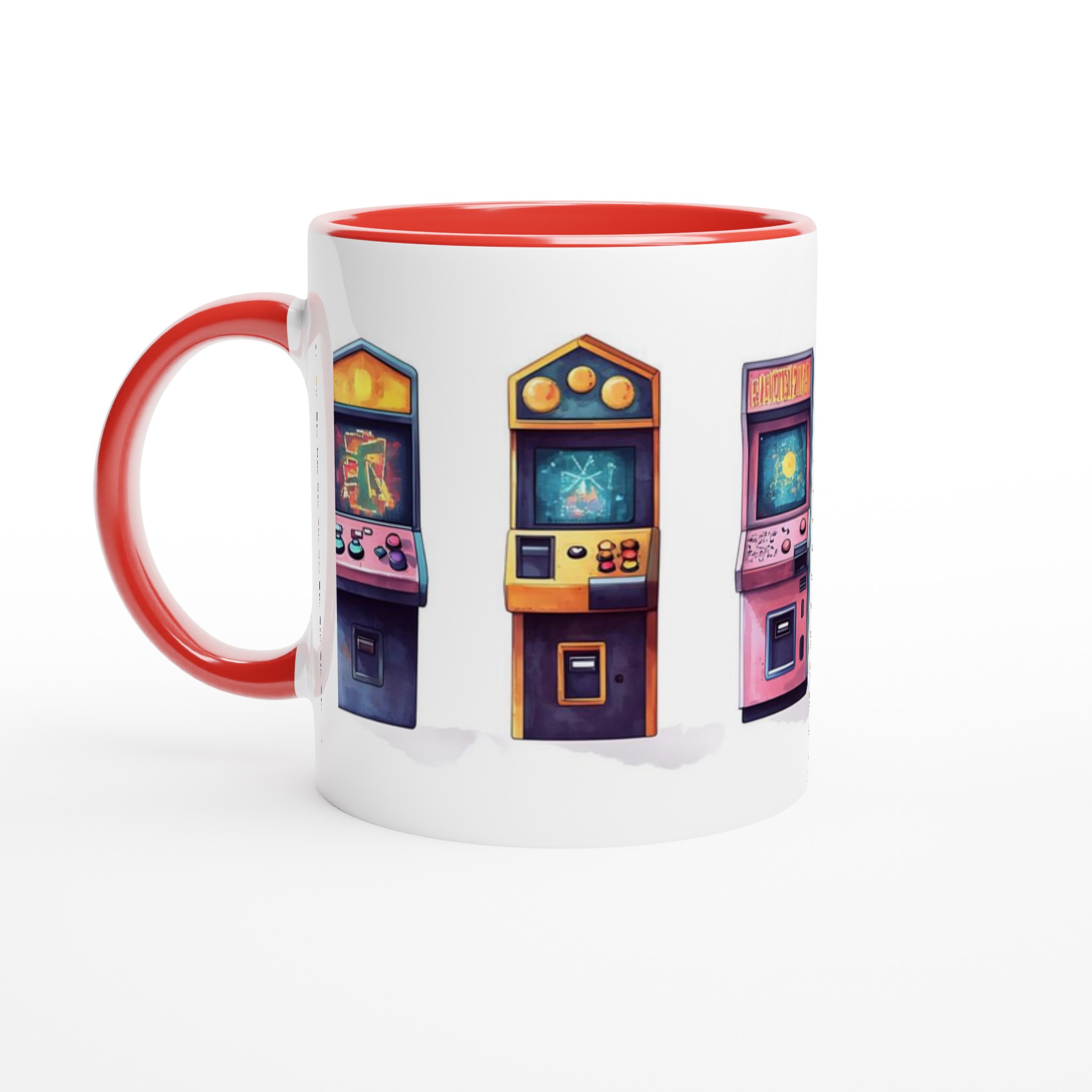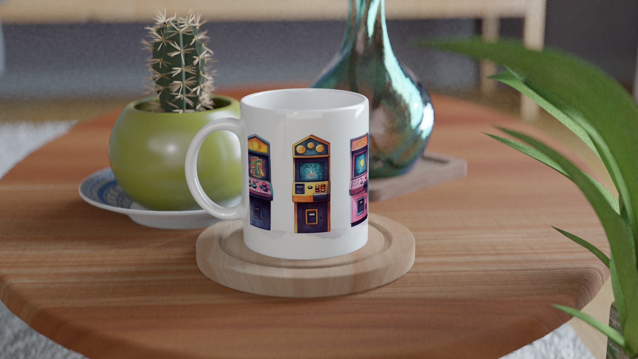 Retro Arcade Gamer Mugg – 11oz Keramisk Mugg med Vintage Arkadmaskiner i ditt färgval