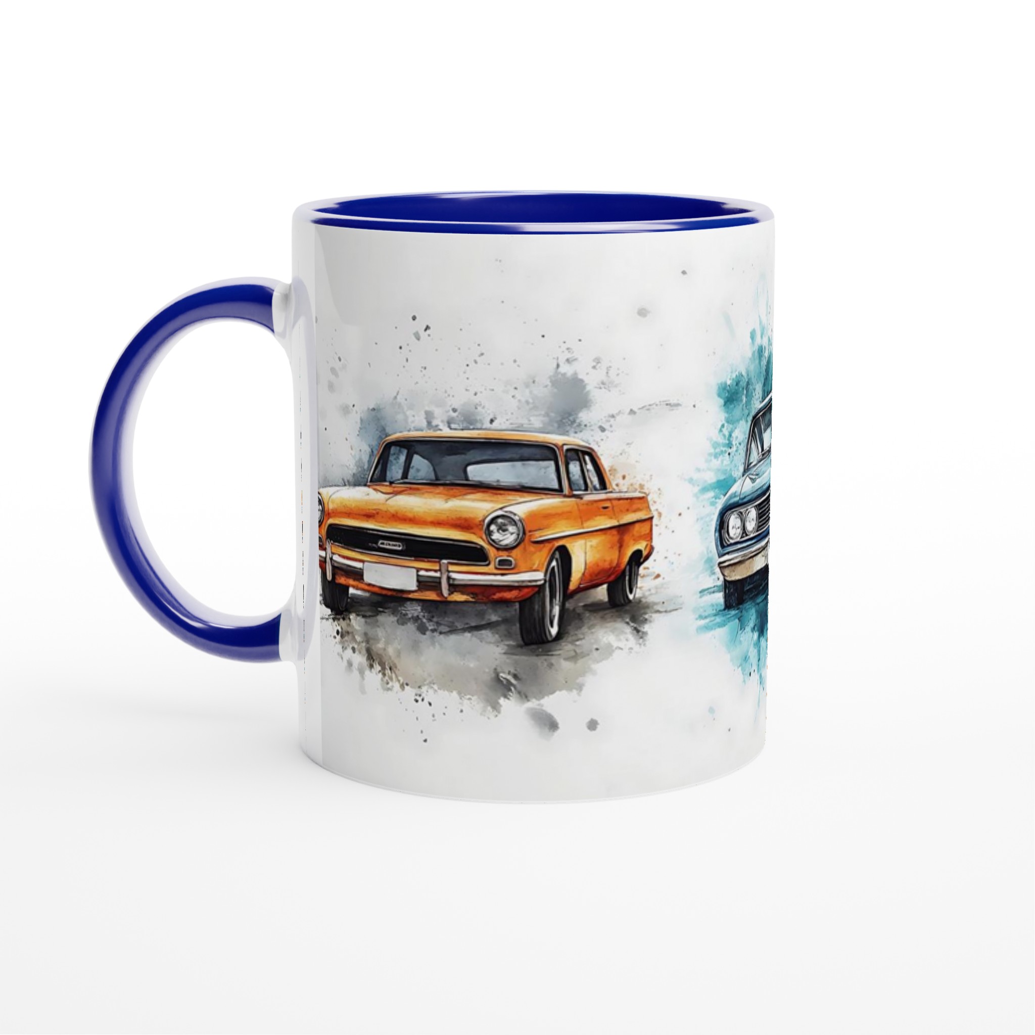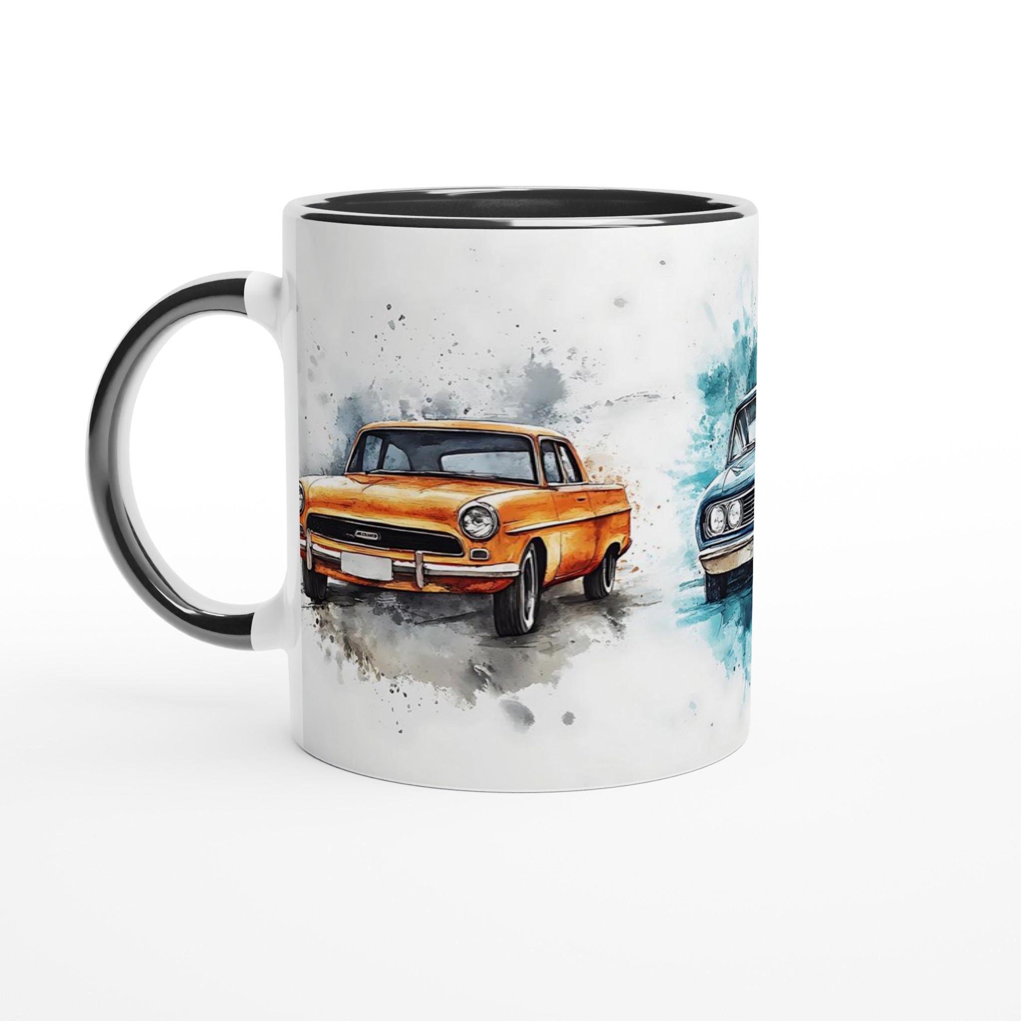 Fånga känslan av nostalgi med vår unika keramikmugg, prydd med livfulla akvarellkonstverk av klassiska bilar. Varje klunk blir en resa tillbaka till en tid av ikonisk design och äventyr. Denna mugg blir snabbt en vardagsfavorit, perfekt för morgonkaffet när du dagdrömmer om öppna vägar, kvällens varma choklad efter en lång körning eller när du bara vill njuta av en kopp te medan du beundrar det konstnärliga motivet.