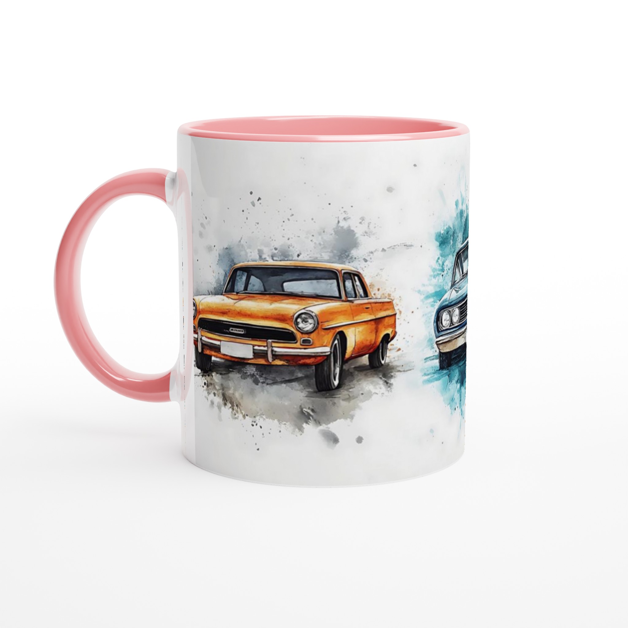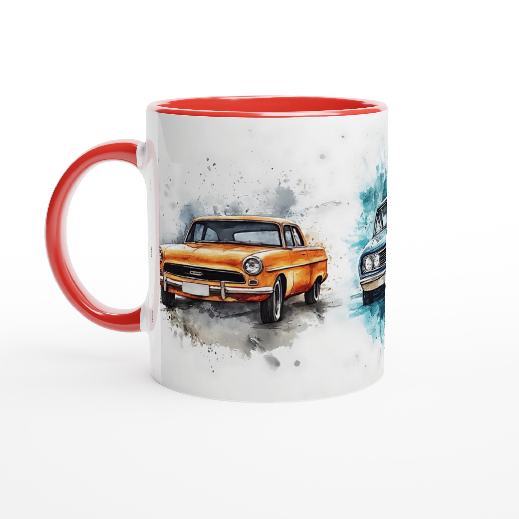 Den blanka vita ytan gör att trycken framhävs med klara och levande färger, som håller sig fina även efter många turer i mikron och diskmaskinen. Välj din favoritfärg för att verkligen få akvarellmålningen att poppa – oavsett om du föredrar att matcha bilens lack eller skapa en kontrast. Denna mugg är inte bara praktisk – den är också en uppskattad present till bilentusiaster, konstälskare eller kollegor som uppskattar en touch av retrocharm. En enkel men personlig gåva som alltid kommer till användning.