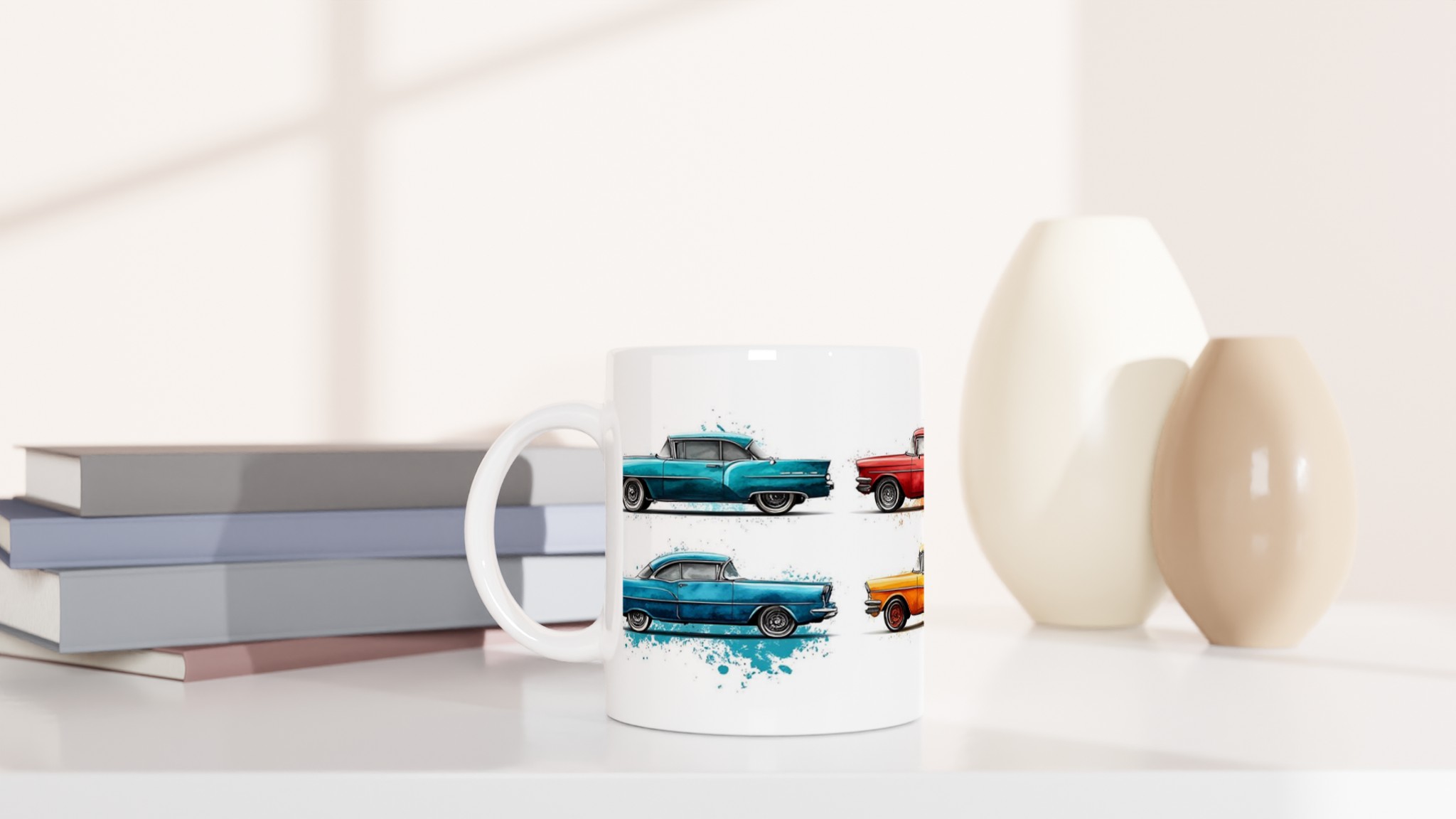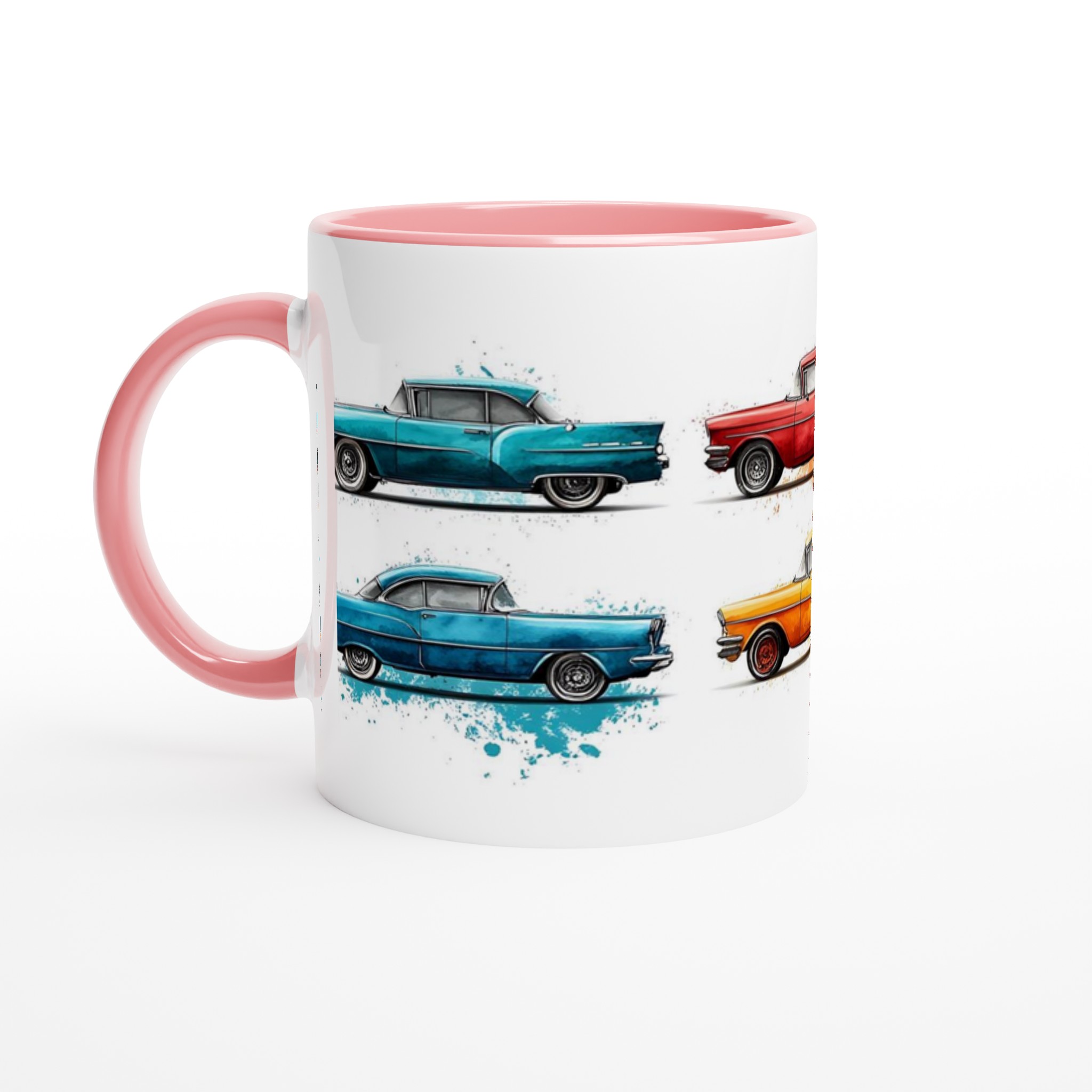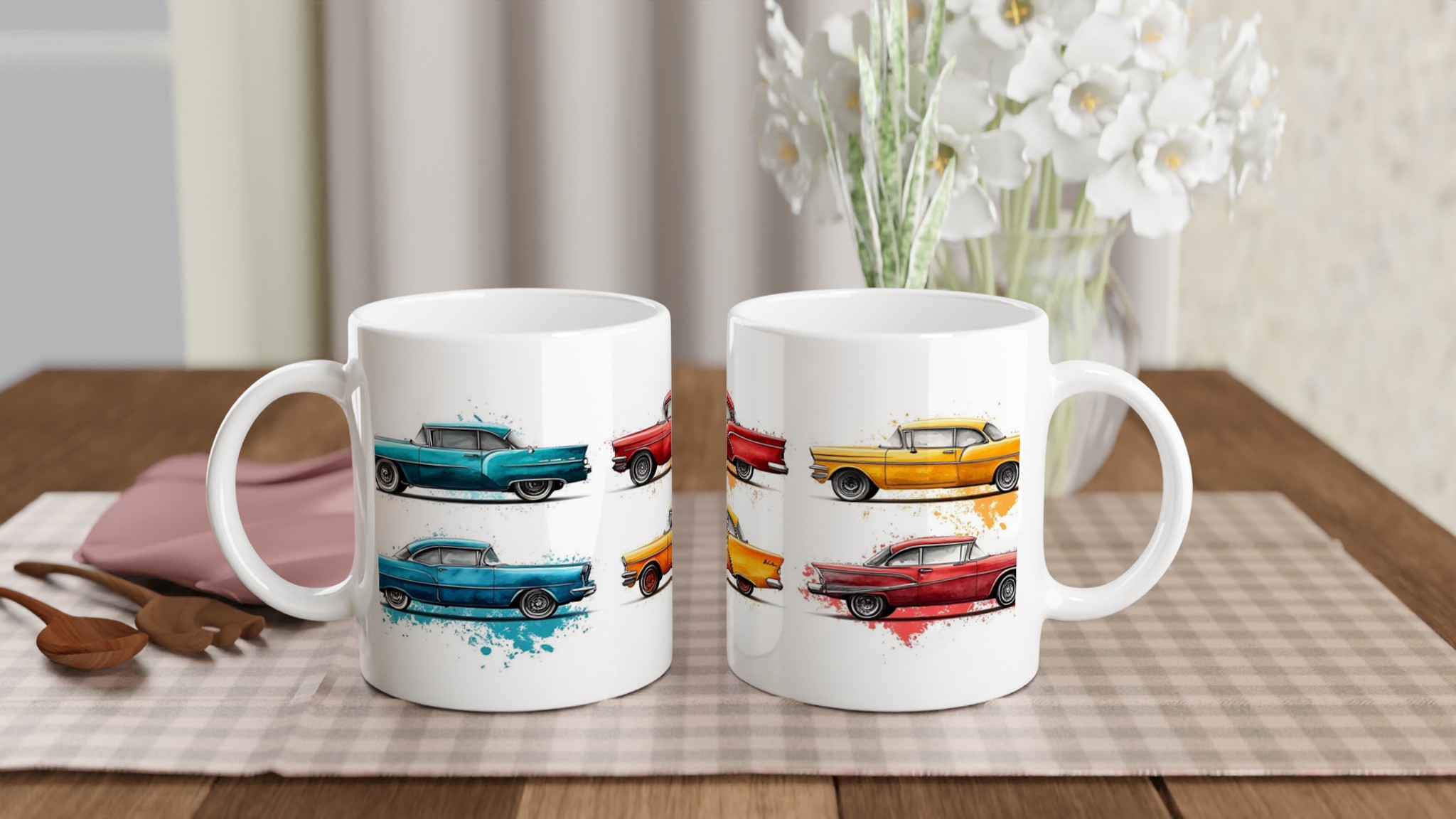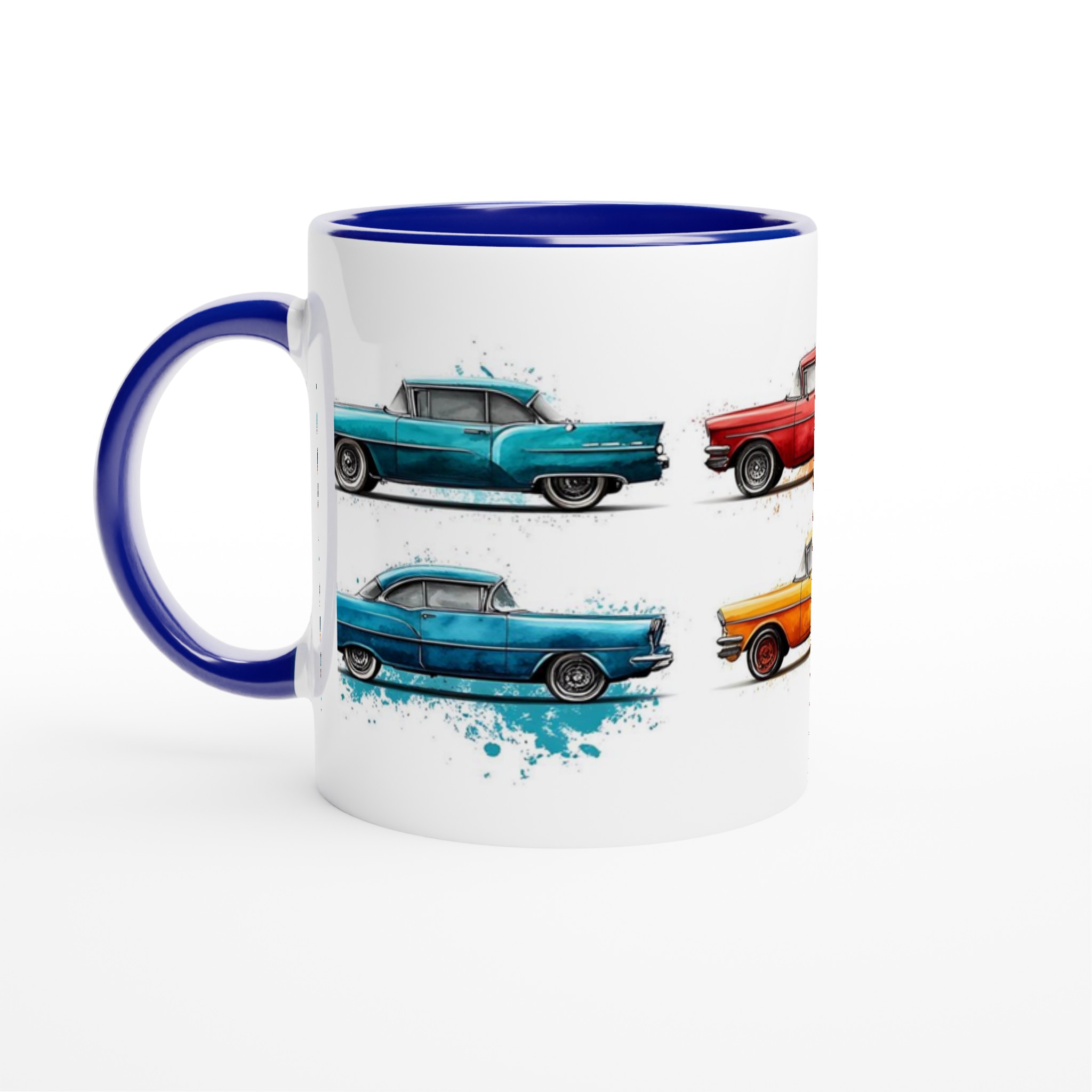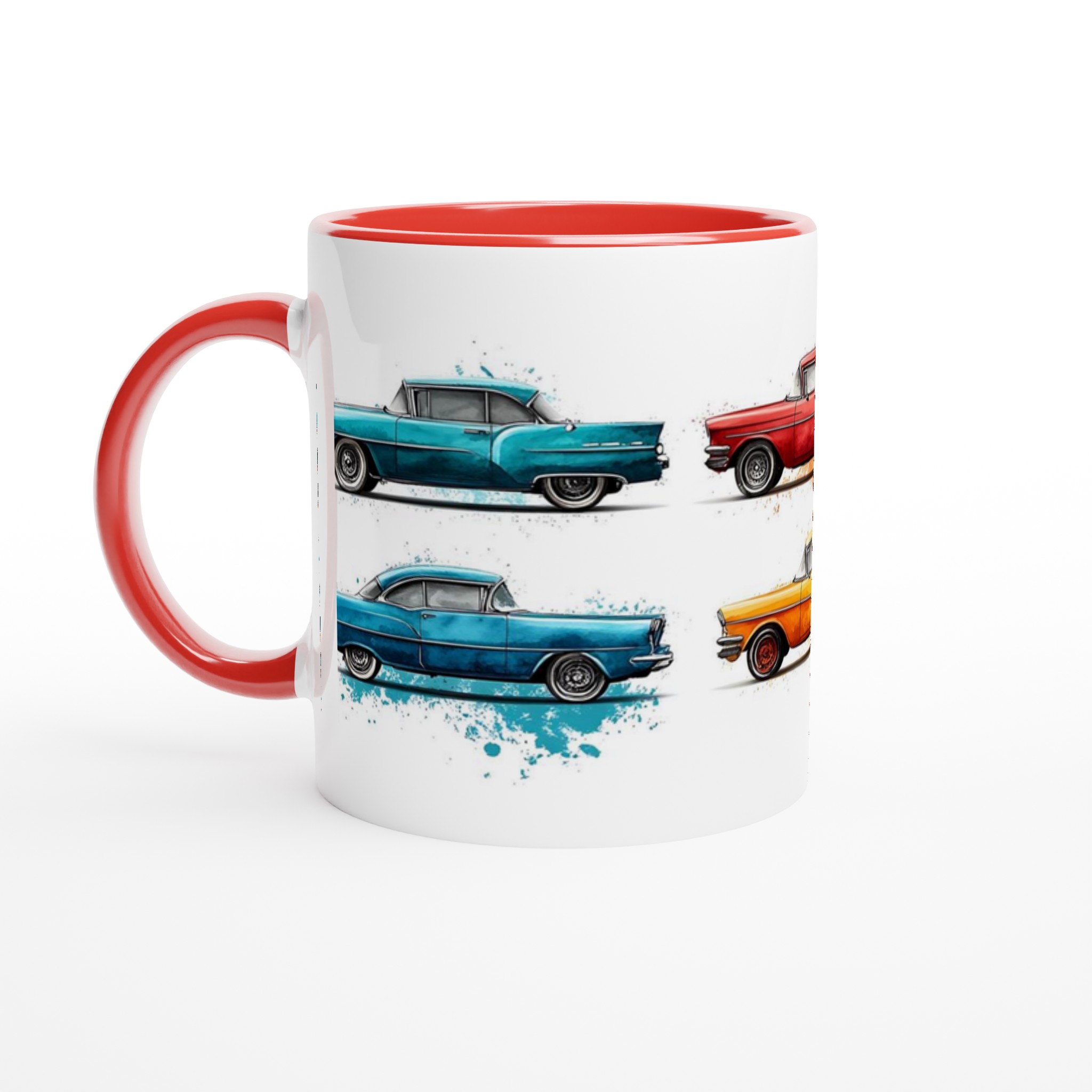 Fånga den nostalgiska charmen från 50-talet varje gång du tar en klunk med vår Retro Bil Keramikmugg! Denna unika mugg pryds av klassiska vintagebilar, levandegjorda med en konstnärlig akvarellkänsla och stänk av färg som ger varje bil sin egen personlighet. Perfekt för morgonkaffet, kvällens varma choklad eller när du bara vill njuta av en kopp te.