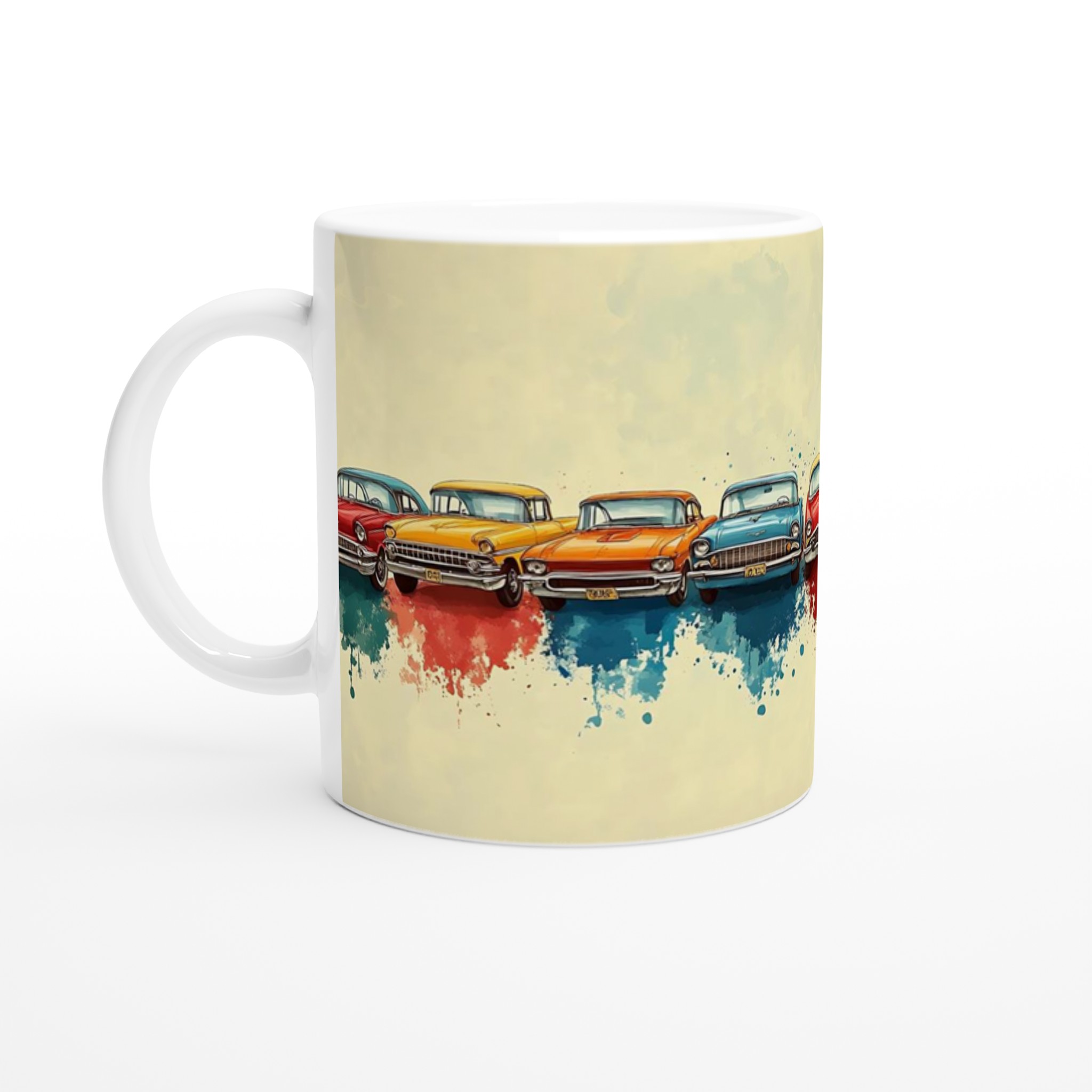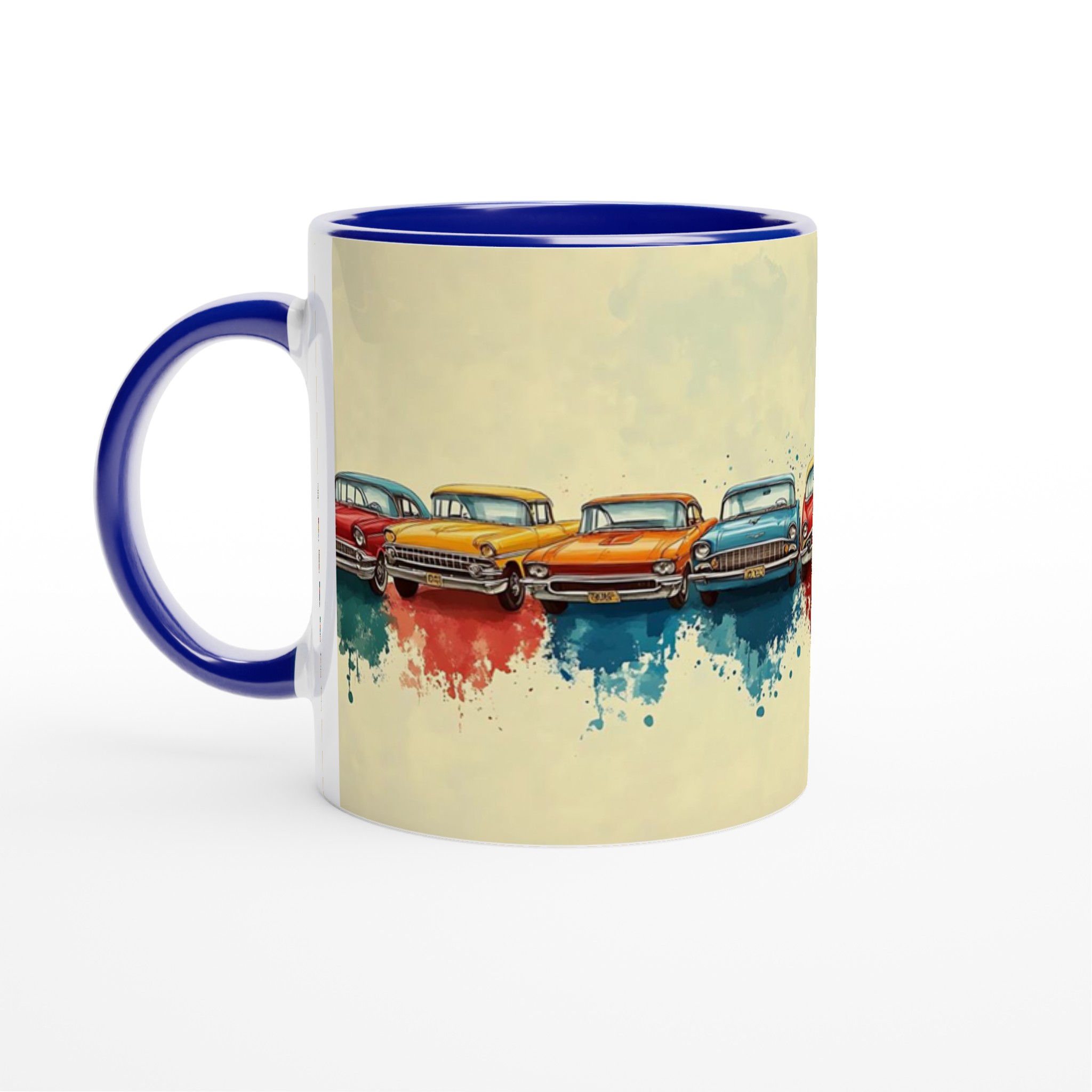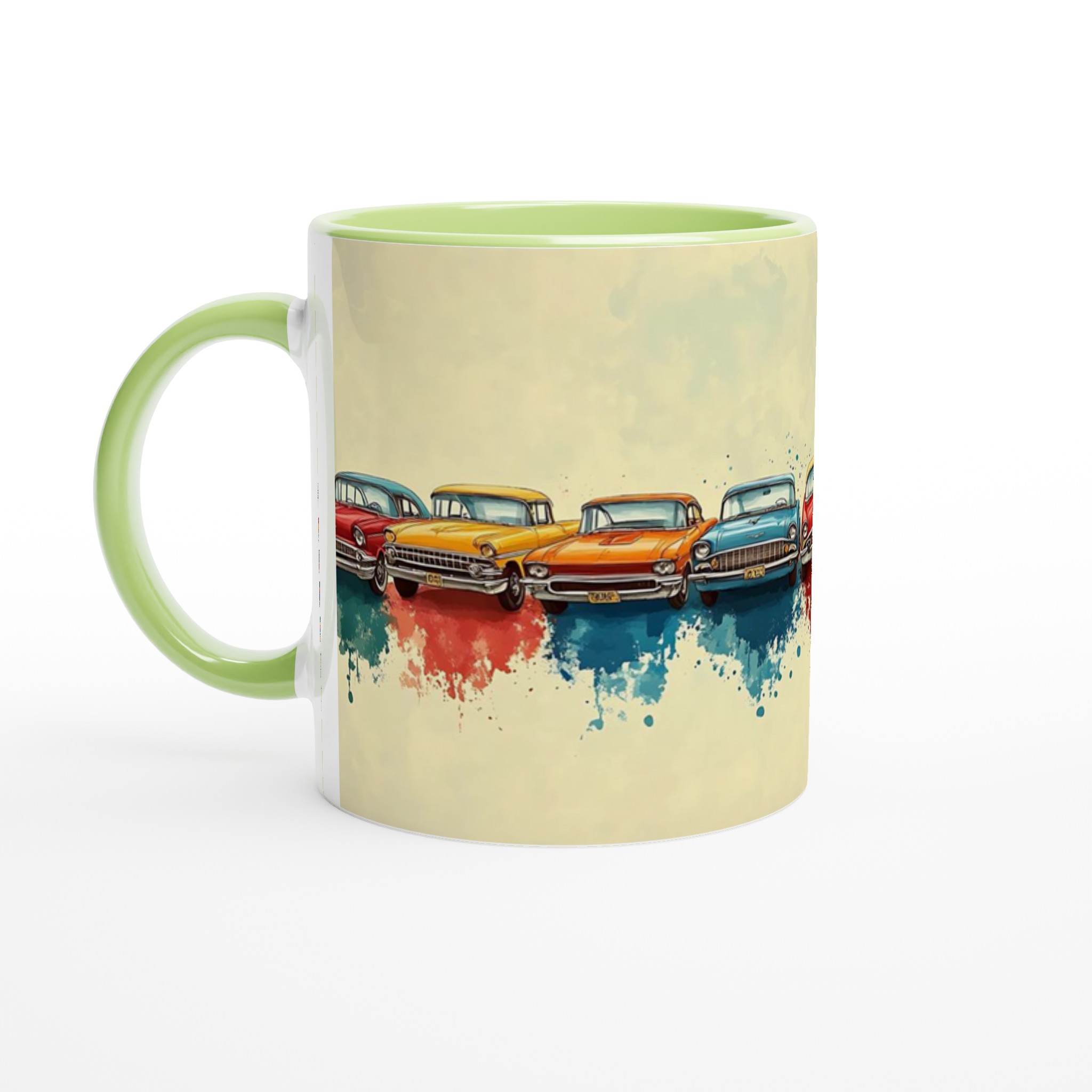 Retro Car Series Mugg – Levande akvarell design, 11oz keramikmugg i ditt val av sju djärva färger
