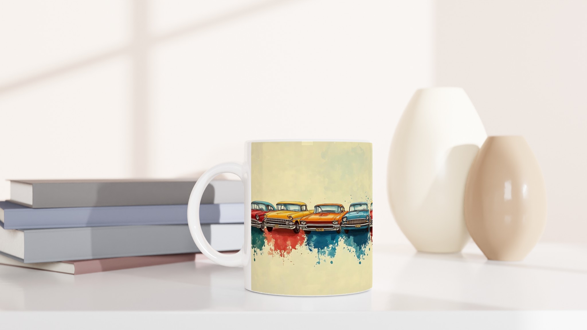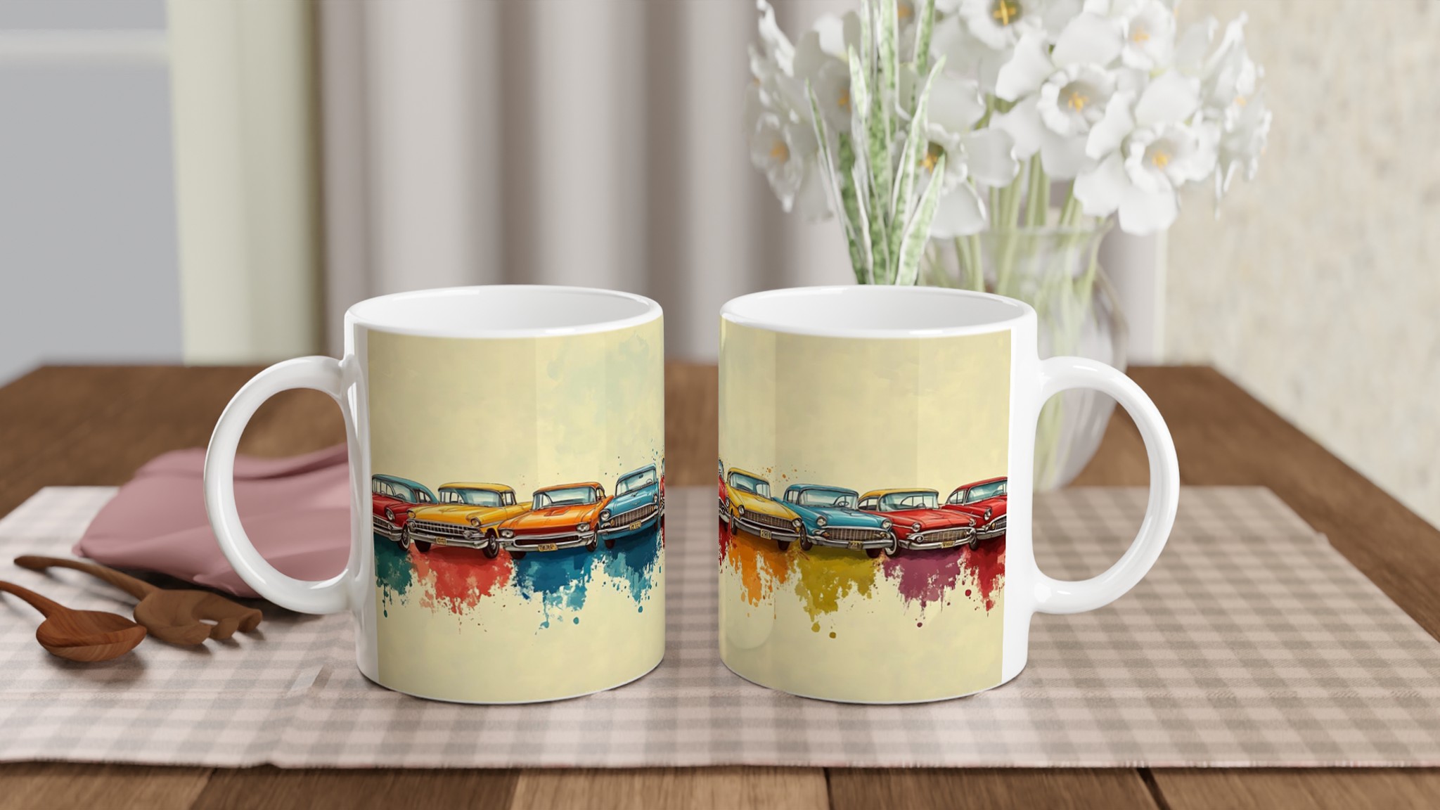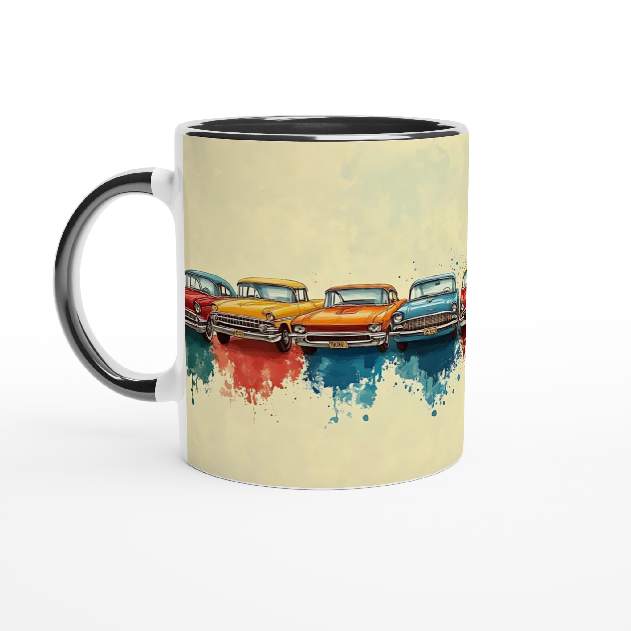 Retro Car Series Mugg – Levande akvarell design, 11oz keramikmugg i ditt val av sju djärva färger