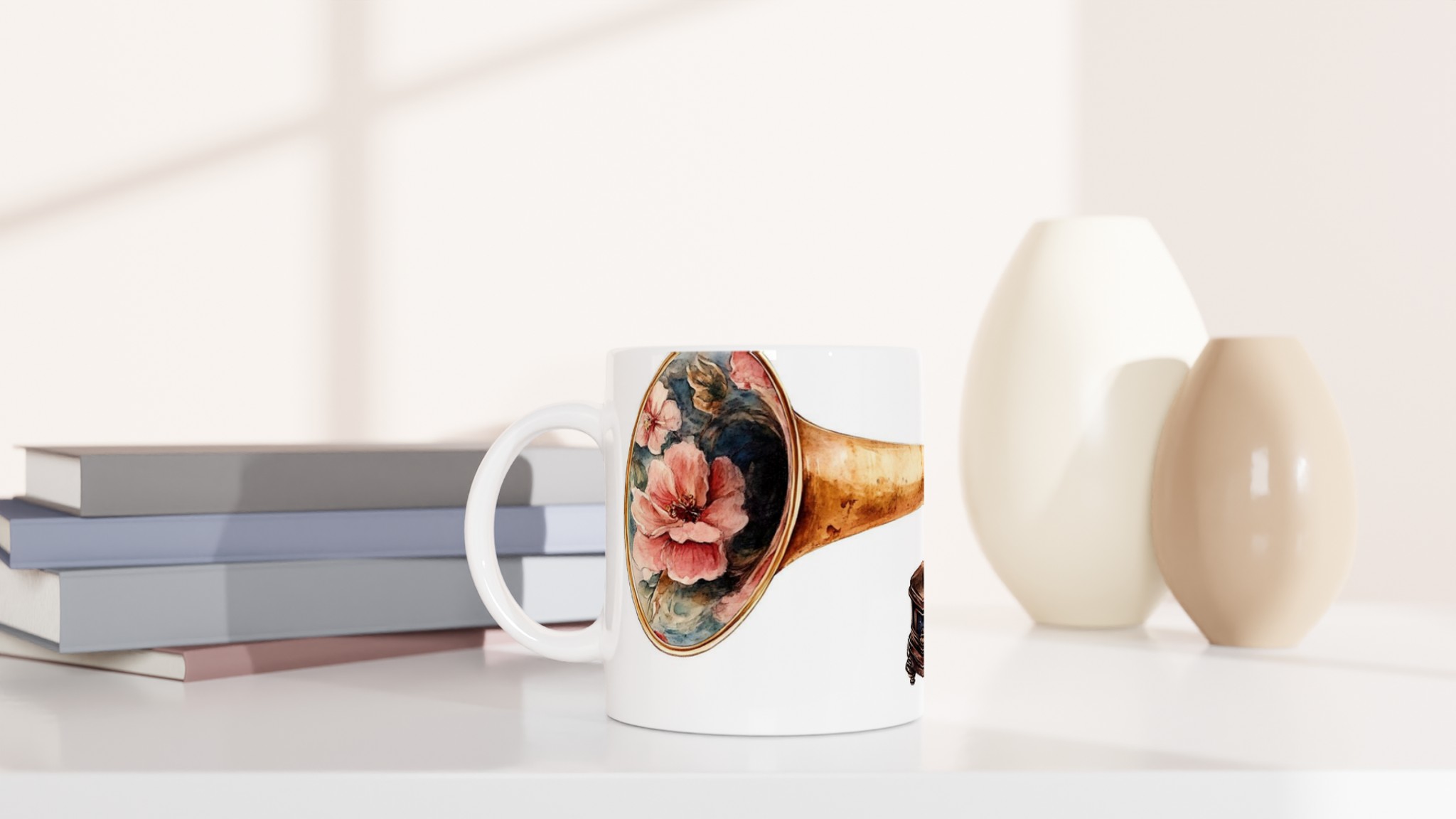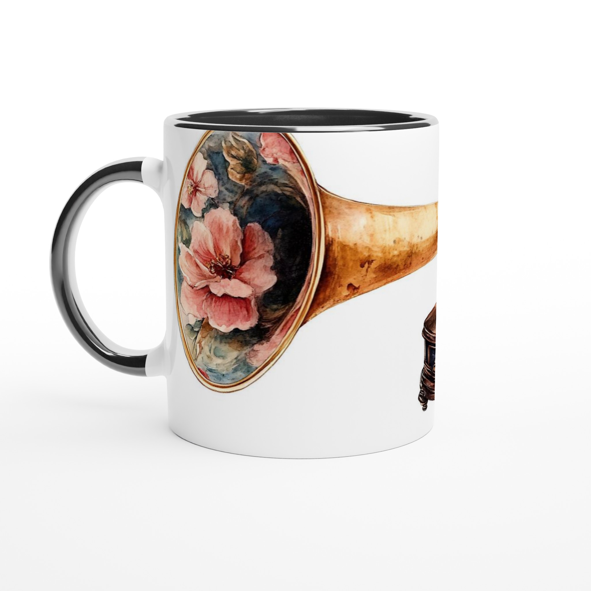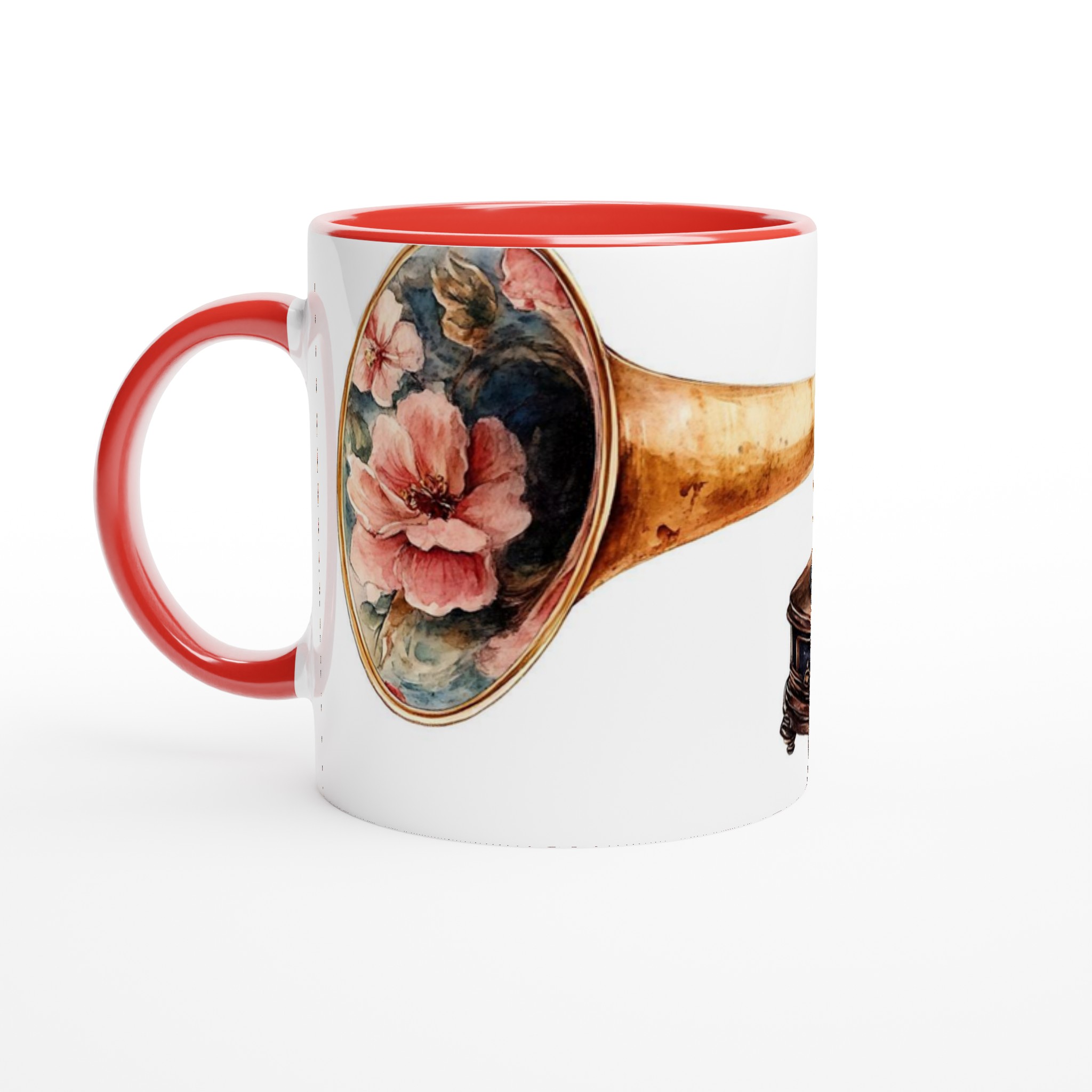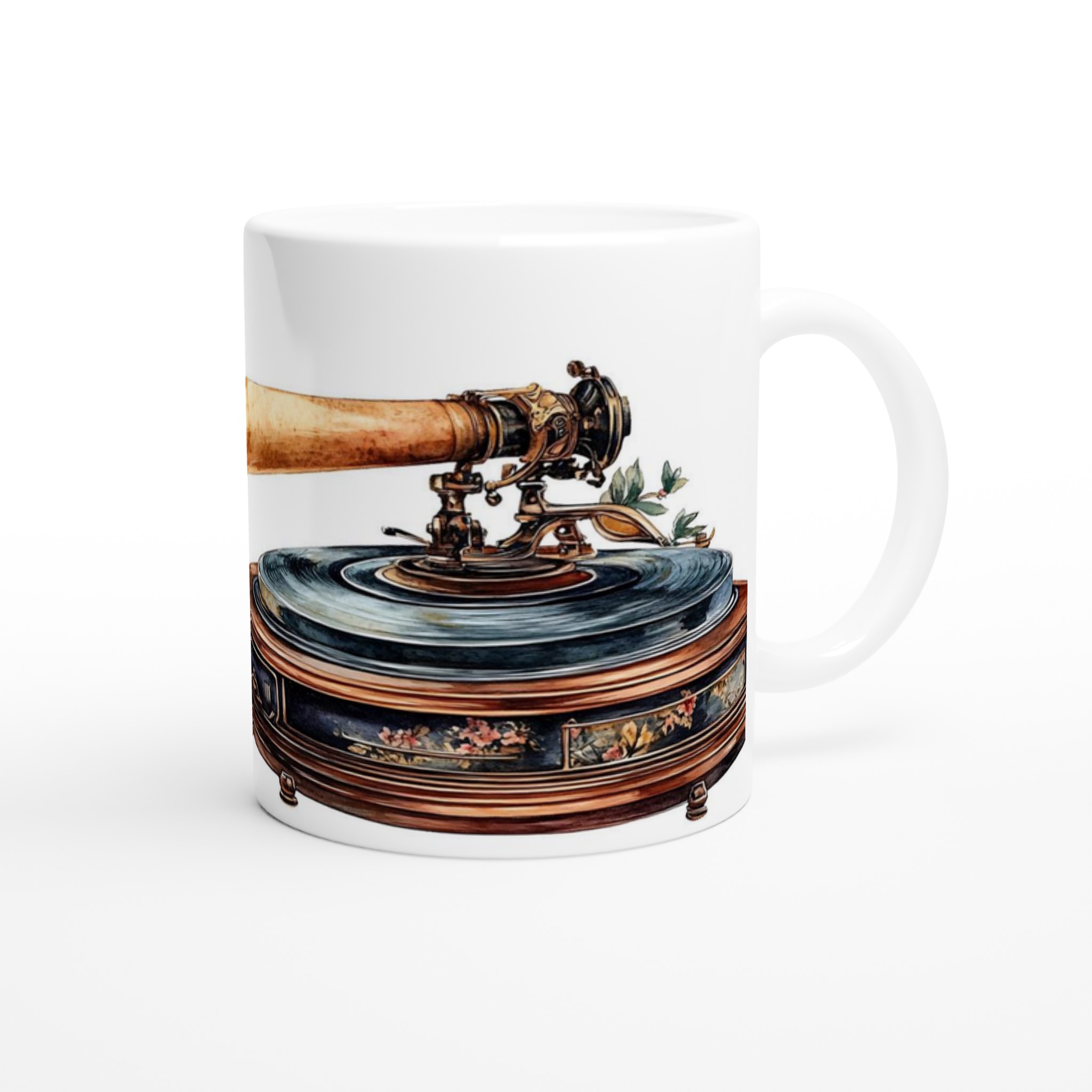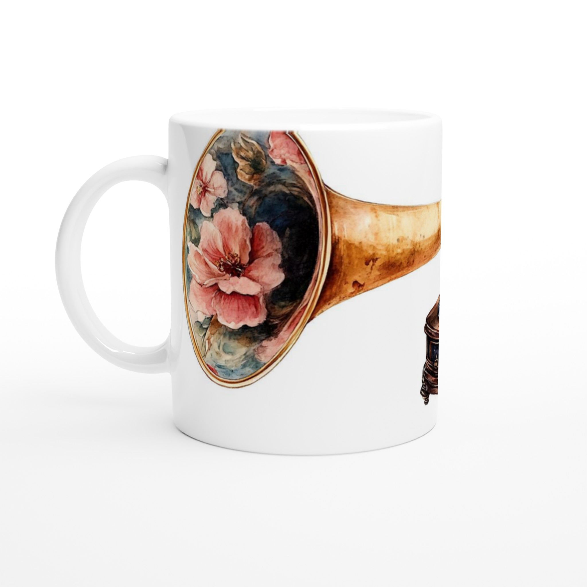 Retro Floral Gramophone Mugg – Vintage Skönhet med Romantisk Blomsterdesign – Välj din färg