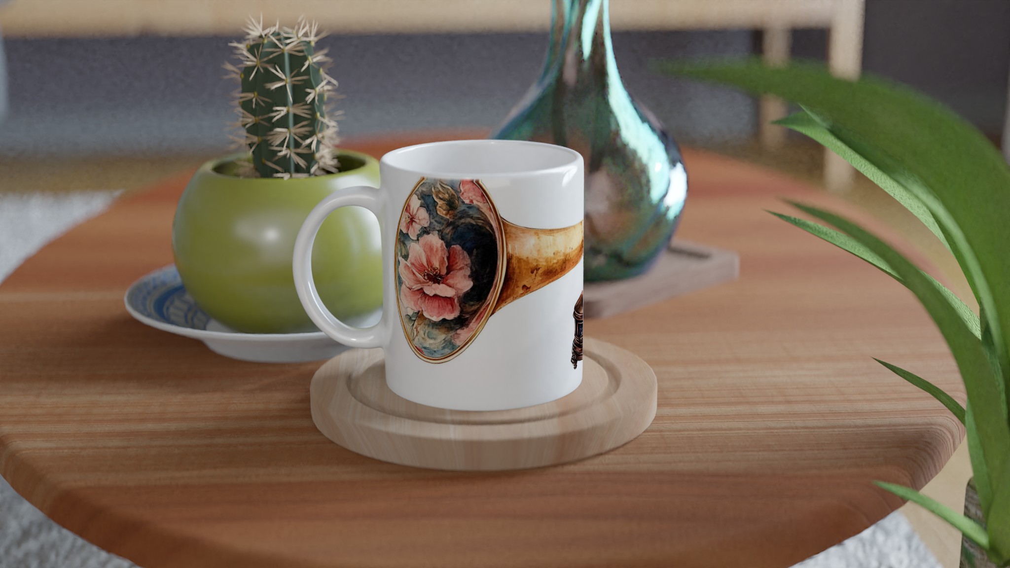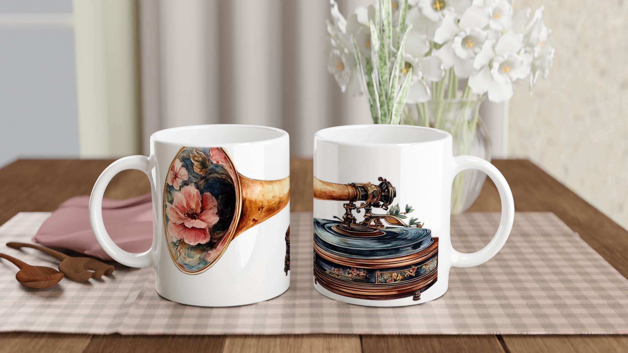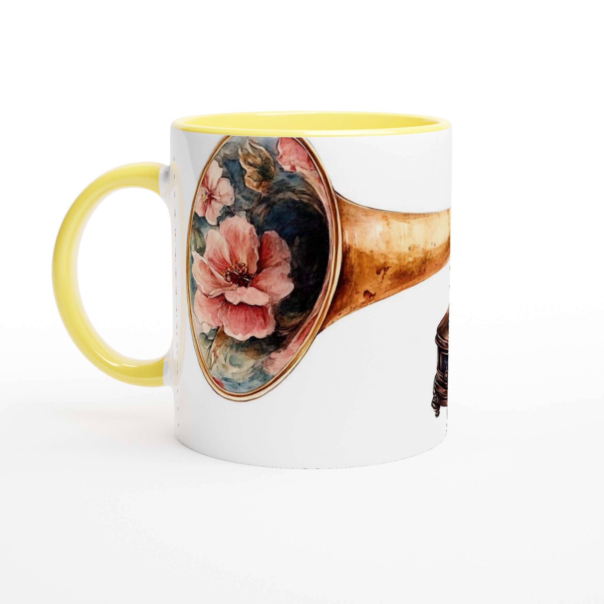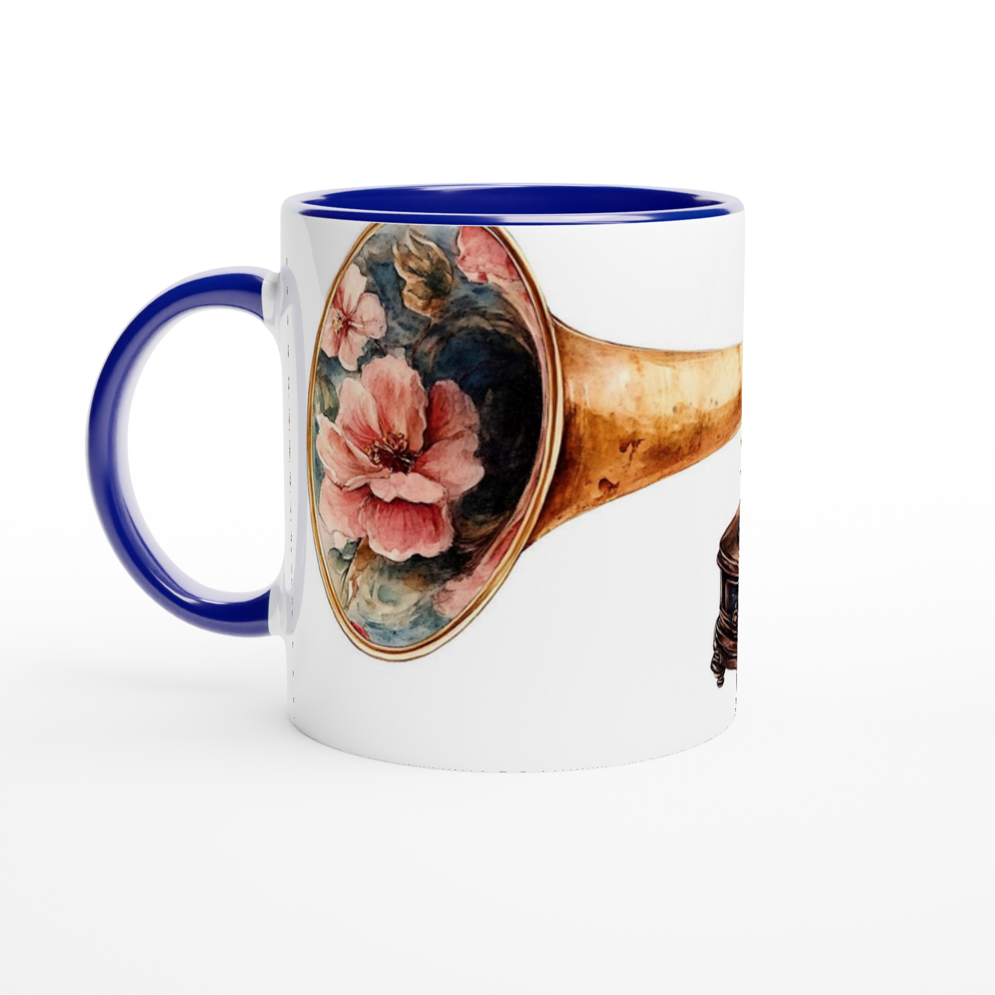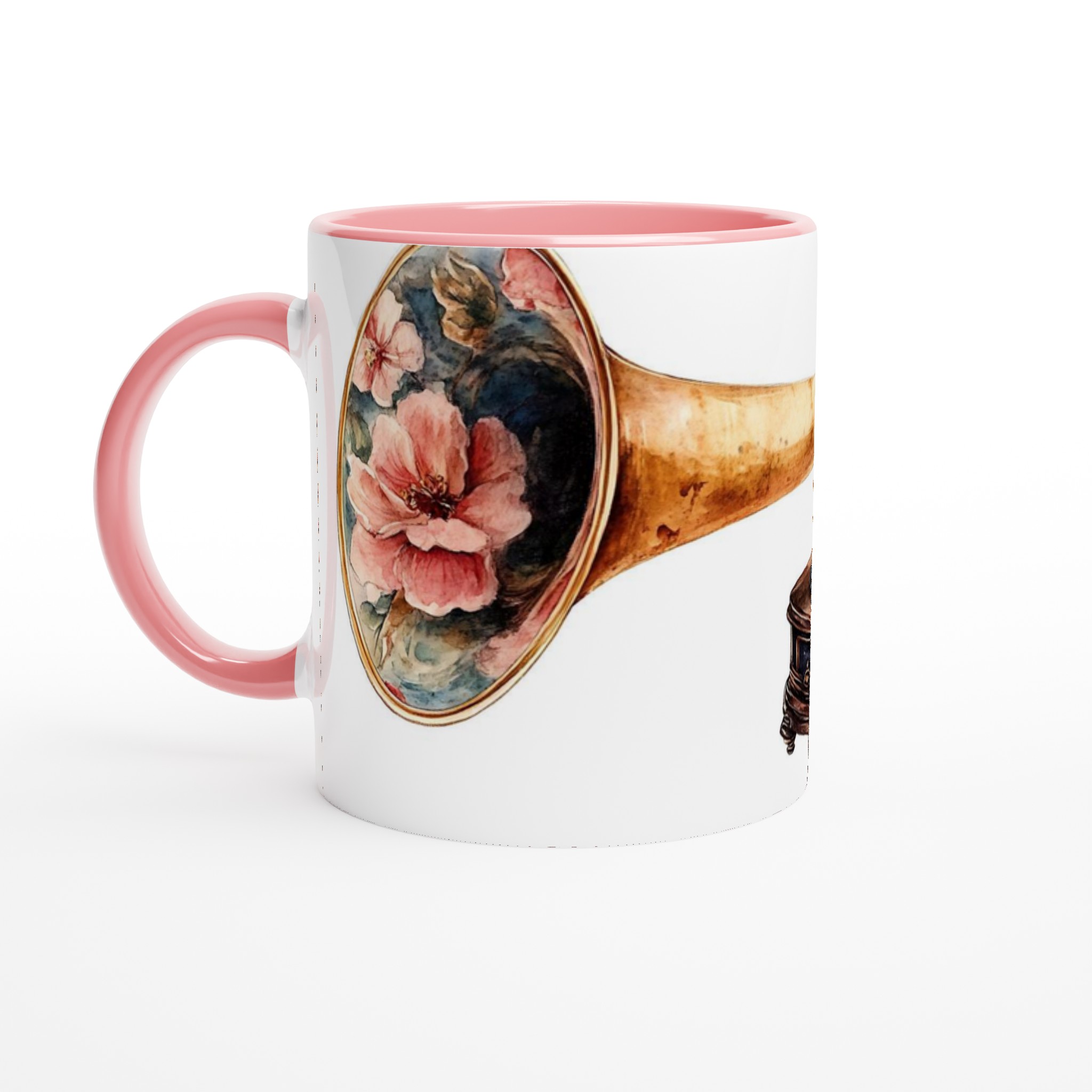 Retro Floral Gramophone Mugg – Vintage Skönhet med Romantisk Blomsterdesign – Välj din färg