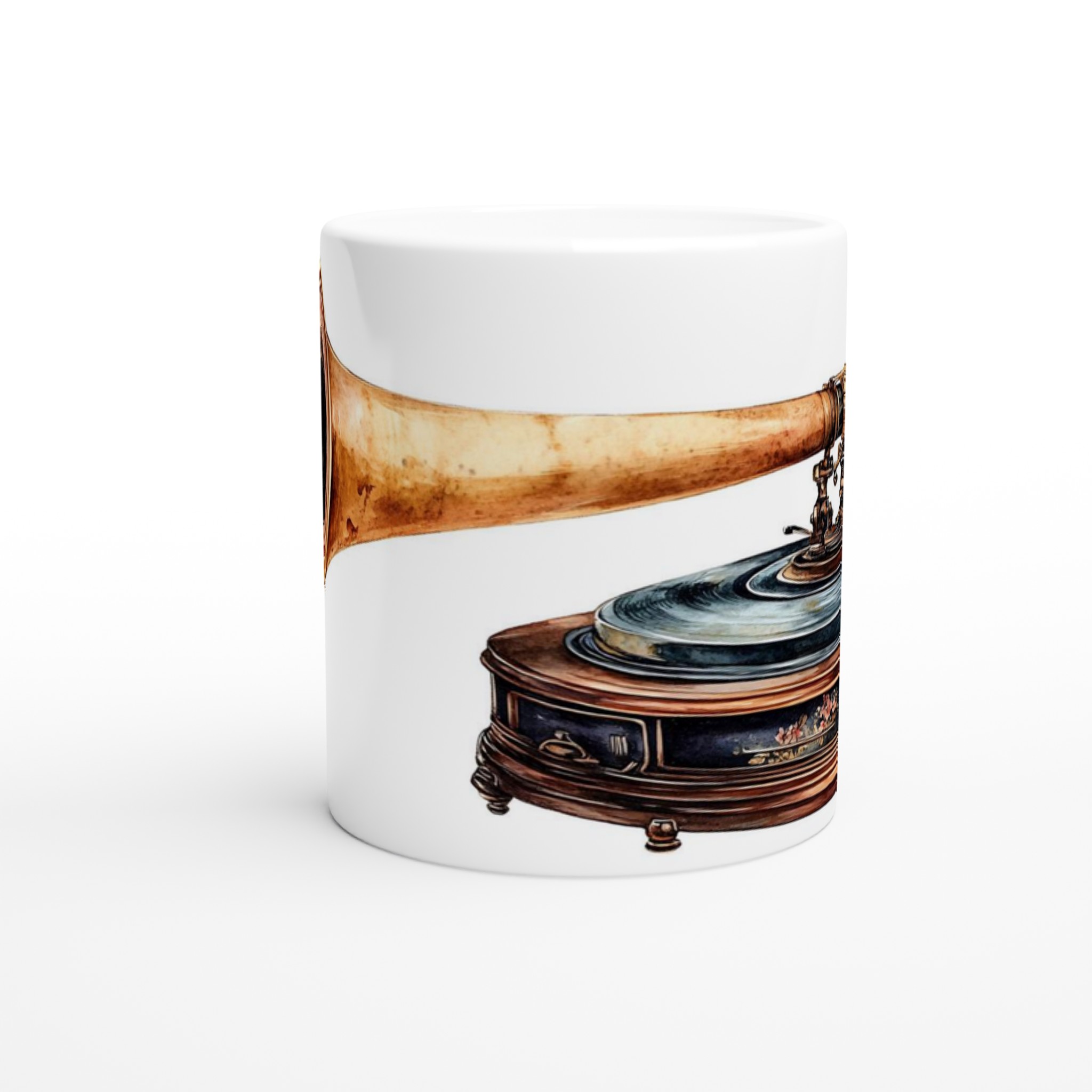 Välj din egen favoritfärg bland våra Keramik Vita, Gula, Rosa, Gröna, Röda, Svarta eller Blå alternativ för att matcha din stil. Upplev den perfekta blandningen av tidlös design och modern funktionalitet – beställ din unika grammofonmugg idag!