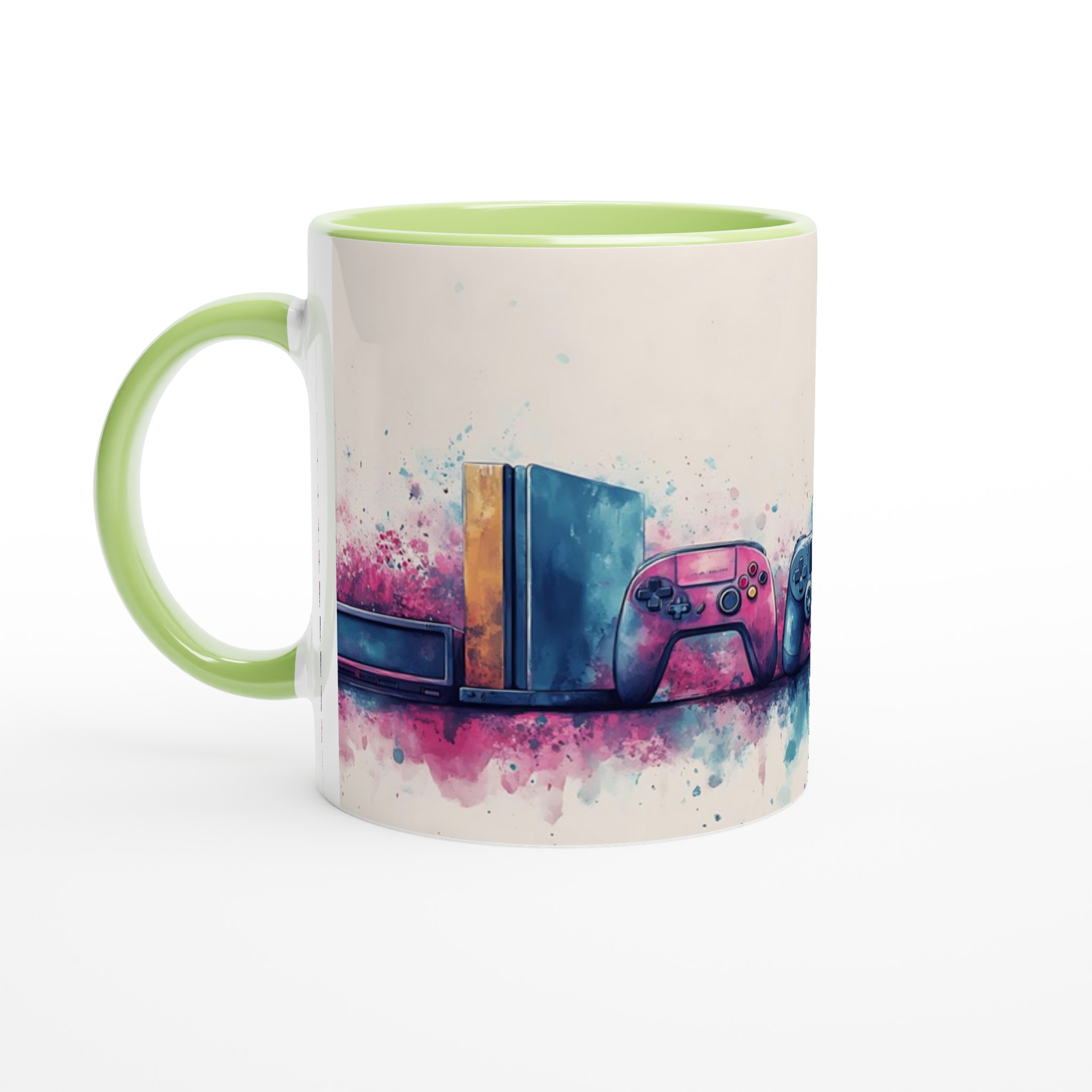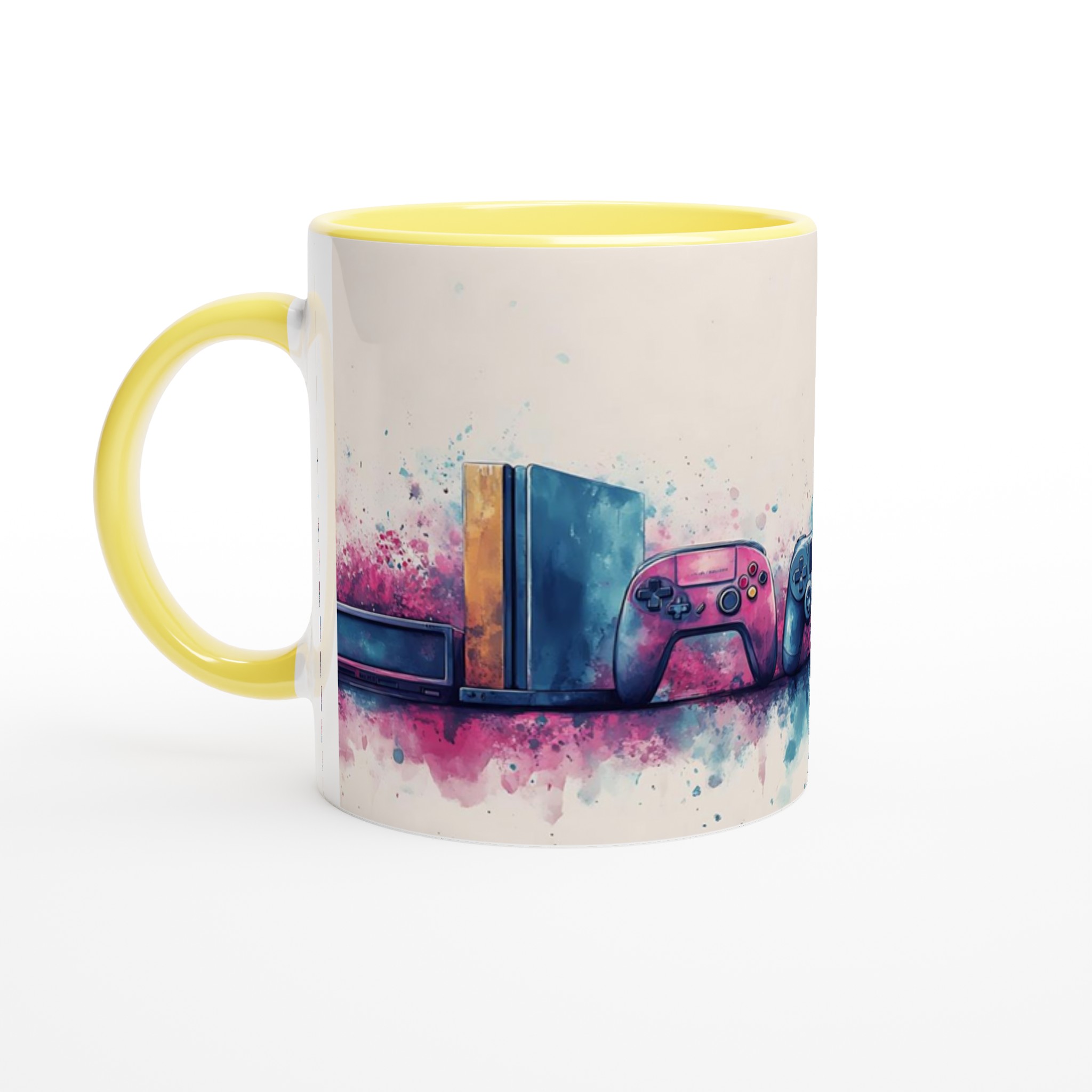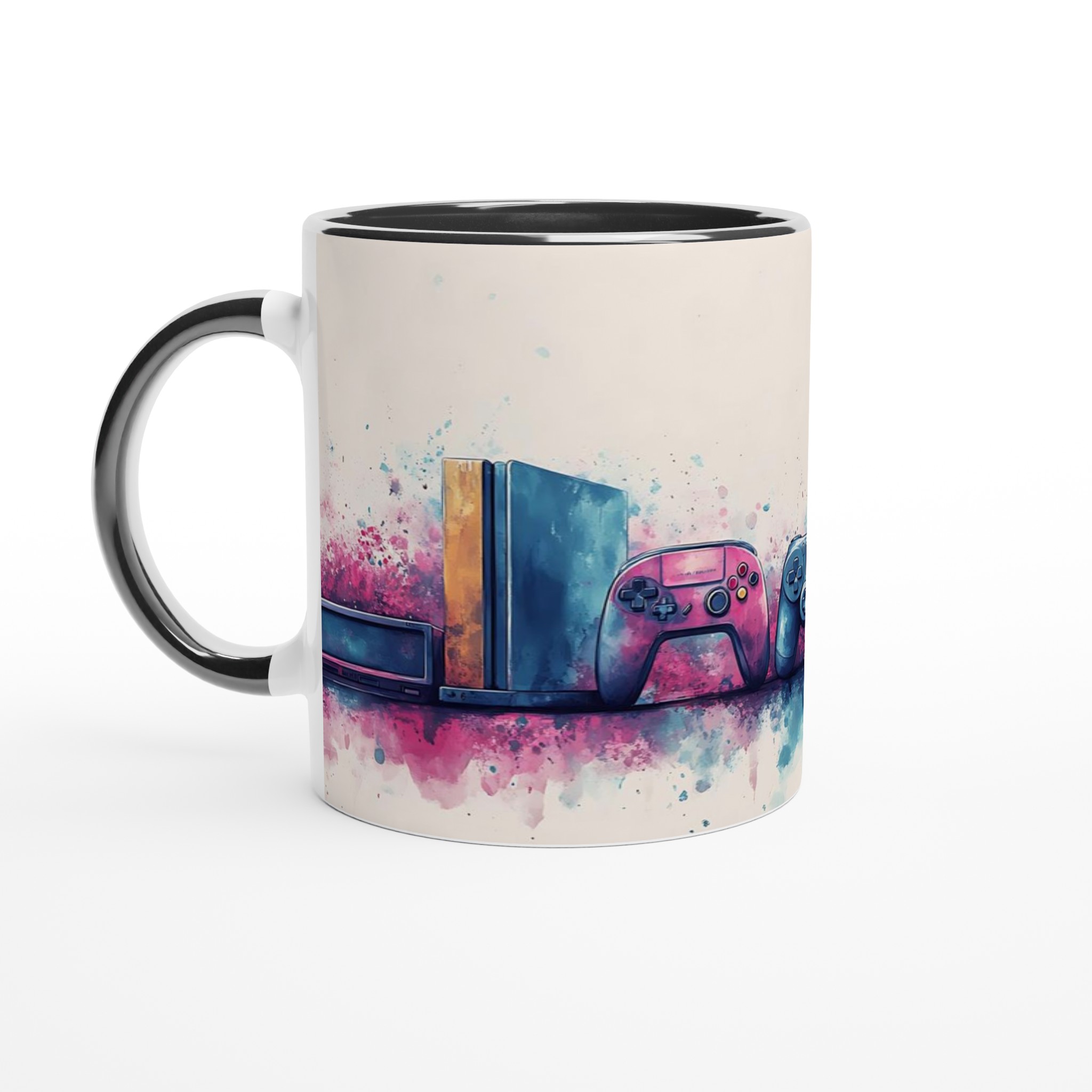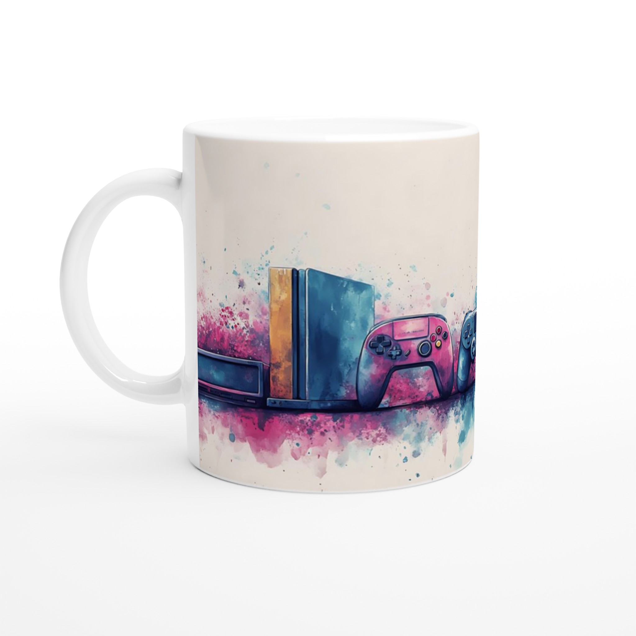 Inspirerad av den livfulla akvarellkonsten och nostalgiska spelkonsoler, är denna mugg en hyllning till både konst och retro gaming. Den blanka vita ytan ger ett skarpt och levande tryck som verkligen sticker ut, oavsett om det är en personlig design, ett roligt citat eller en present till någon du tycker om. Välj mellan sju fantastiska keramiska färger – från klassiskt vitt till lekfullt gult, lugnt blått eller energiskt rött – för att matcha din stil eller ditt favoritspel.