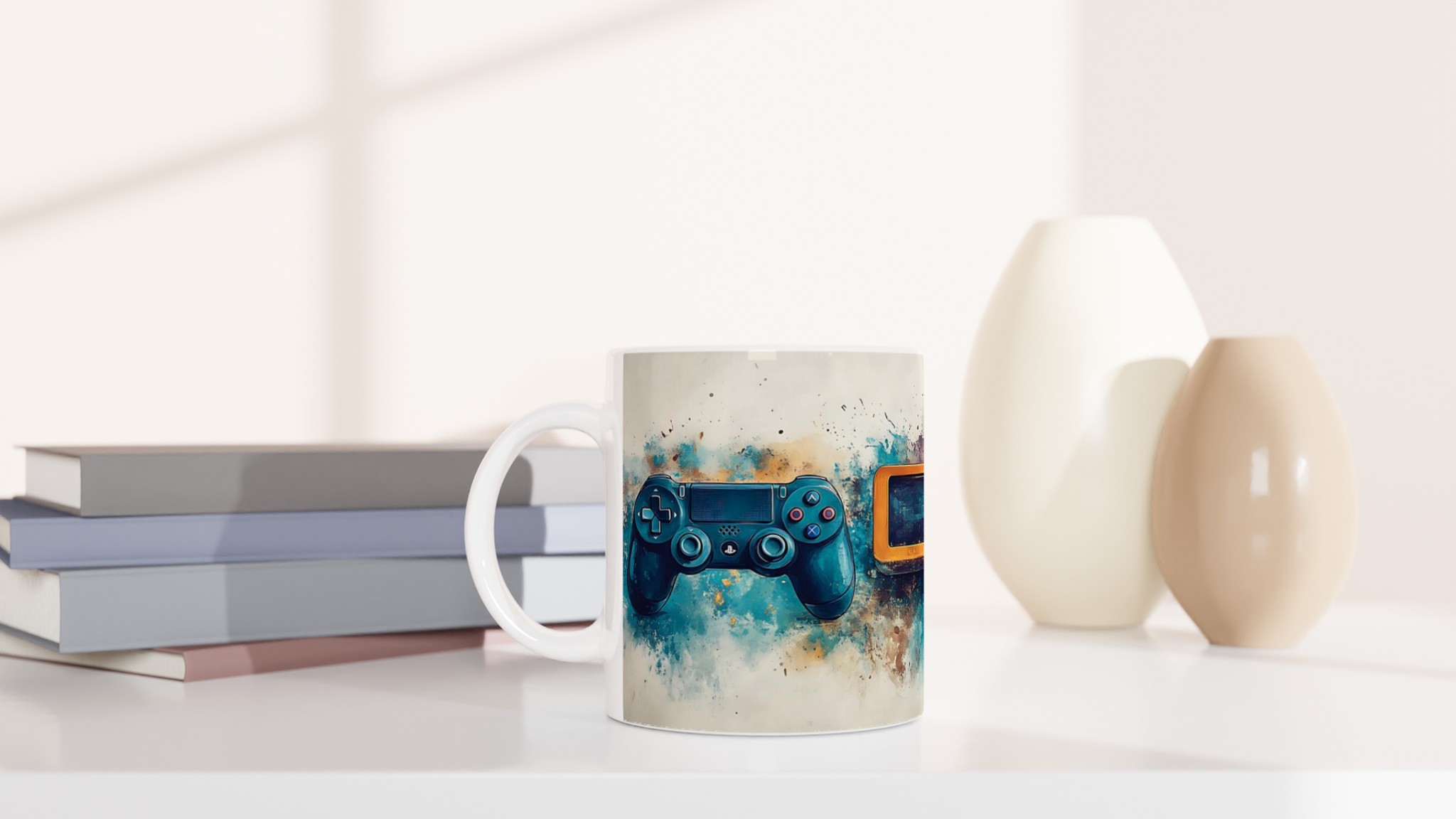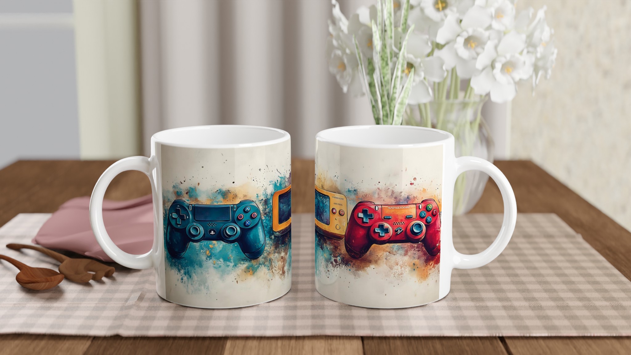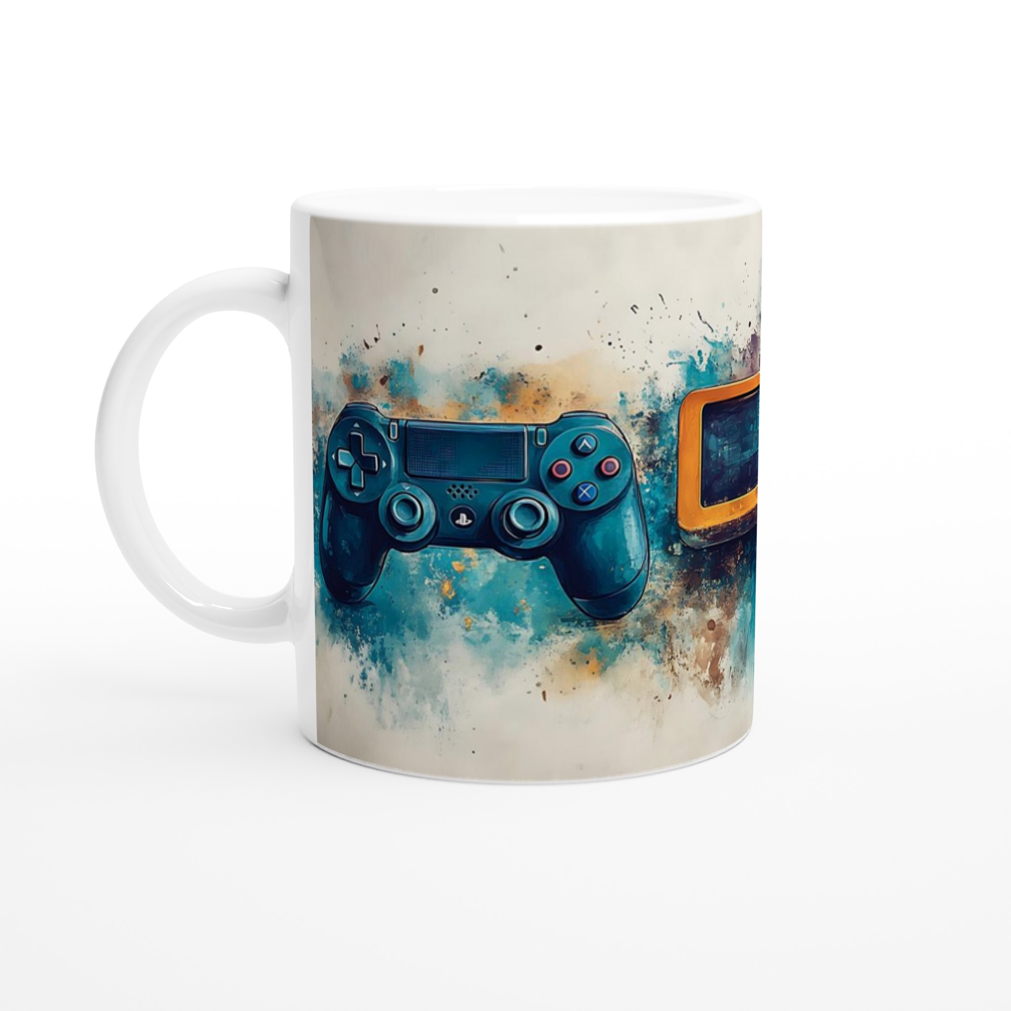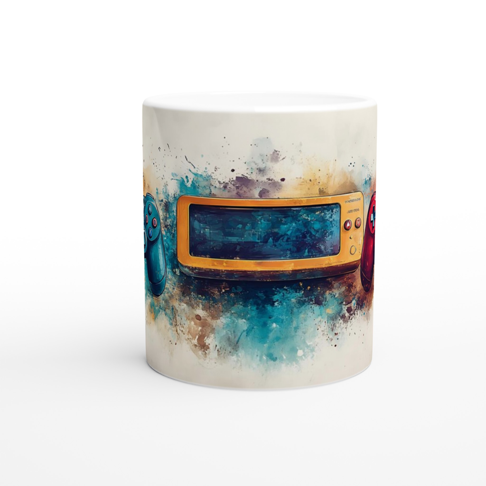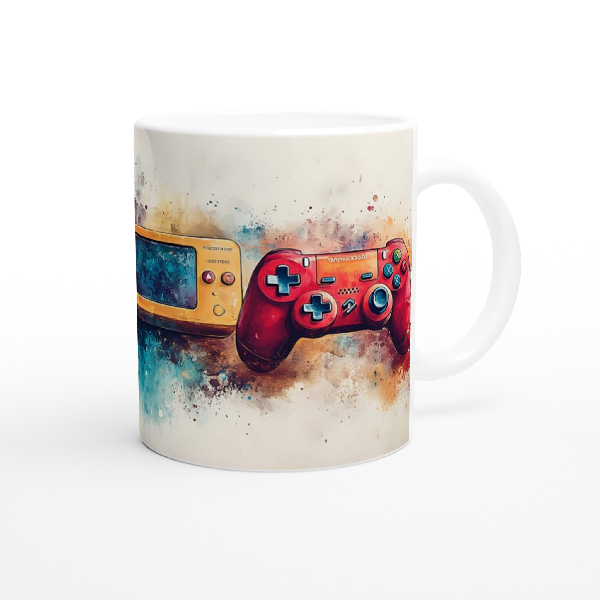 Lyft varje kaffestund med vår premium keramikmugg – stilren, hållbar och skapad för att låta ditt motiv glänsa. Inspirerad av den dynamiska konsten av gaming, fångar denna mugg essensen av klassiska spelkonsoler med en modern akvarelltwist. Den blanka vita ytan ger ett skarpt och levande tryck som verkligen sticker ut, oavsett om det är en personlig design, ett roligt citat eller en present till någon du tycker om.