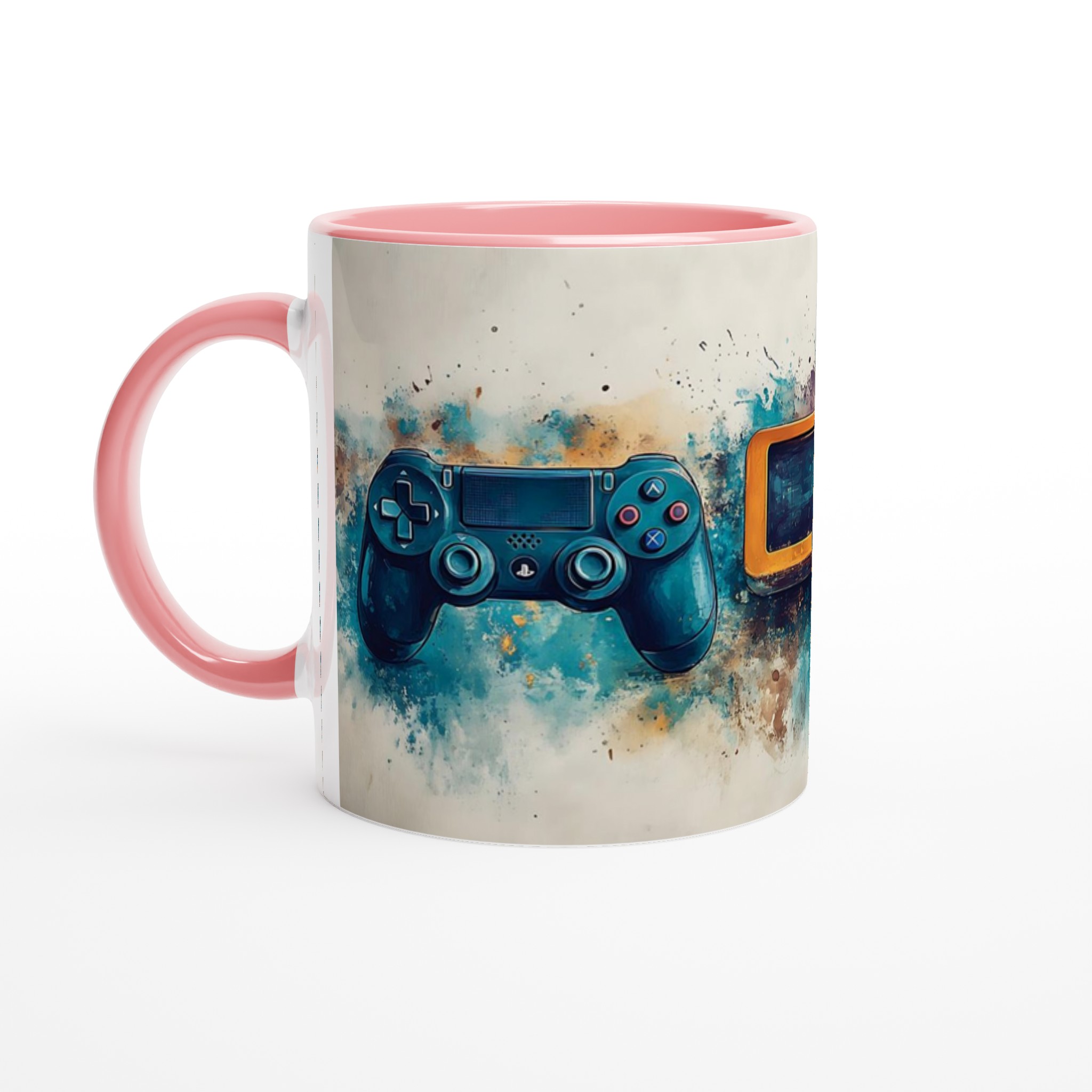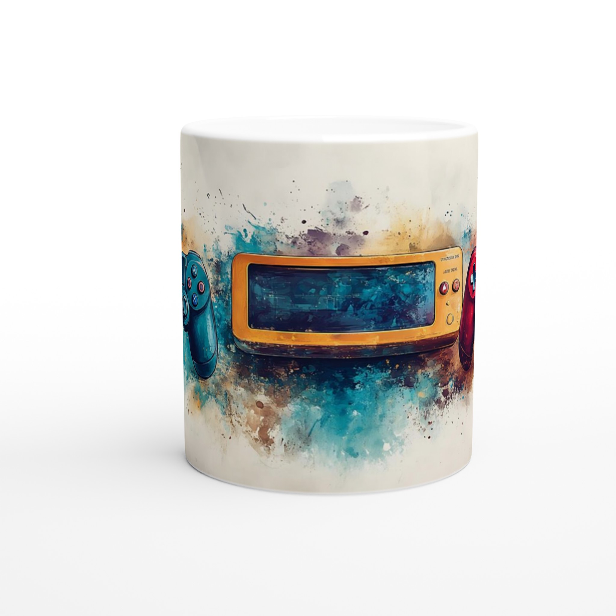 Väck spelsjälen med varje klunk! Denna konstnärliga keramiska mugg förvandlar din fikapaus till en nostalgitripp, inspirerad av klassiska spelkonsoler med en modern akvarelltwist. Perfekt för morgonkaffet, kvällens varma choklad eller när du bara vill njuta av en kopp te medan du drömmer dig bort till digitala äventyr.