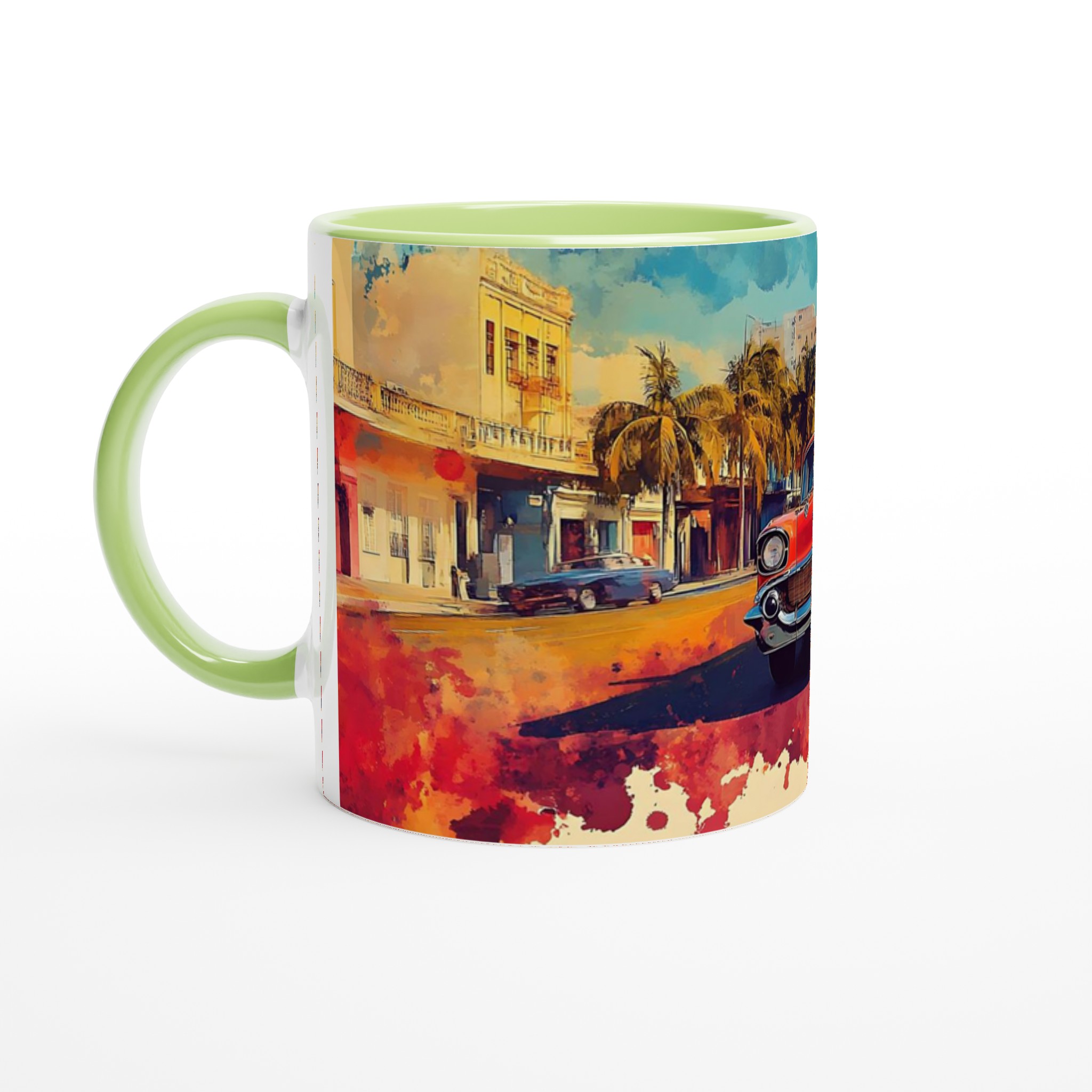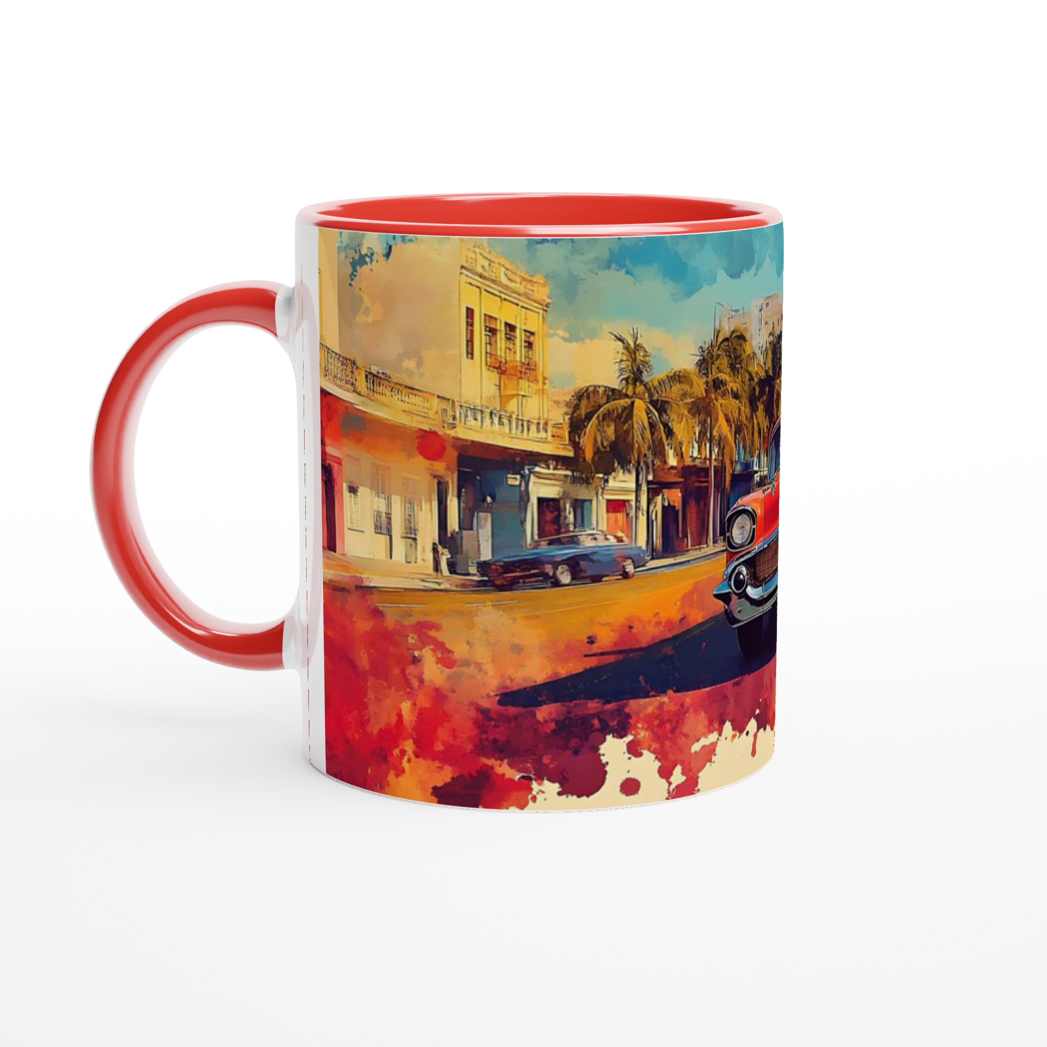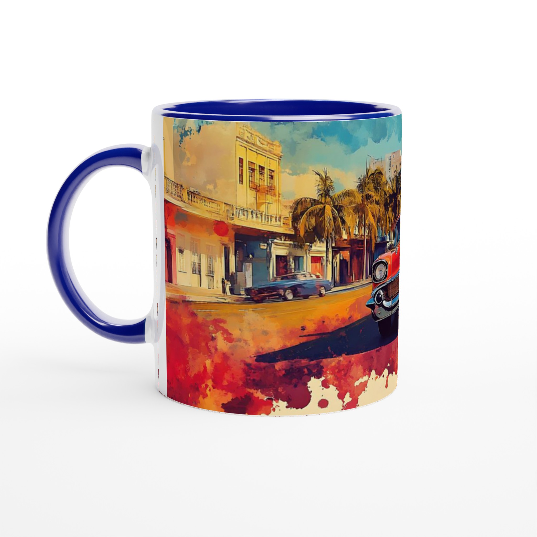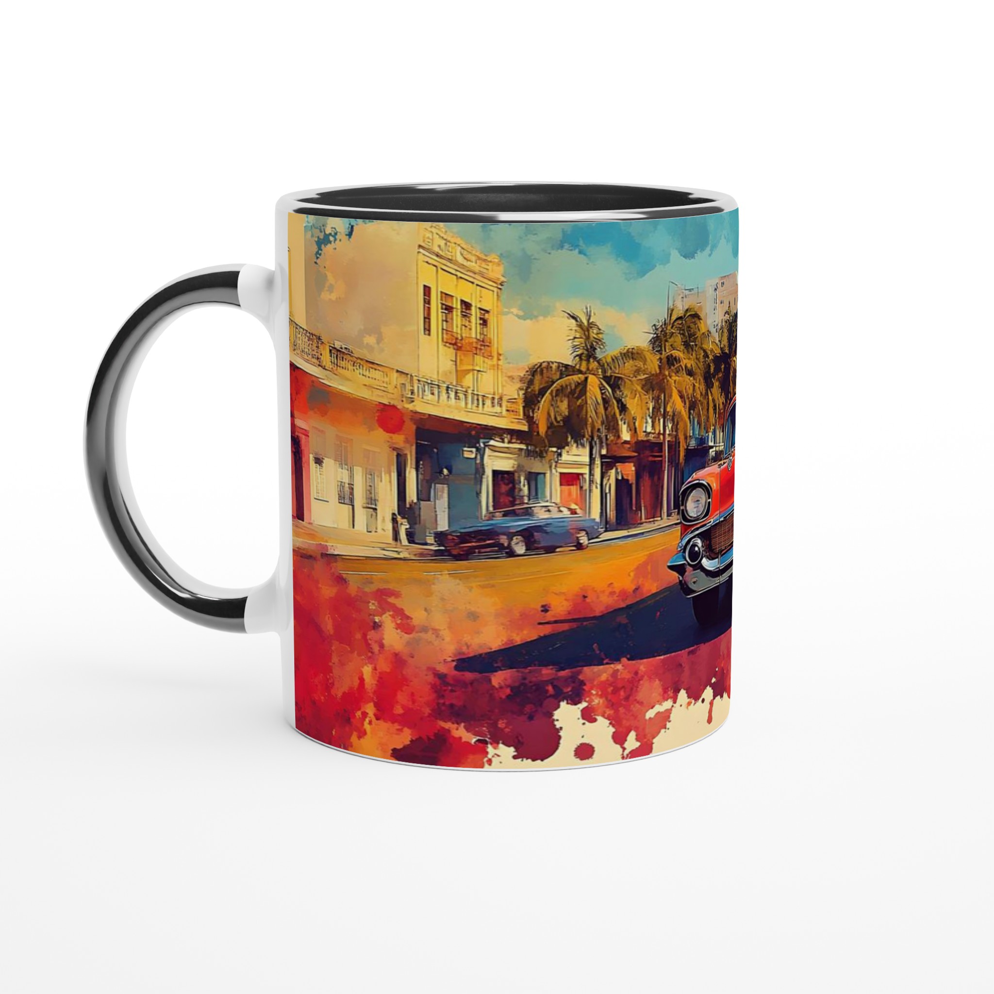 Fånga känslan av soliga gator och tidlös charm med vår keramiska mugg, prydd med en konstnärlig akvarellbild av en klassisk bil i en livlig stadsmiljö. Denna unika design, med sina varma nyanser och dynamiska penseldrag, förvandlar varje sipp till en liten resa. Den blir snabbt en vardagsfavorit – perfekt för morgonkaffet, kvällens varma choklad eller när du bara vill njuta av en kopp te.