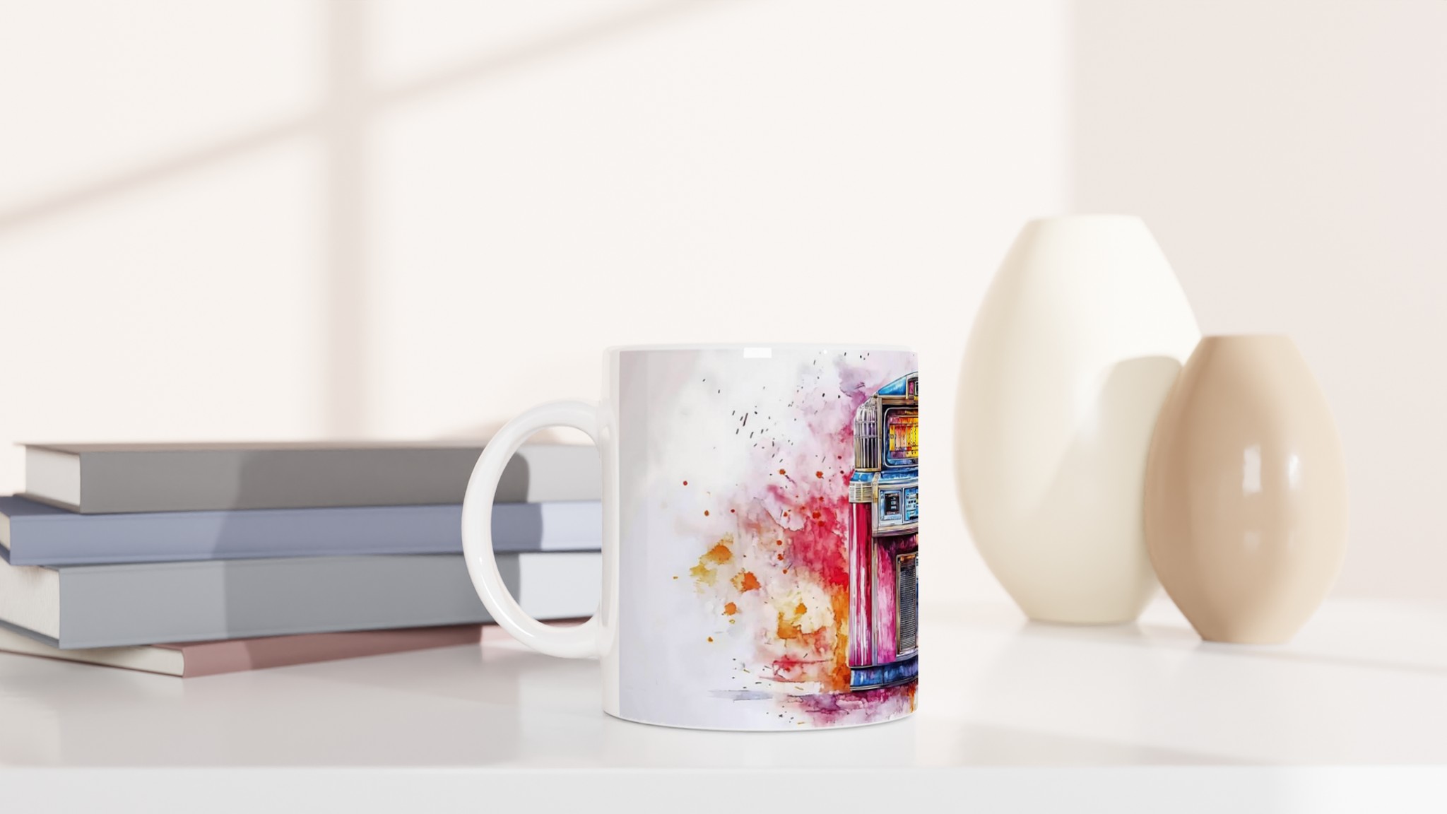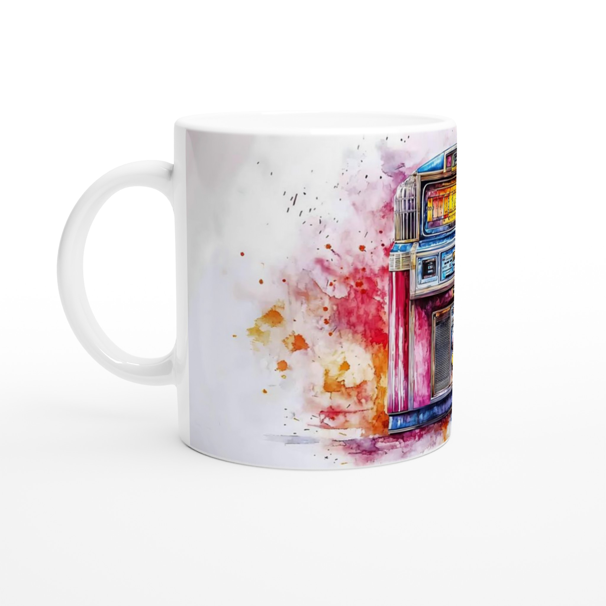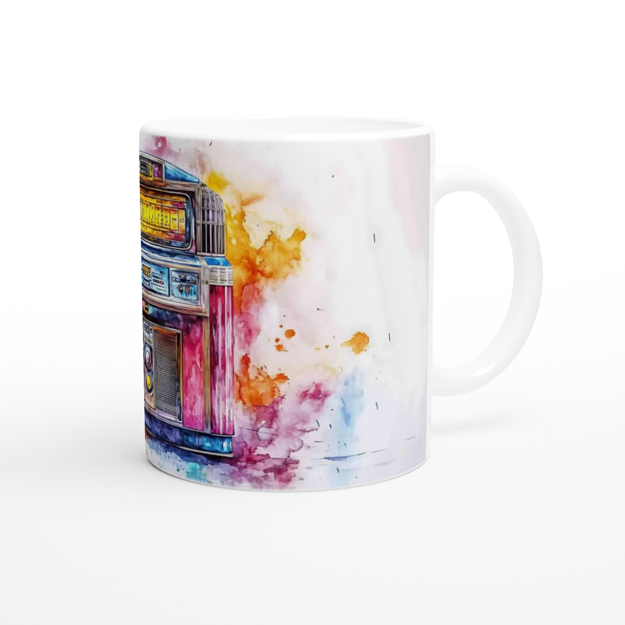 Retro Jukebox Akvarell Keramisk Mugg – 11oz Nostalgi i Färgval