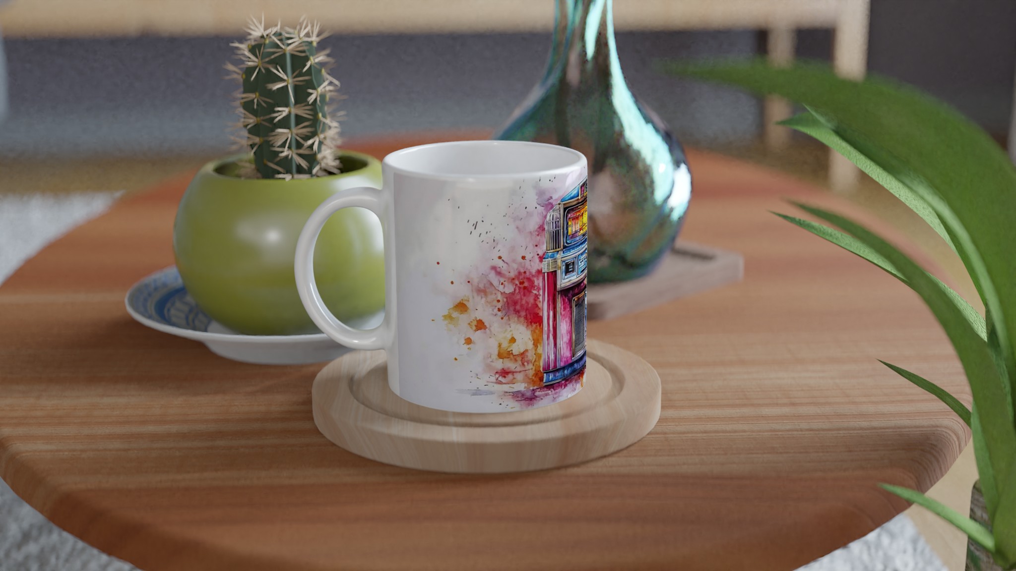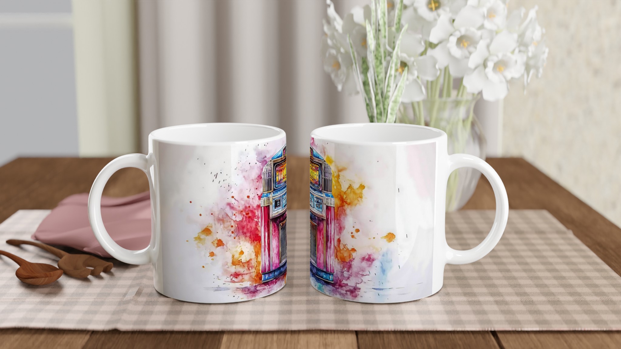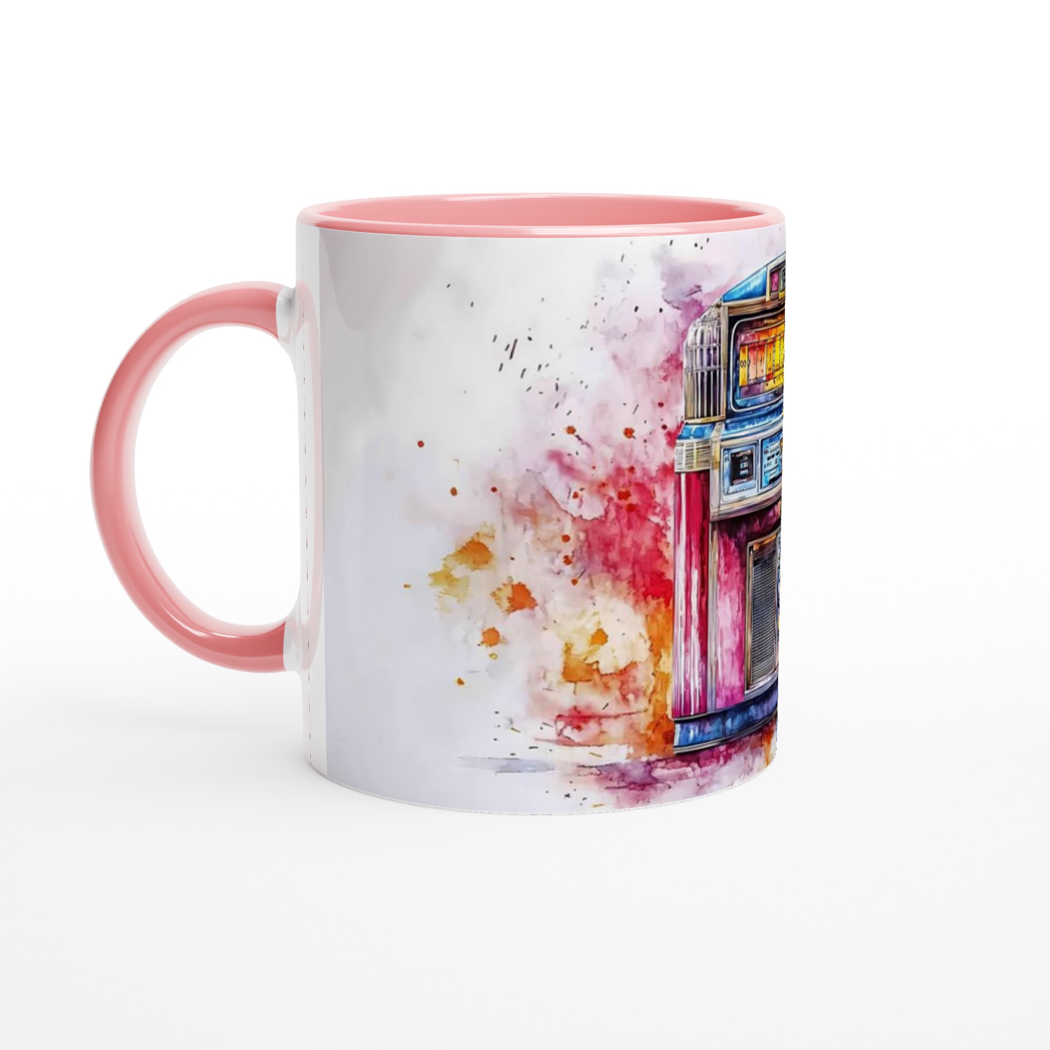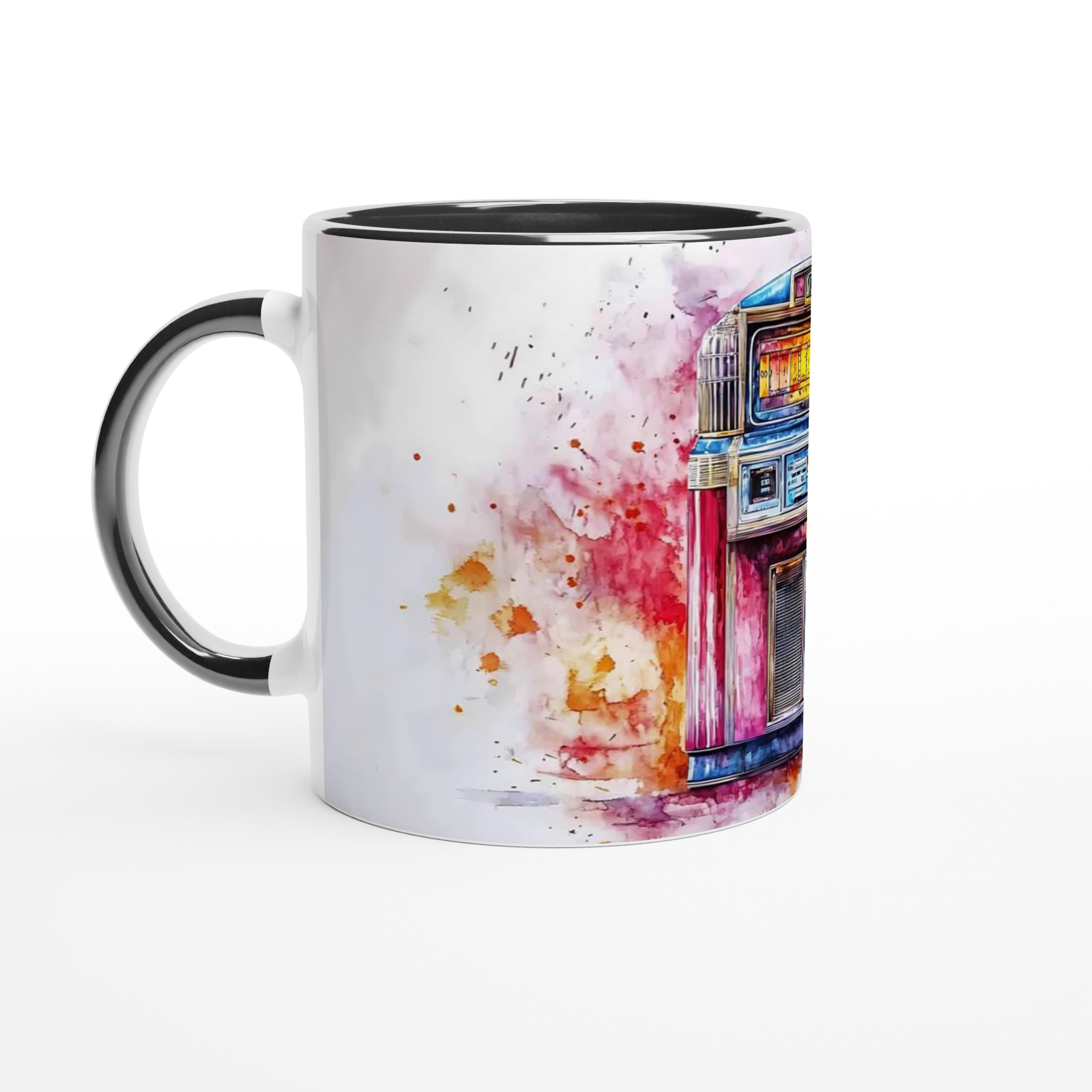 Retro Jukebox Akvarell Keramisk Mugg – 11oz Nostalgi i Färgval