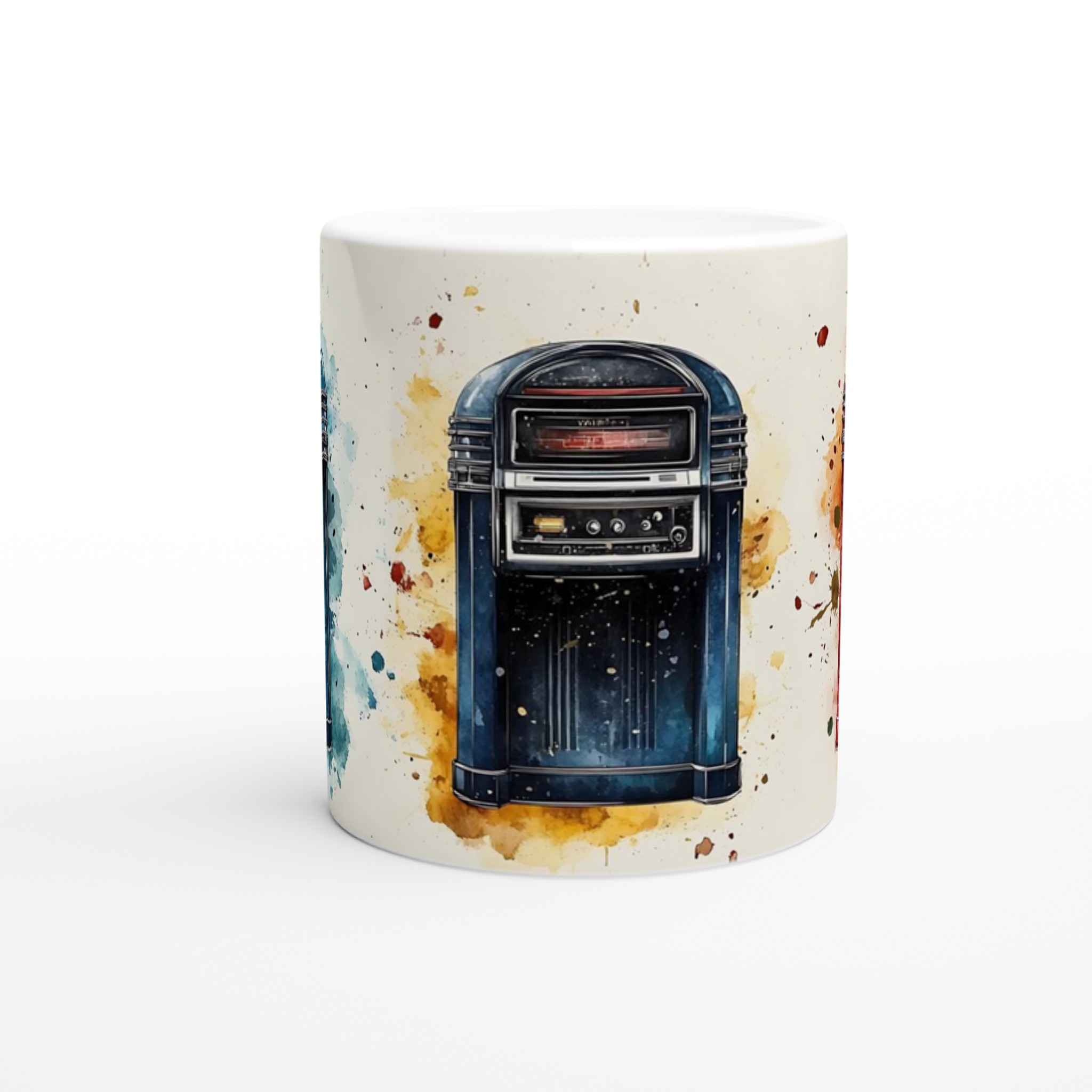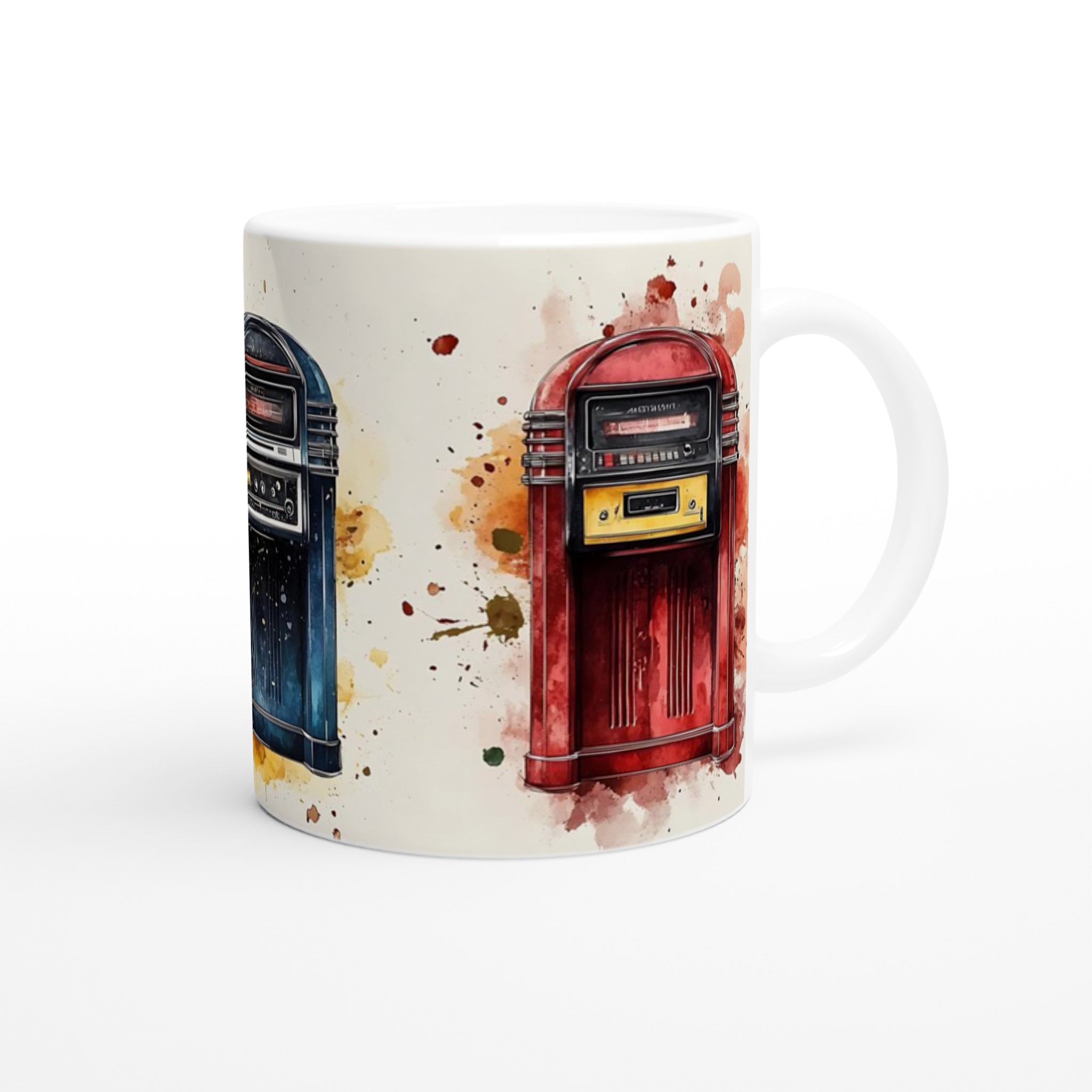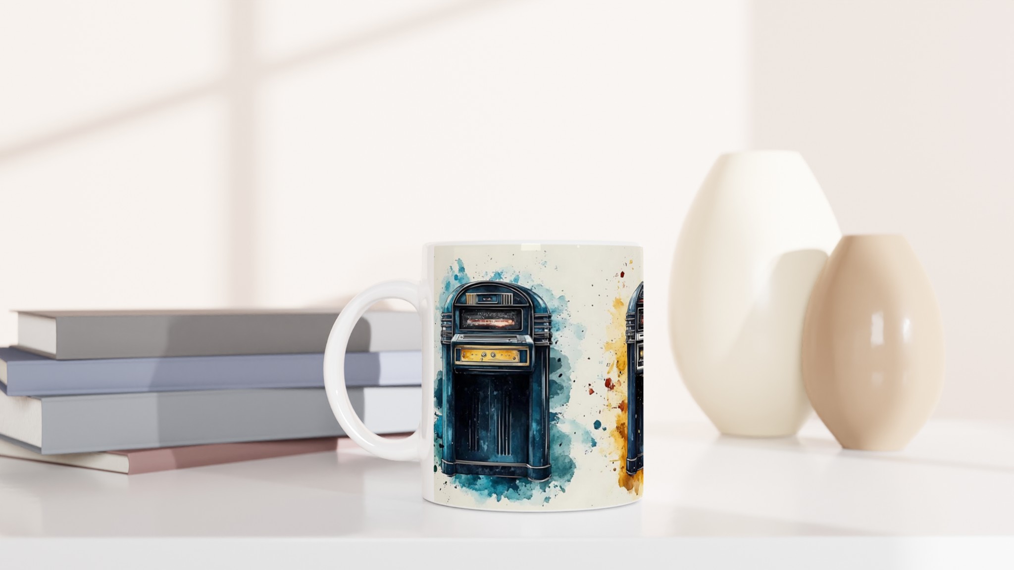 Ta en tidsresa tillbaka till musikens gyllene era med vår charmiga keramiska mugg, prydd med en lekfull akvarellillustration av en klassisk jukebox. Denna mugg blir snabbt en vardagsfavorit, perfekt för morgonkaffet, kvällens varma choklad eller när du bara vill njuta av en kopp te med en touch av retrokänsla.