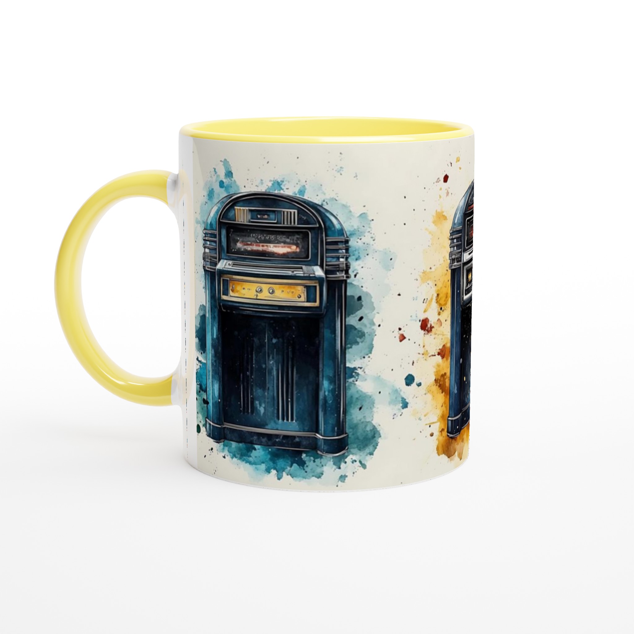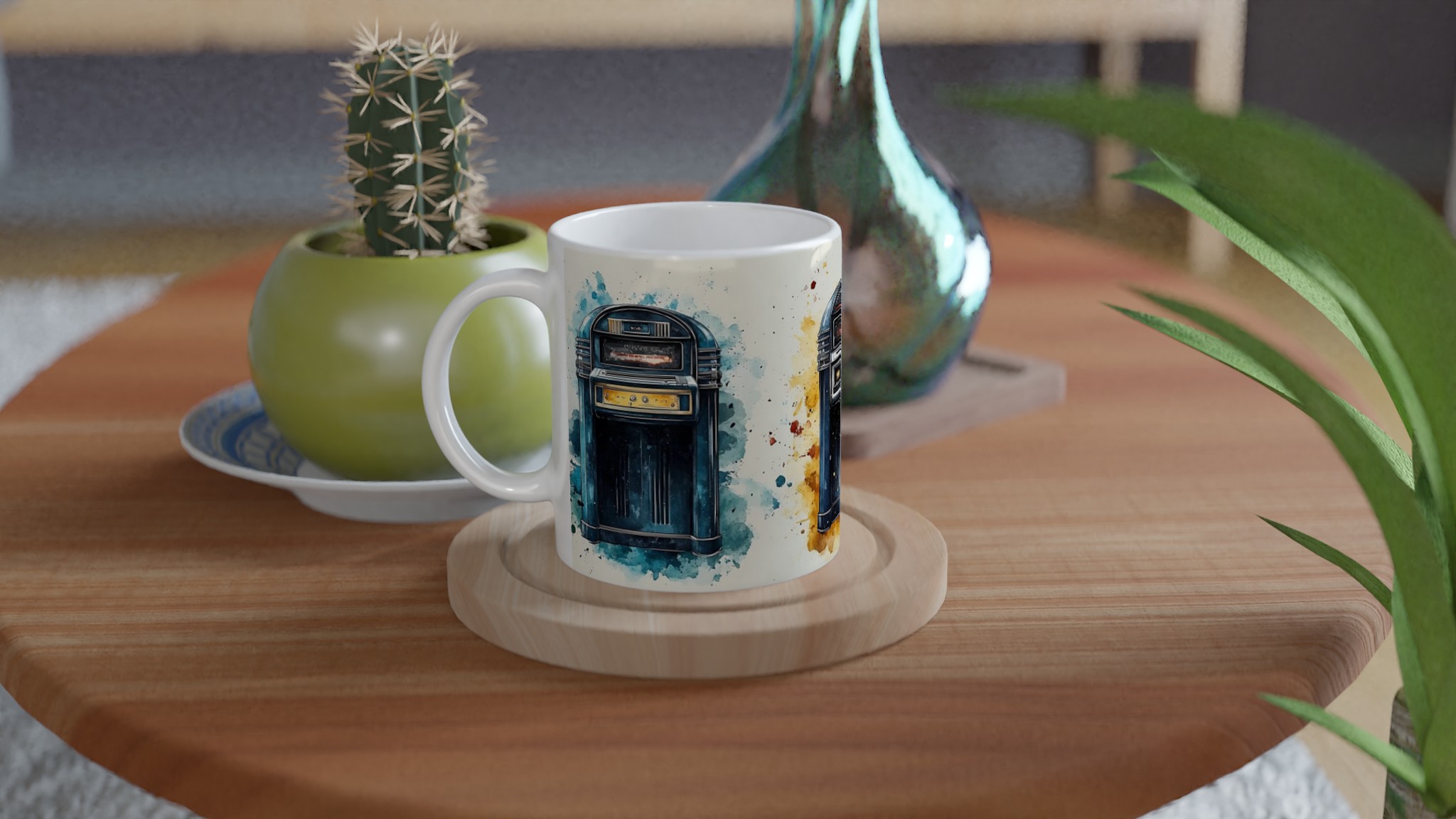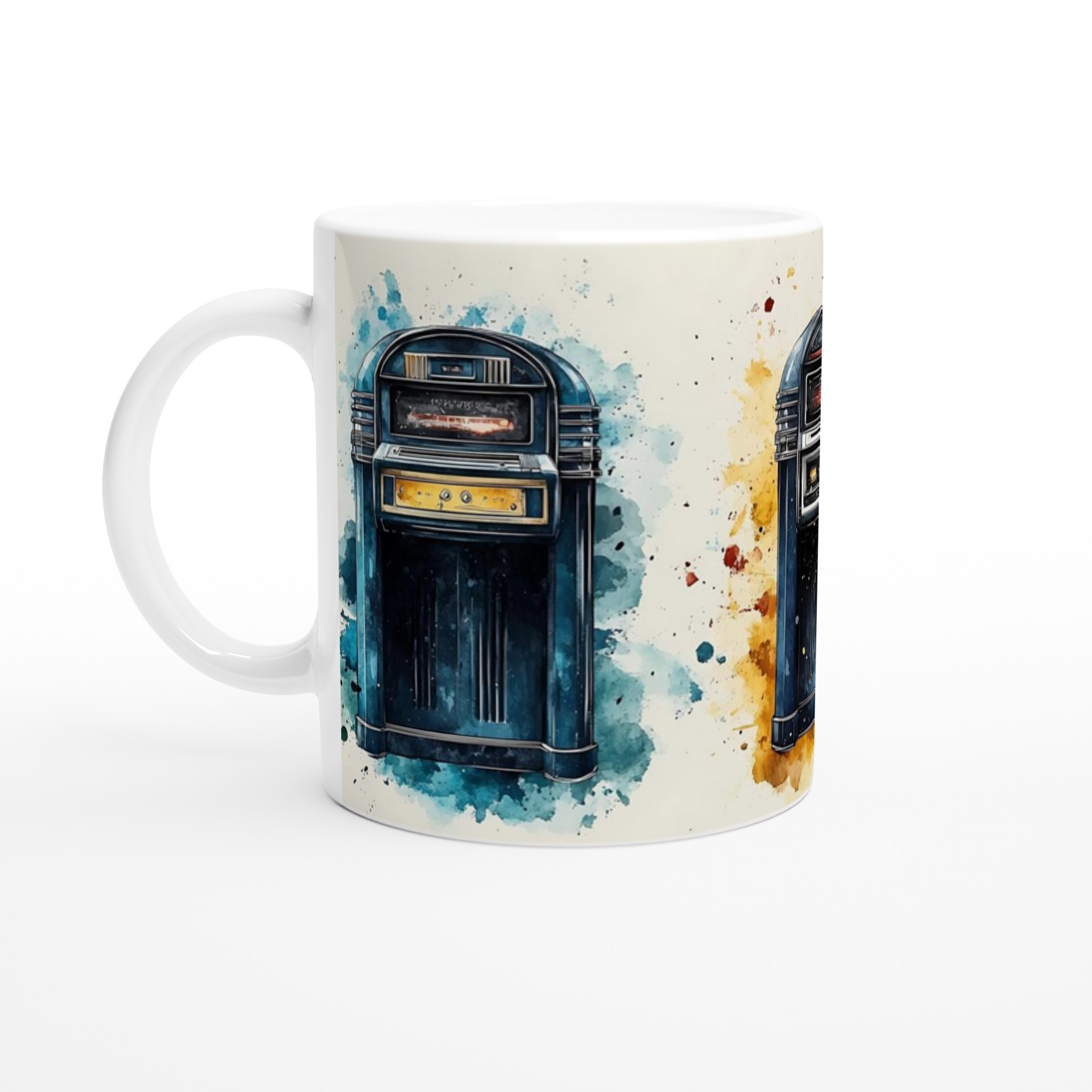 Ta en tidsresa tillbaka till musikens gyllene era med vår charmiga keramiska mugg, prydd med en lekfull akvarellillustration av en klassisk jukebox. Denna mugg blir snabbt en vardagsfavorit, perfekt för morgonkaffet, kvällens varma choklad eller när du bara vill njuta av en kopp te med en touch av retrokänsla.