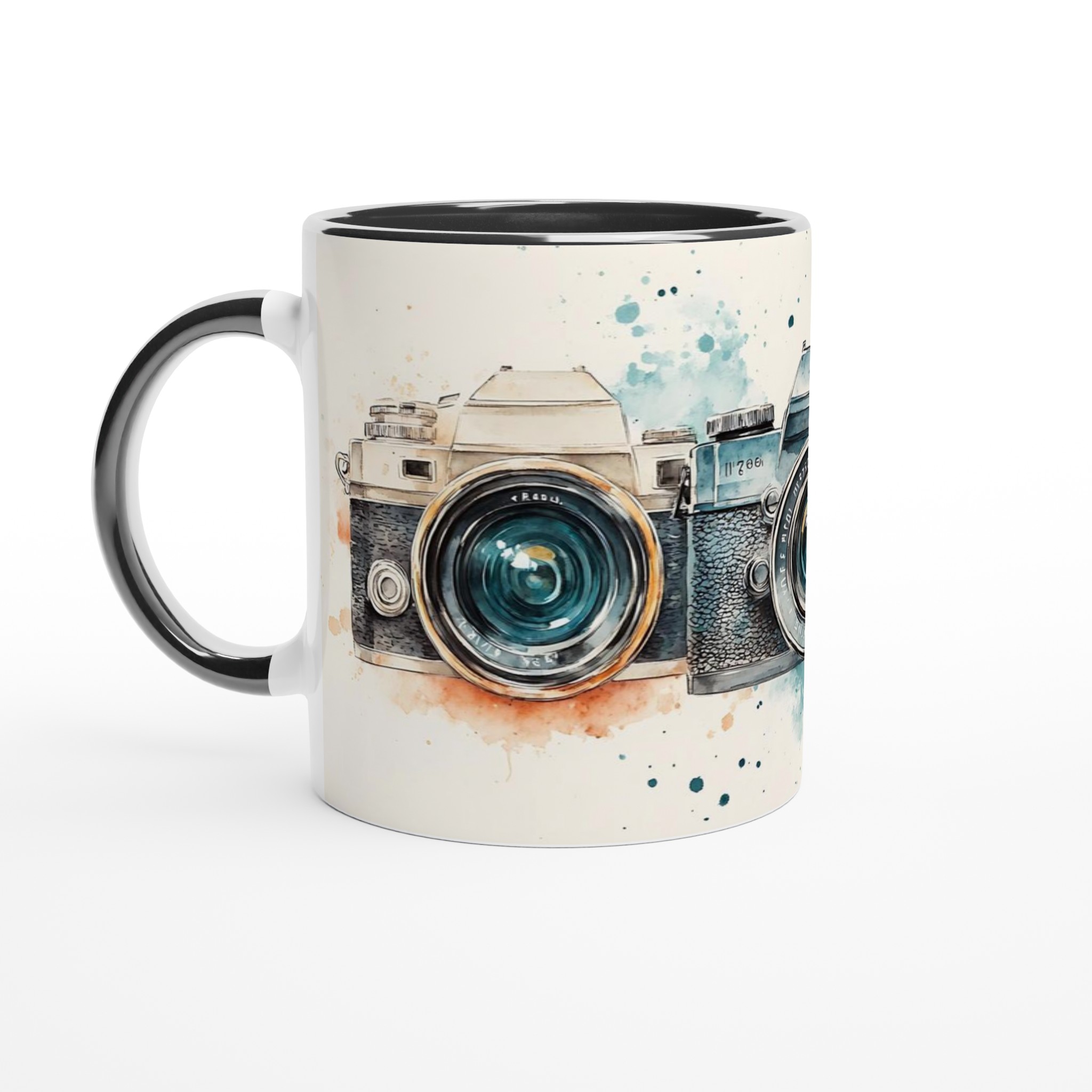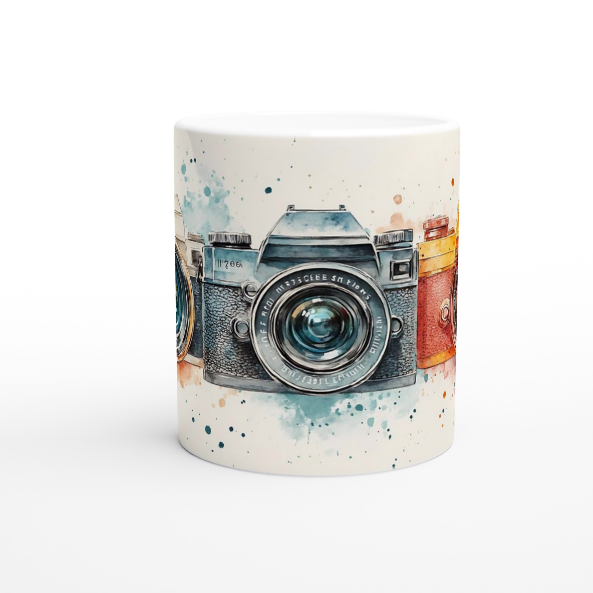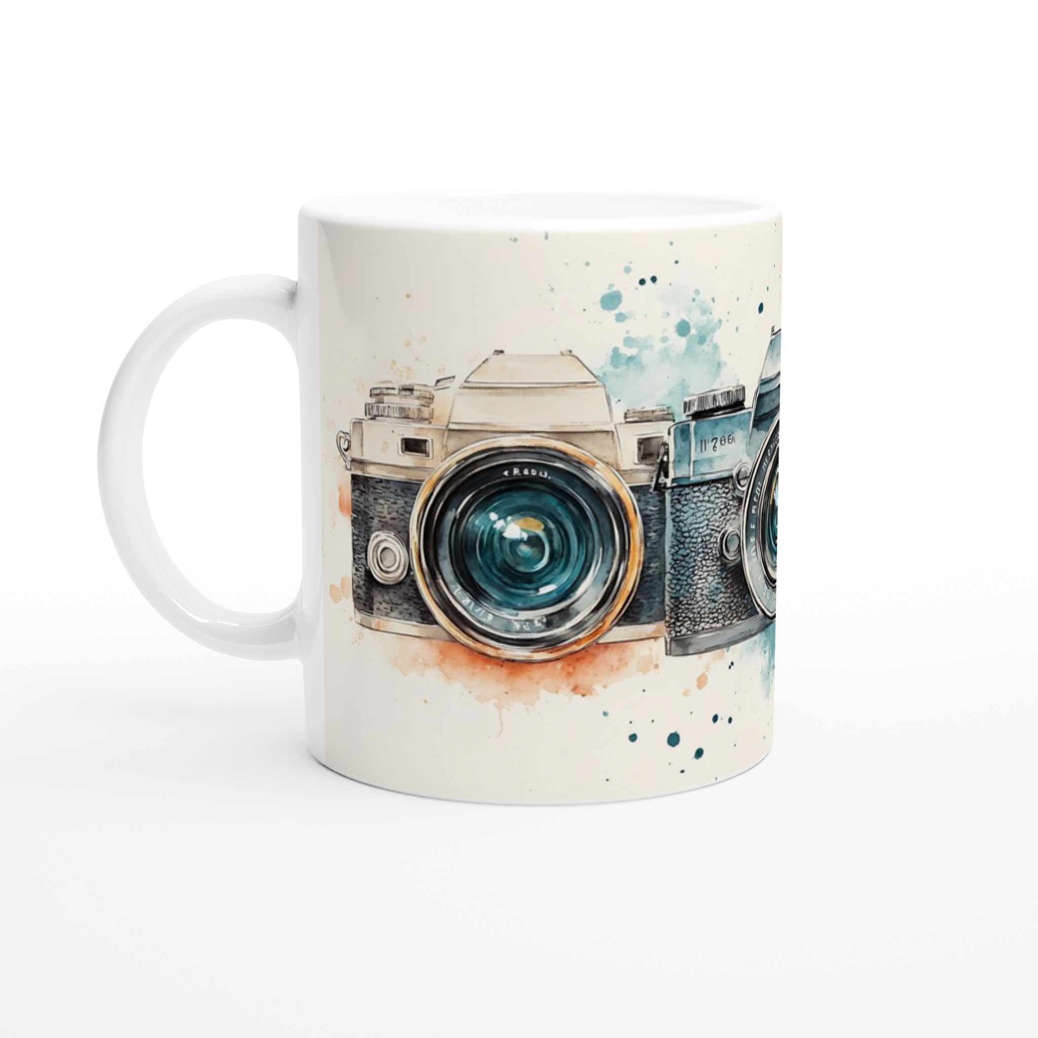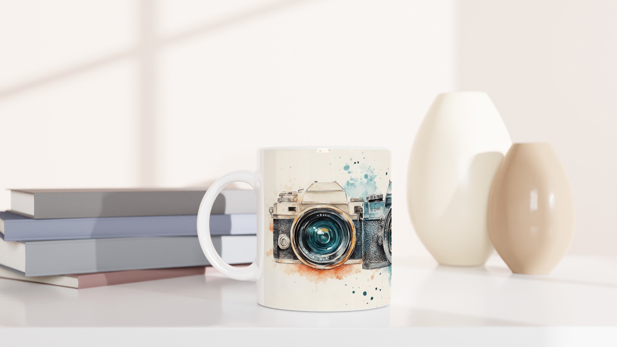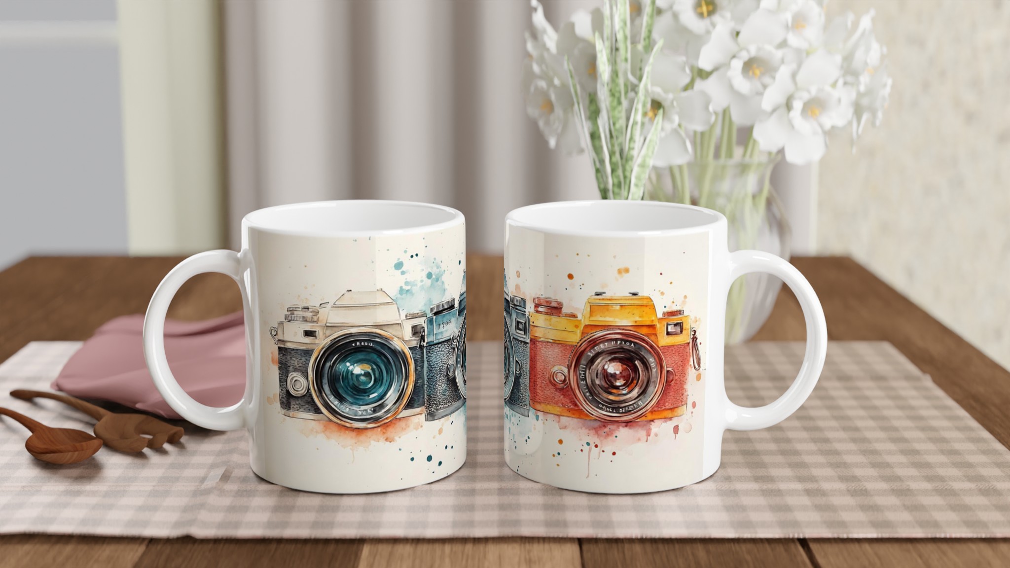 Förvandla din fikastund till ett konstverk med vår retro kameraprint keramikmugg! Denna unika mugg fångar charmen hos vintagekameror med en vacker akvarellstil, perfekt för alla fotoentusiaster eller den som uppskattar konstnärliga detaljer i vardagen. Varje klunk blir en hyllning till det förflutna, samtidigt som du njuter av en modern, högkvalitativ produkt.