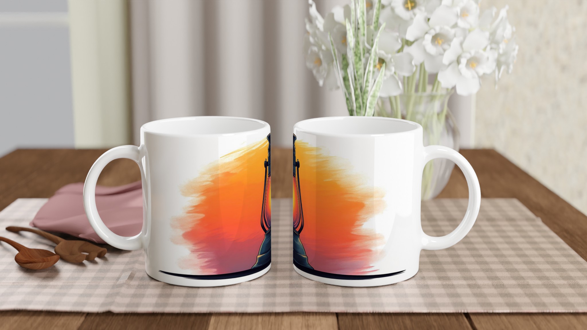 Inspirerad av den varma, inbjudande glöden från en klassisk oljelampa vid solnedgången, erbjuder denna mugg en touch av tidlös charm till din dryckesrutin. Den blanka vita ytan ger ett skarpt och levande tryck som verkligen sticker ut, oavsett om det är en personlig design, ett roligt citat eller en present till någon du tycker om.