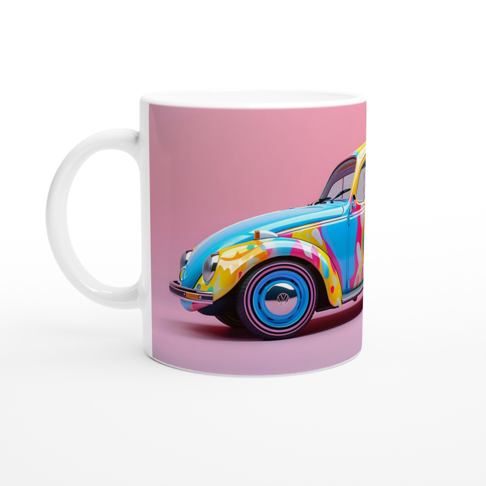 Denna lekfulla mugg, inspirerad av den ikoniska popkonstbubblan och dess livfulla färgsättning, förvandlar varje sipp till en fest. Den blanka vita ytan ger ett skarpt och levande tryck som verkligen sticker ut, oavsett om det är en personlig design, ett roligt citat eller en present till någon du tycker om.
