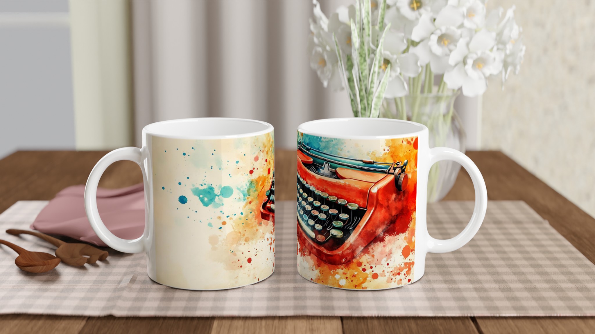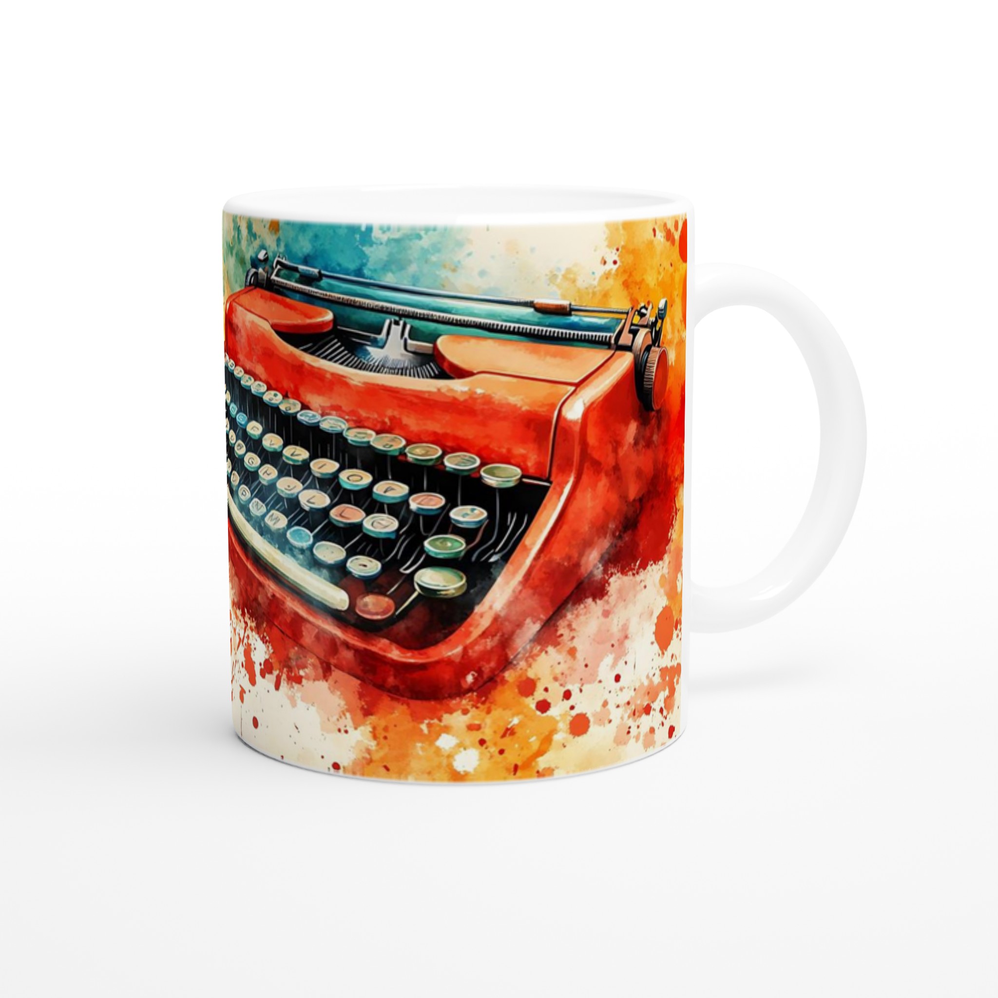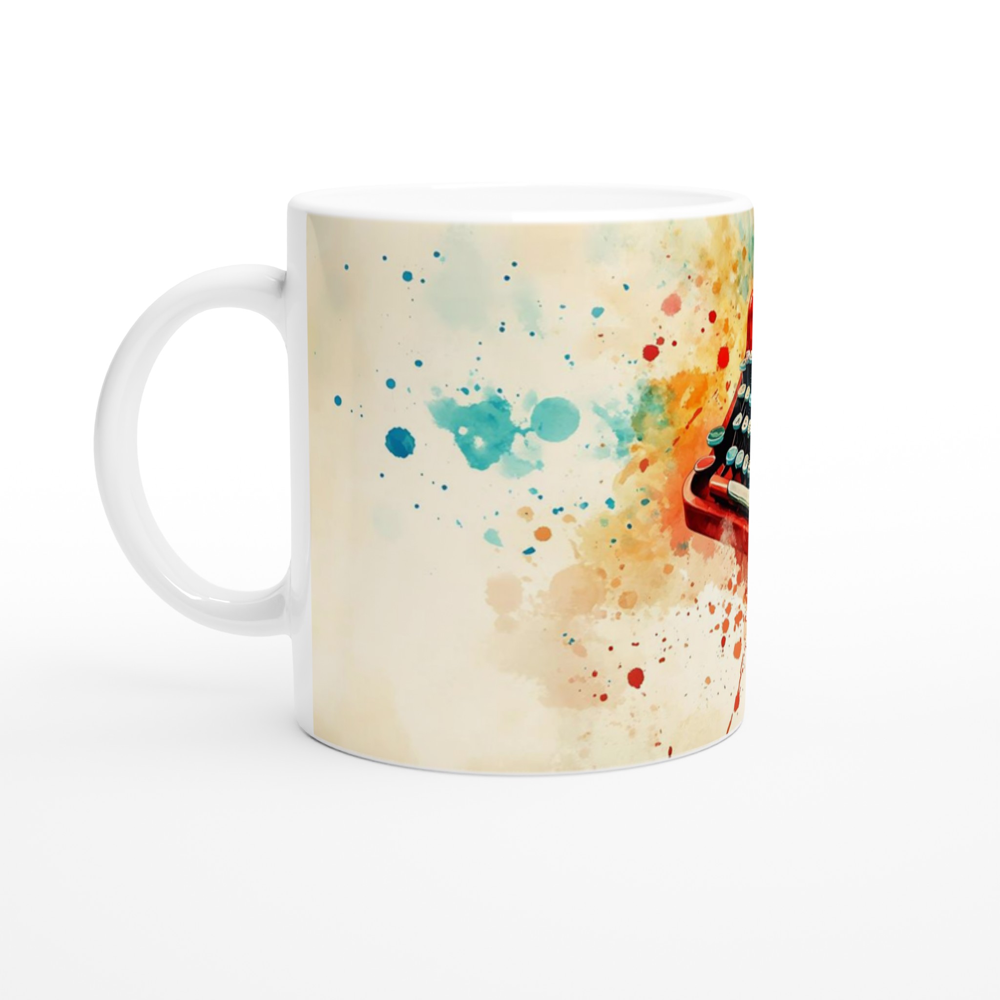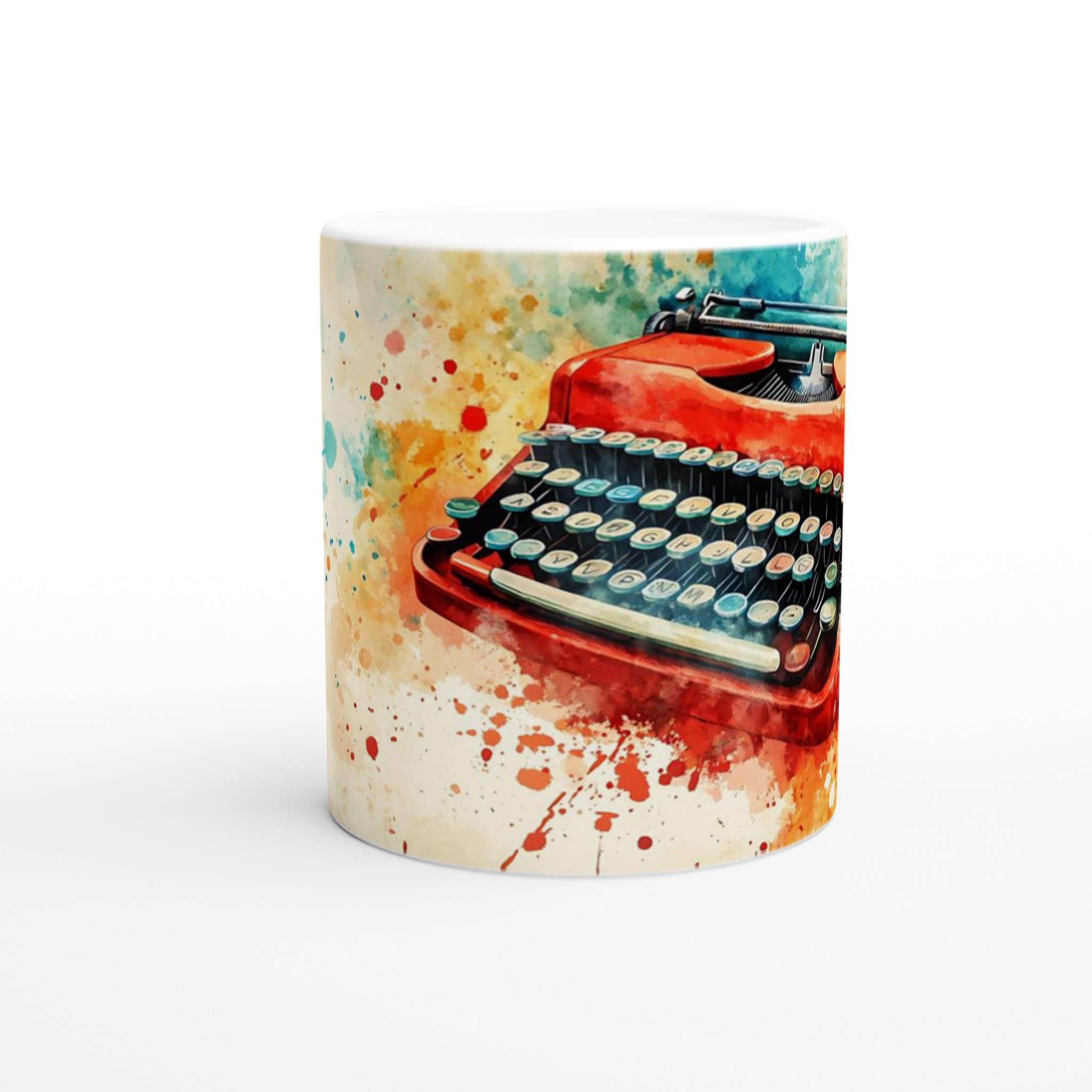Inspirerad av den livfulla kreativiteten hos en vintage skrivmaskin målad i en expressiv akvarellstil, fångar denna mugg essensen av konstnärlig passion. Den blanka vita ytan ger ett skarpt och levande tryck som verkligen sticker ut, oavsett om det är en personlig design, ett roligt citat eller en present till någon du tycker om.