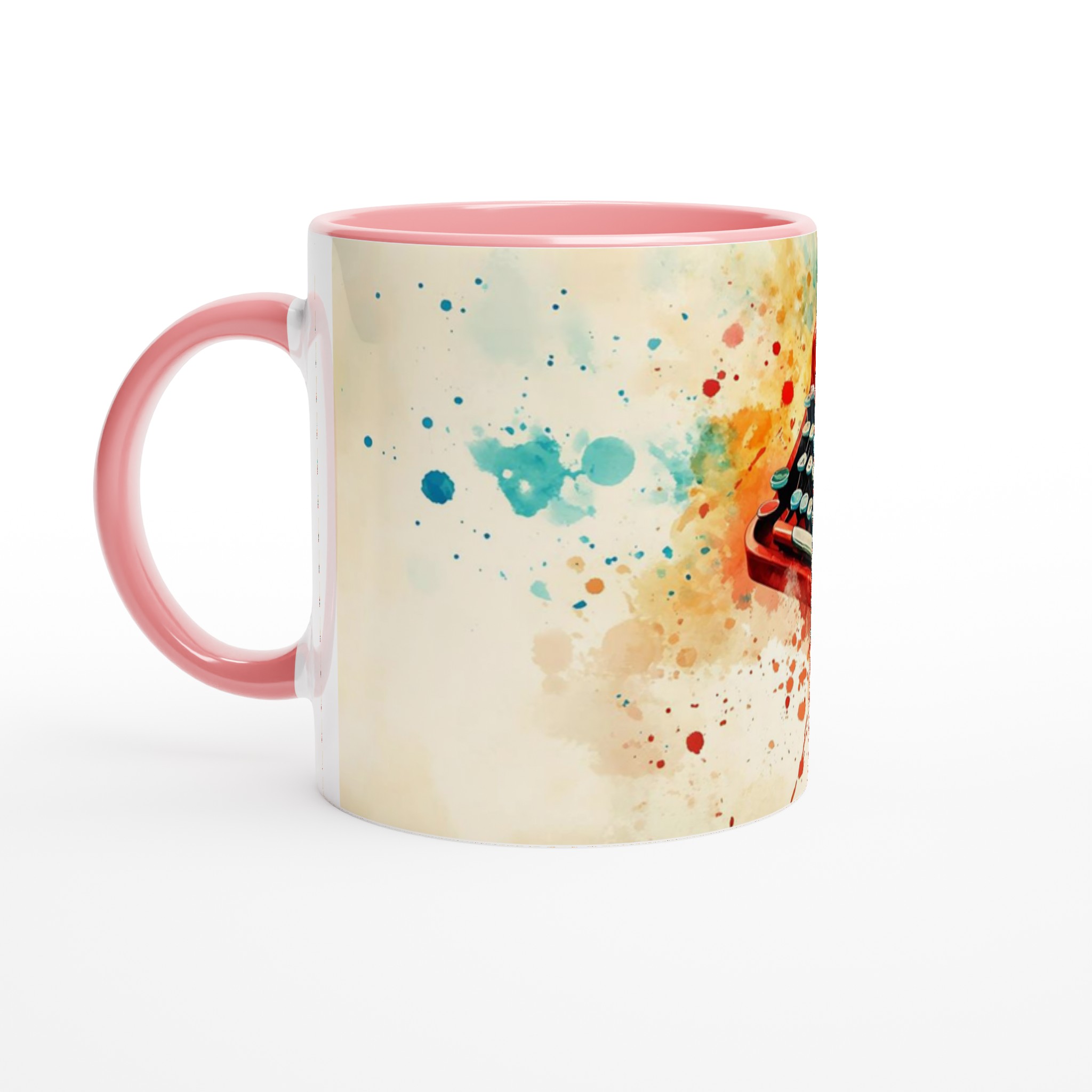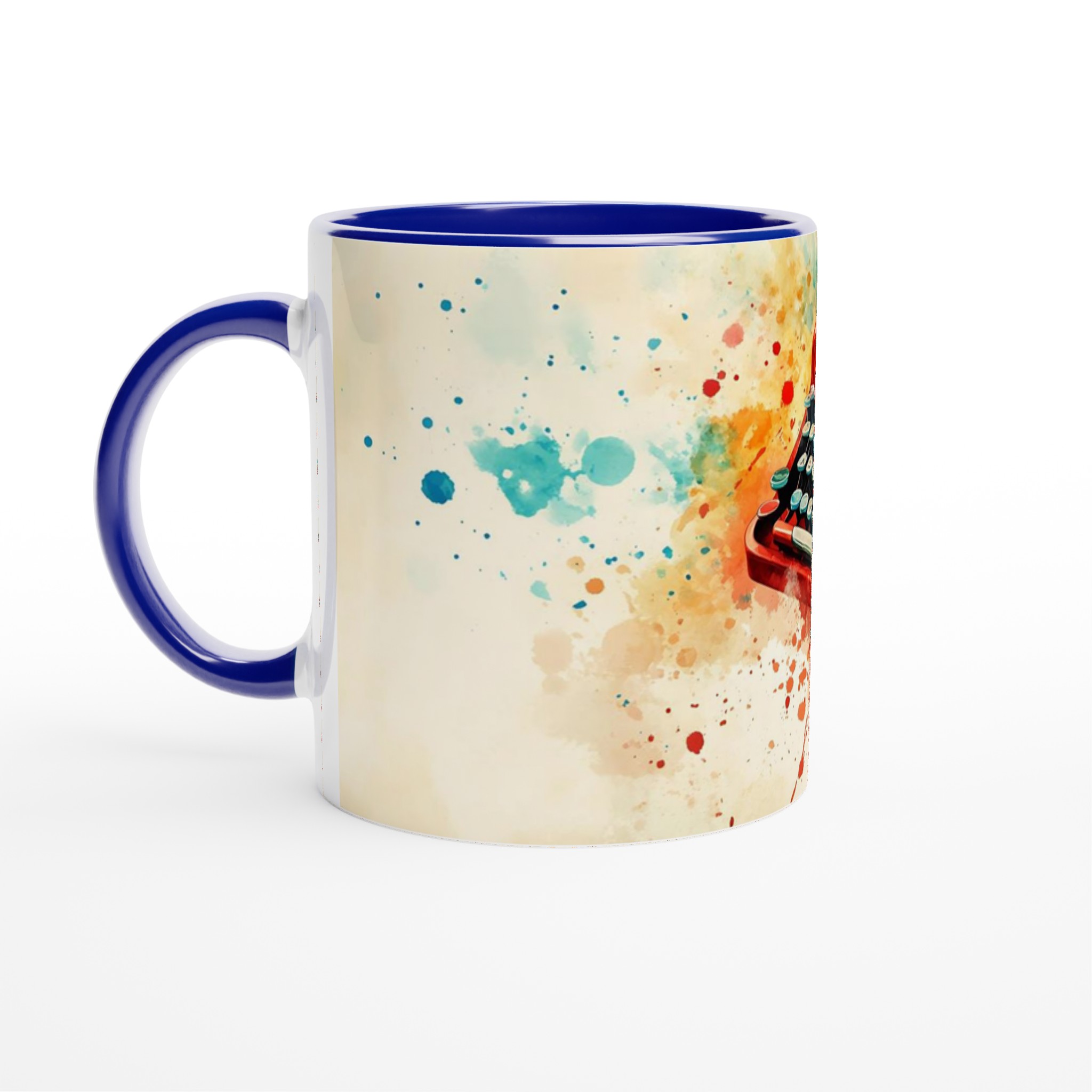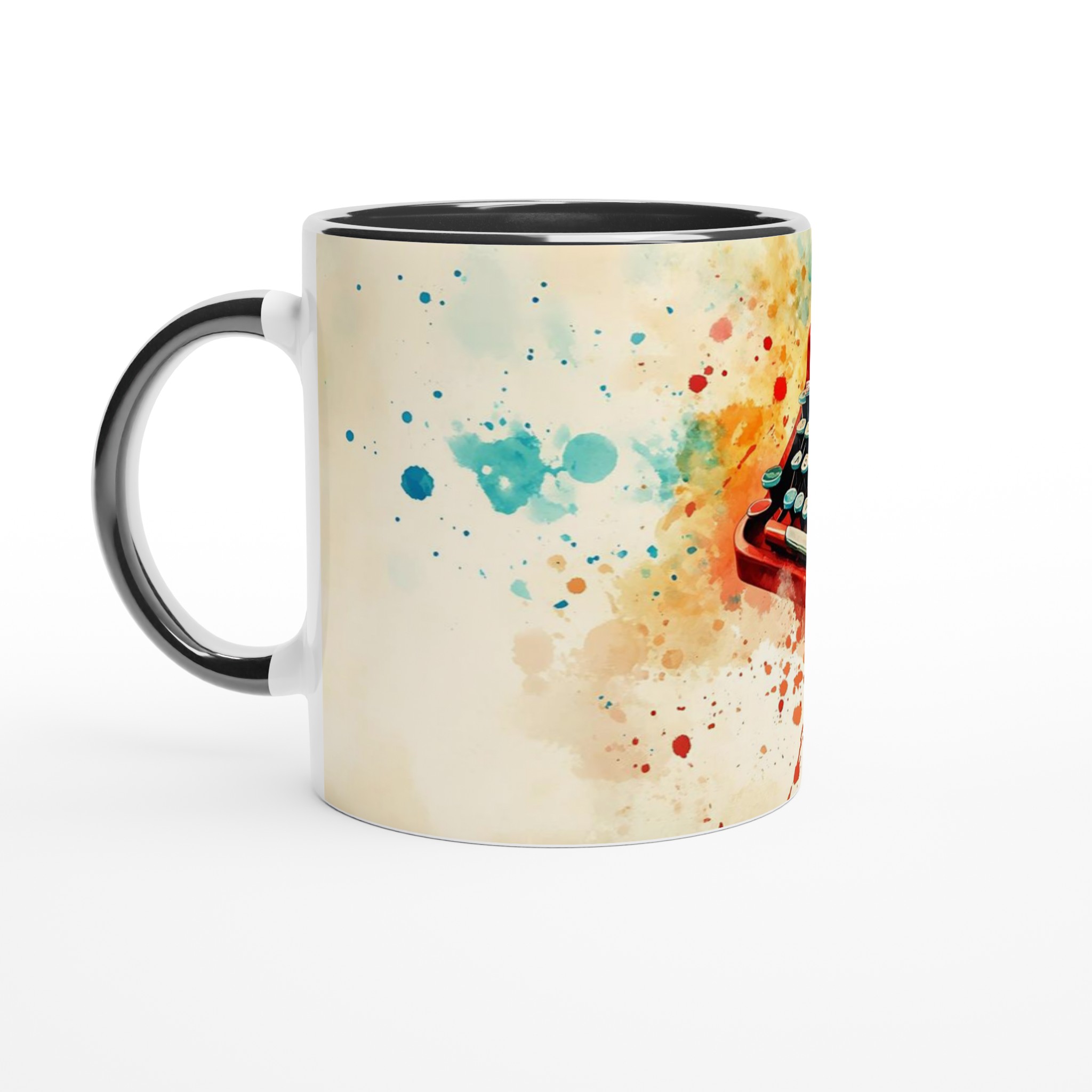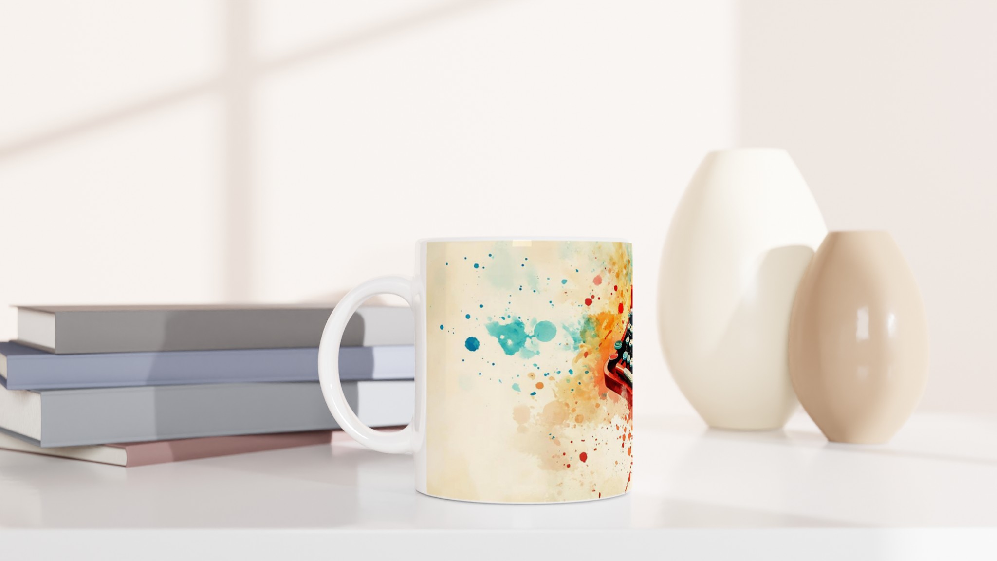 Inspirerad av den livfulla kreativiteten hos en vintage skrivmaskin målad i en expressiv akvarellstil, fångar denna mugg essensen av konstnärlig passion. Den blanka vita ytan ger ett skarpt och levande tryck som verkligen sticker ut, oavsett om det är en personlig design, ett roligt citat eller en present till någon du tycker om.