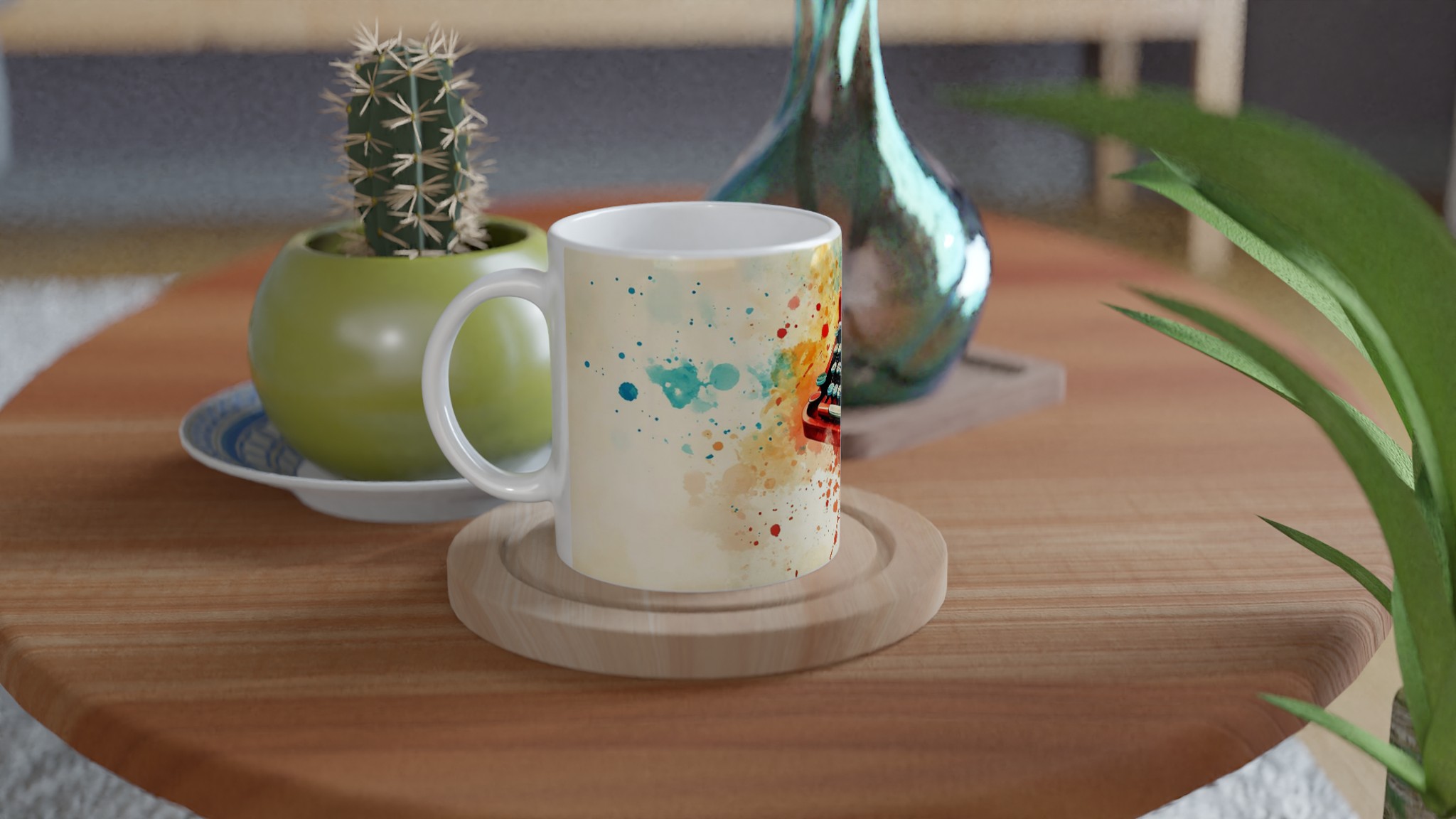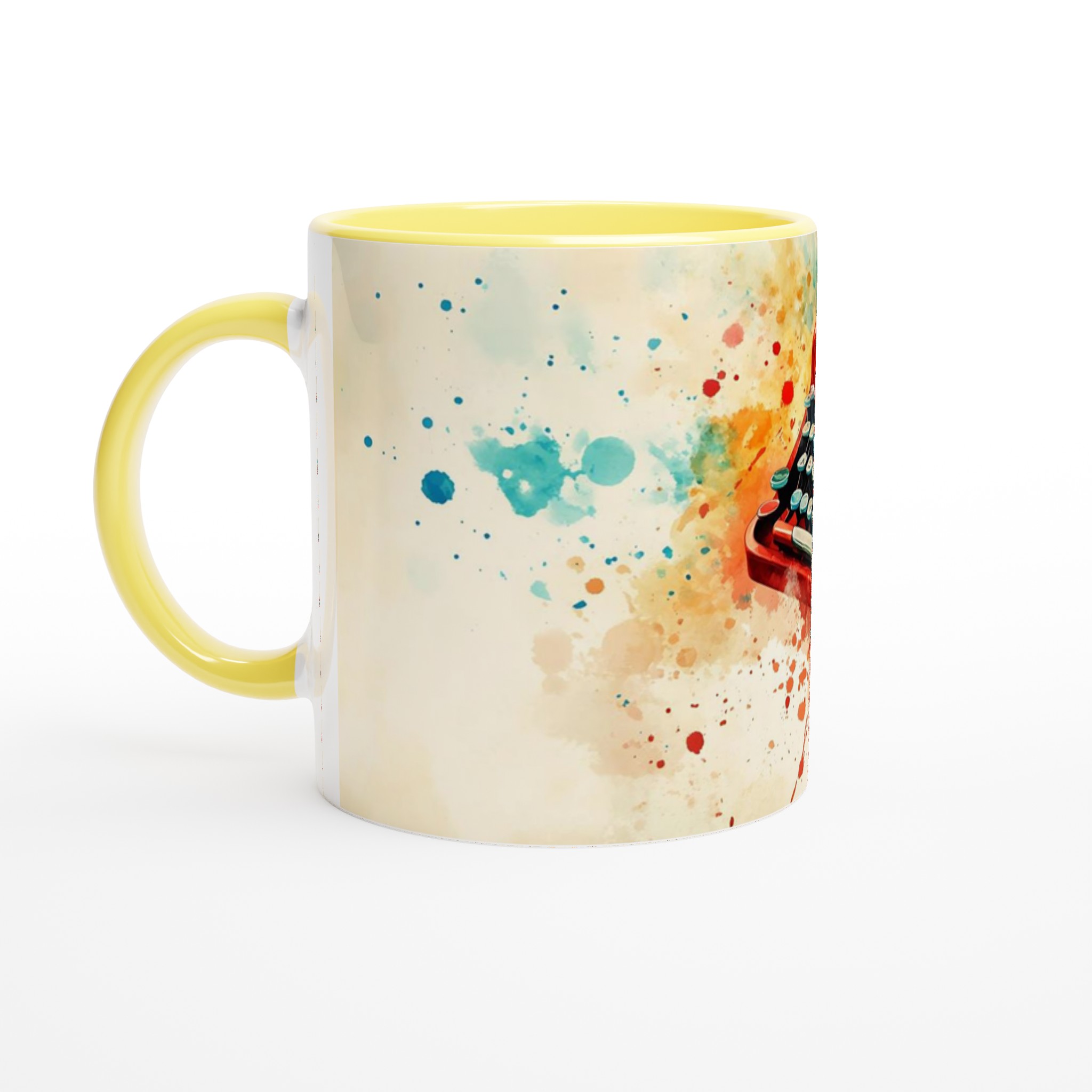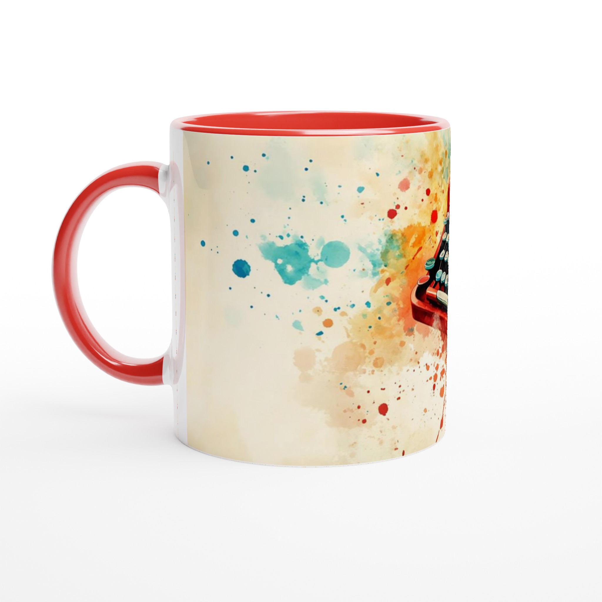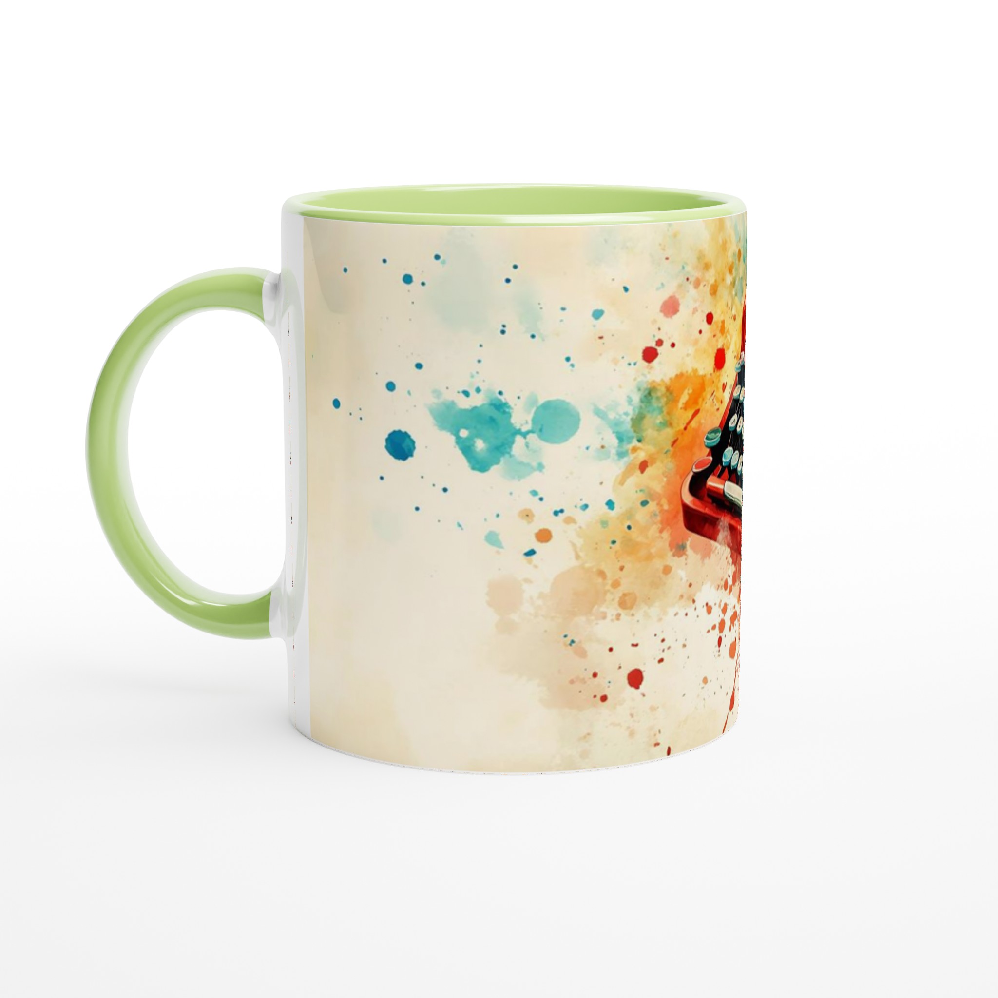Inspirerad av den livfulla kreativiteten hos en vintage skrivmaskin målad i en expressiv akvarellstil, fångar denna mugg essensen av konstnärlig passion. Den blanka vita ytan ger ett skarpt och levande tryck som verkligen sticker ut, oavsett om det är en personlig design, ett roligt citat eller en present till någon du tycker om.